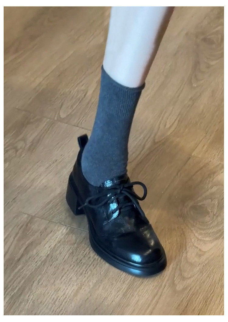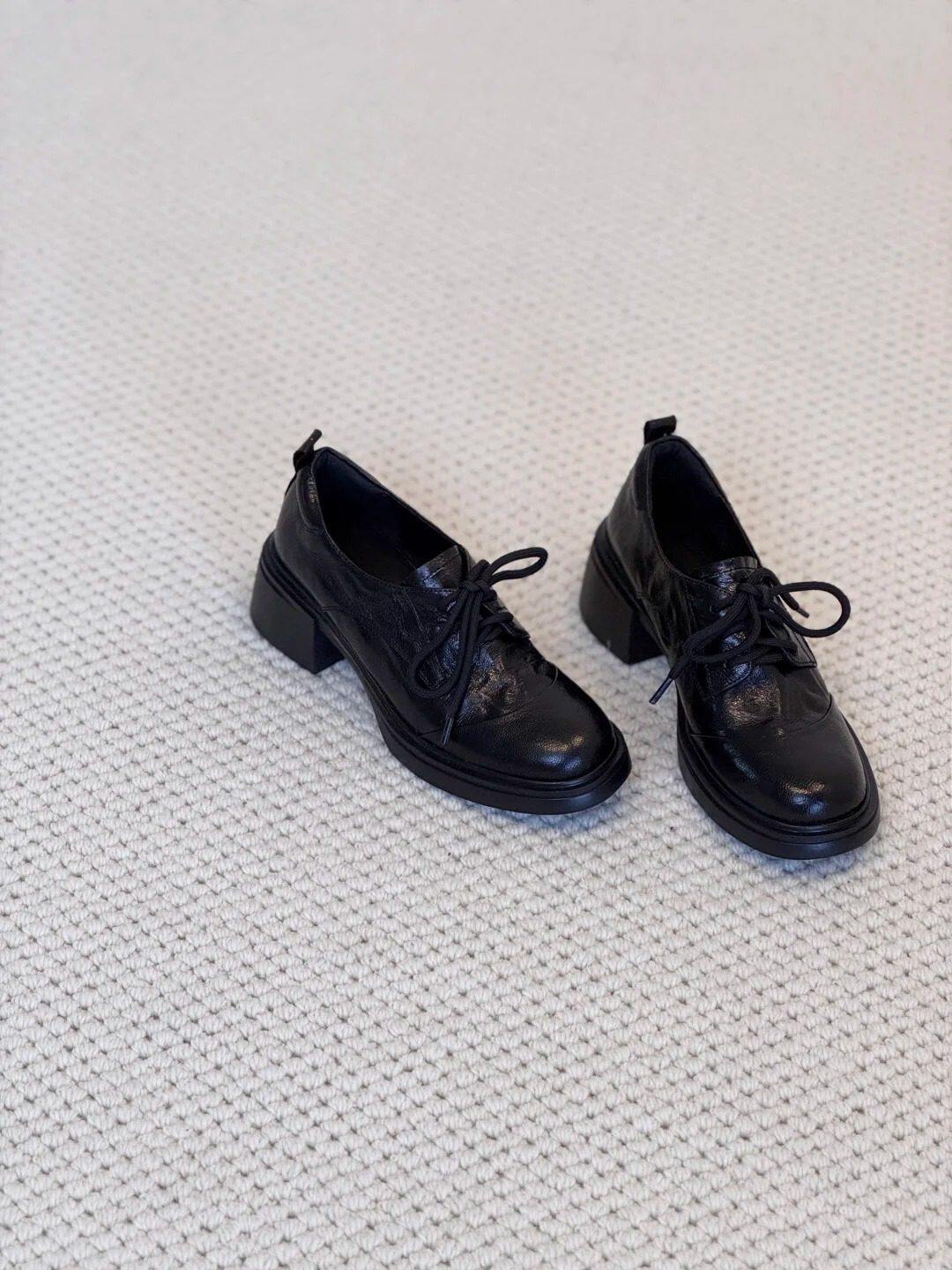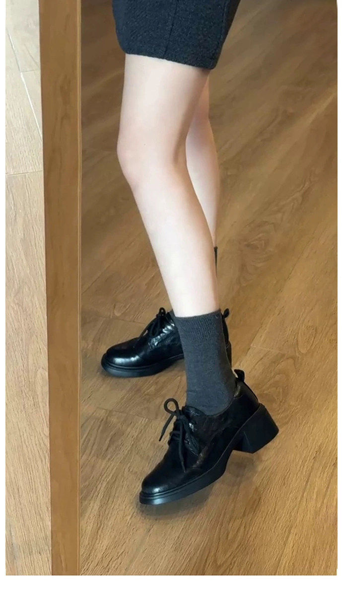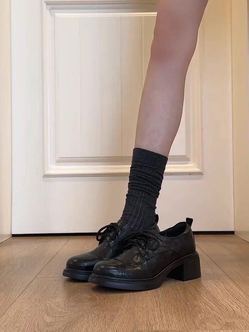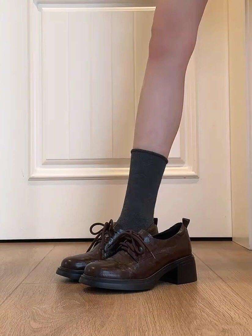 【シューズ】太ヒール 厚底 ヴィンテージ ローファー シューズ 春新作 ファッション ラウンドトゥ レースアップ イギリス風 パンプス