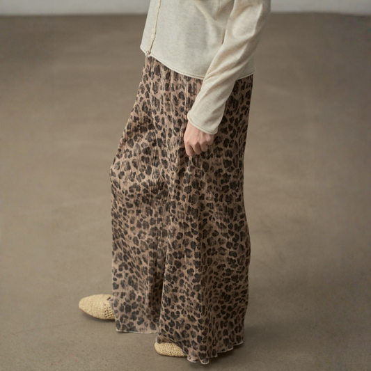 【ボトムス】落ち感 クリンクル加工 レオパード柄 美脚効果 パンツ 【SHシリーズ】
