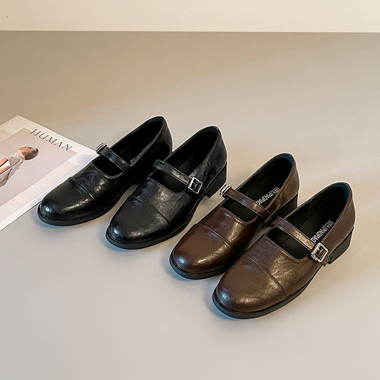 【シューズ】フトレザー ヴィンテージ ローファー 新作 パンプス マリージェーン フレンチスタイル シューズ