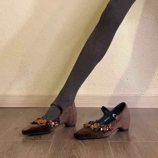 【シューズ】スパンコール フラワー ストラップ メリージェン シューズ パンプス【JZシリーズ】
