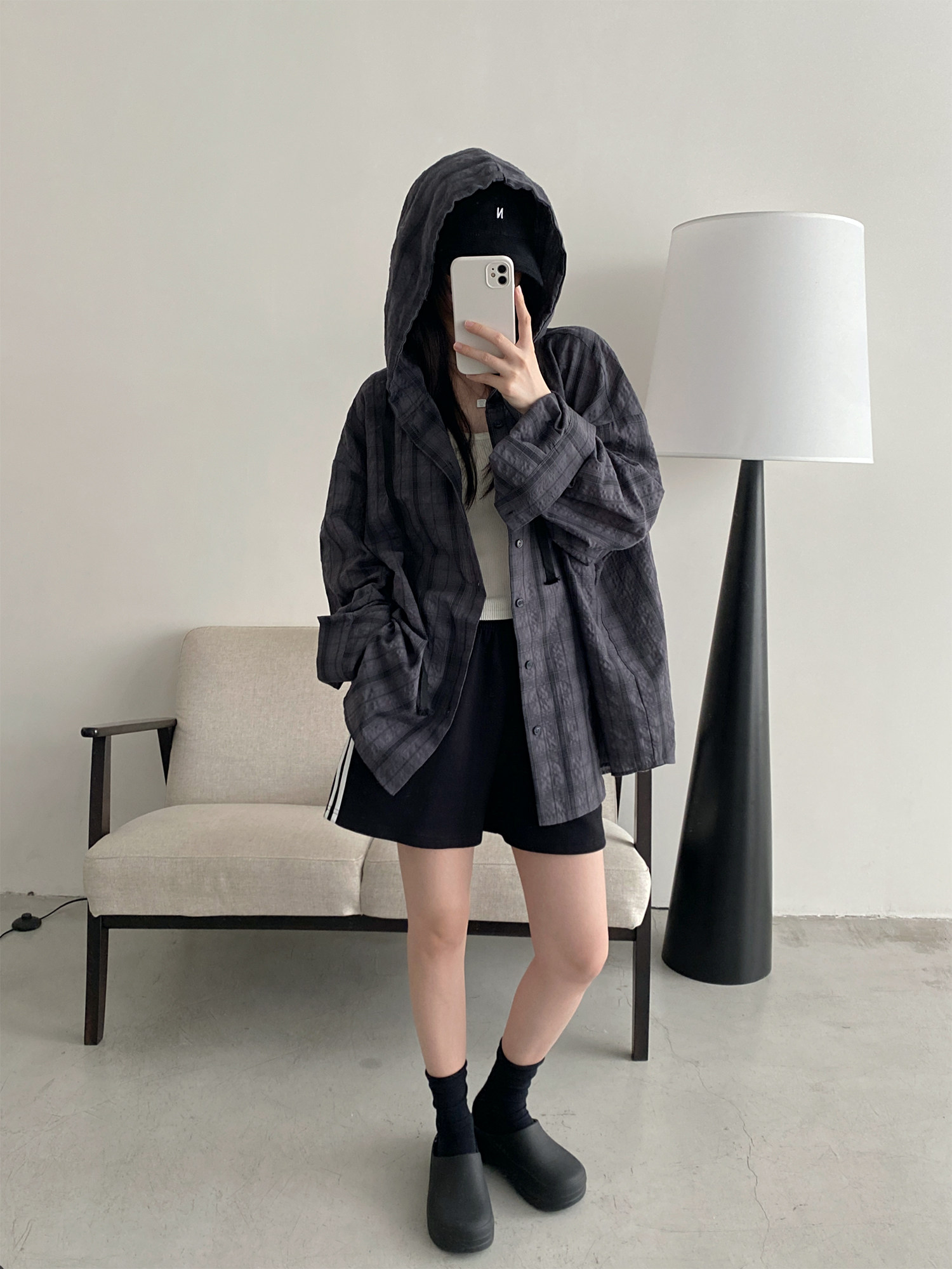 【アウター】春夏新作 ルーズシルエット シャツ トレンド感 万能 フード付き UV対策 シャツカーディガン カジュアル【FCシリーズ】