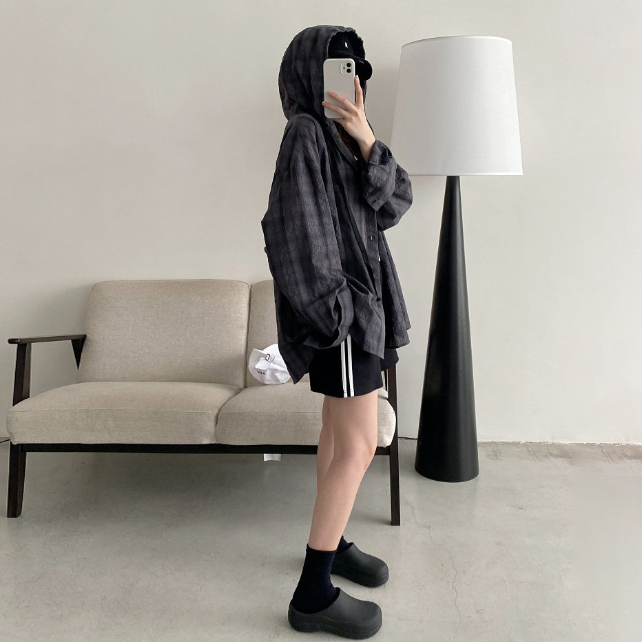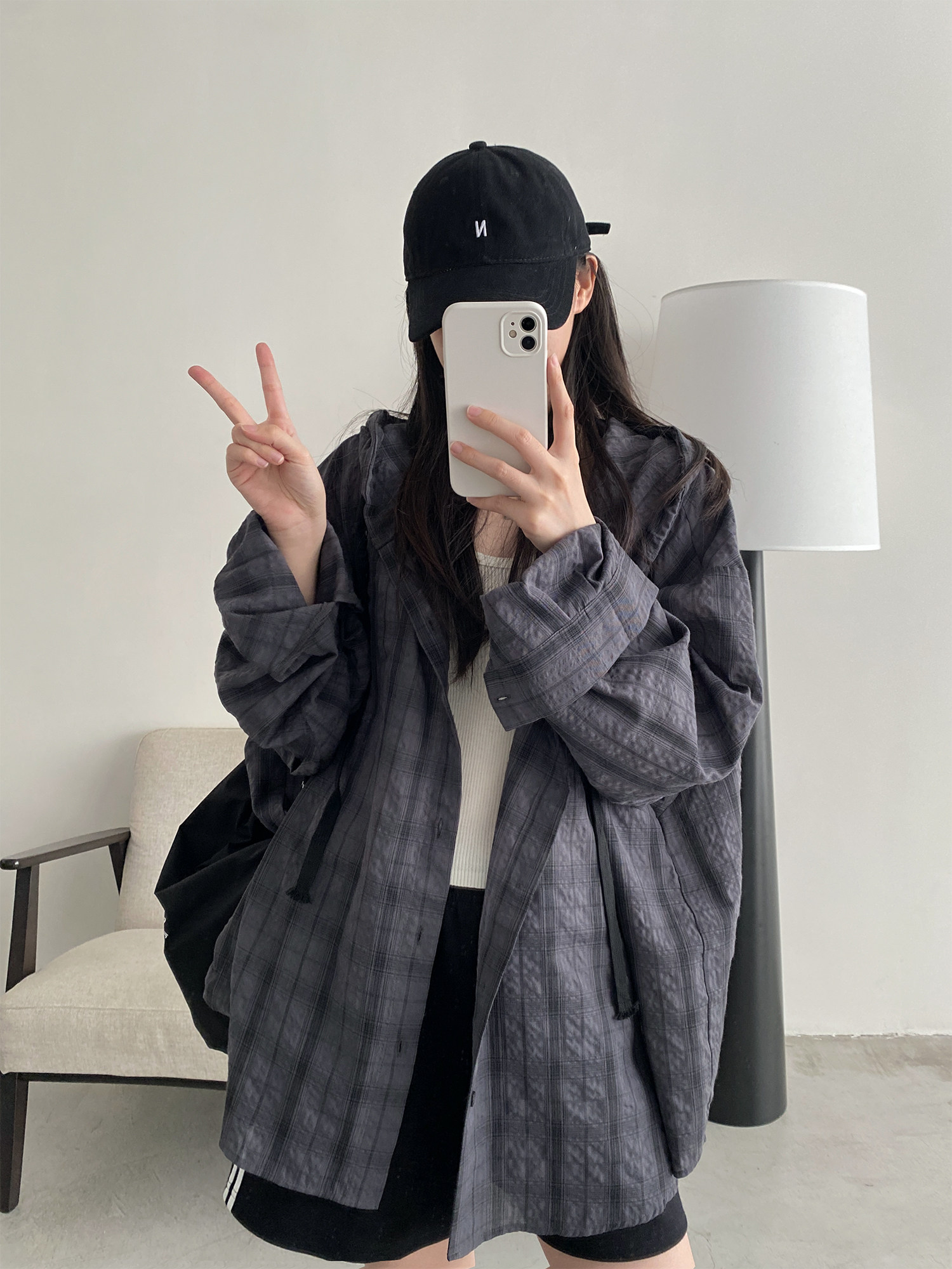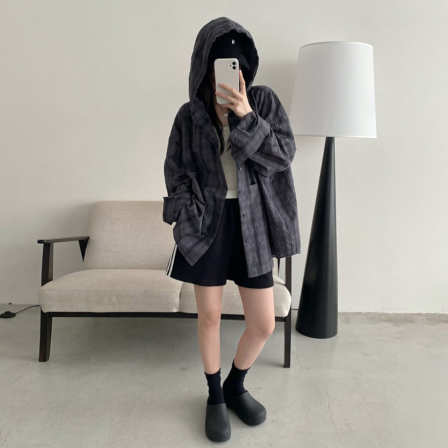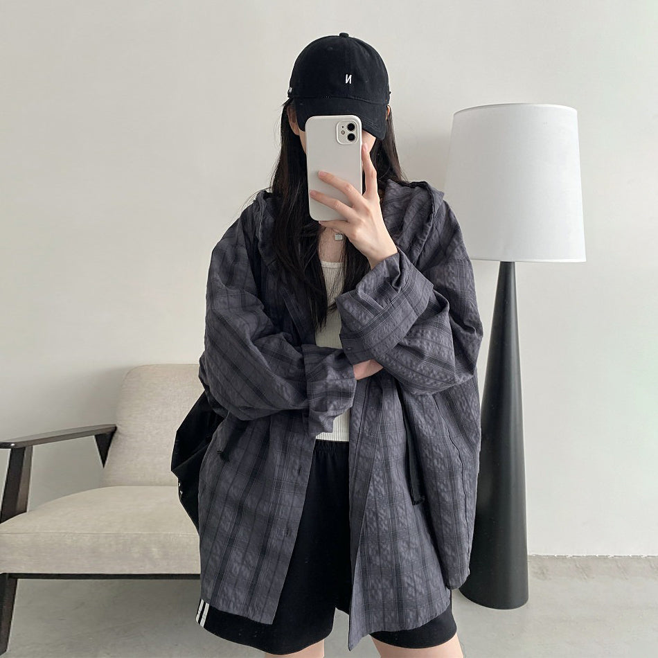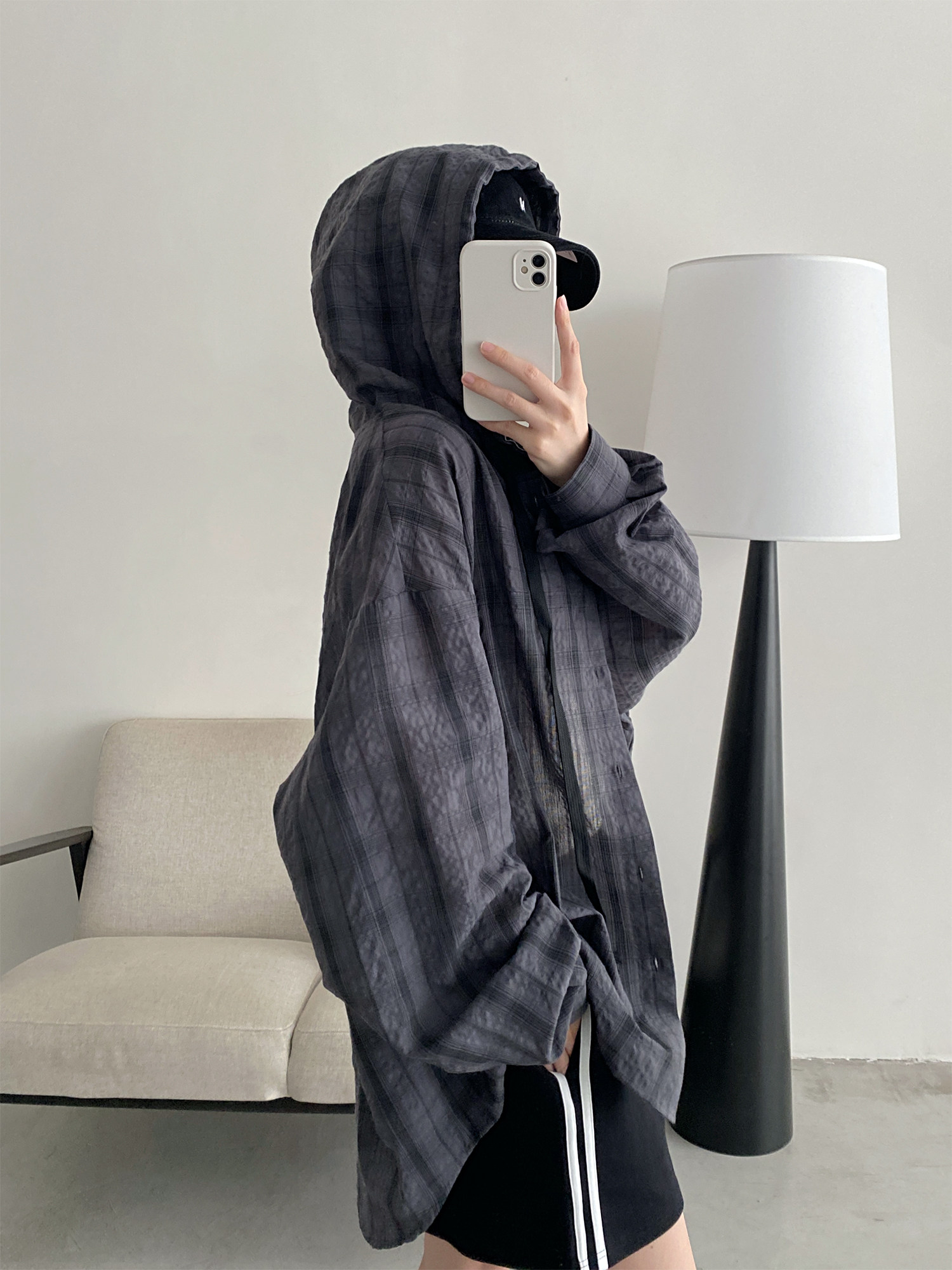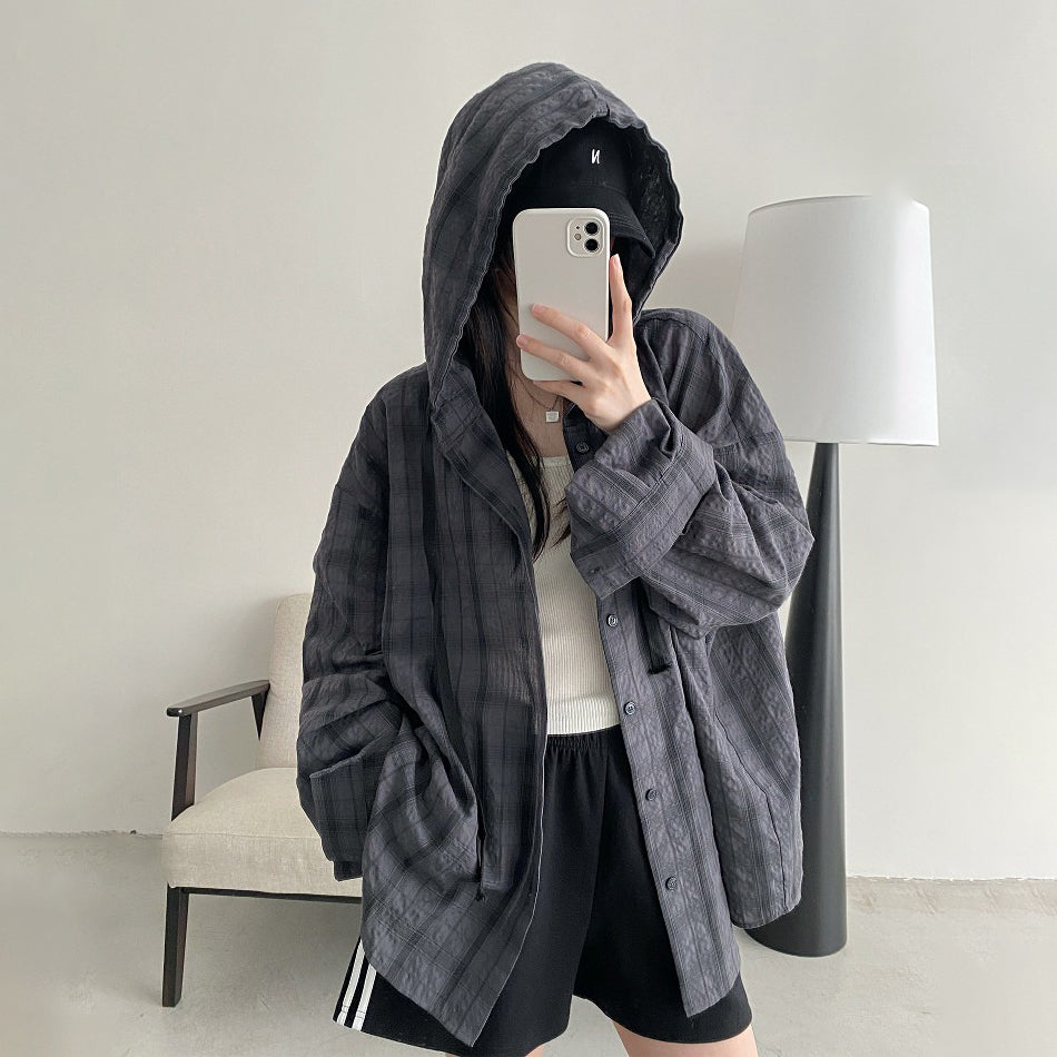 【商品名】【アウター】春夏新作 ルーズシルエット シャツ トレンド感 万能 フード付き UV対策 シャツカーディガン カジュアル【FCシリーズ】