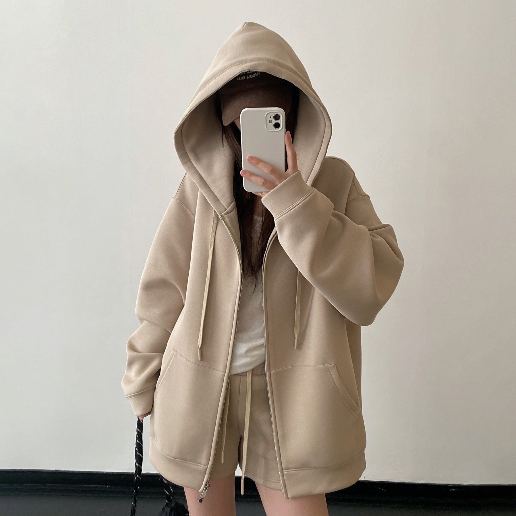 【商品名】【セットアップ】【単品注文】オーバーシルエット フード付きパーカー+ショートパンツ スポーツ ジップアップ 上下セット ユニセックス【FCシリーズ】
