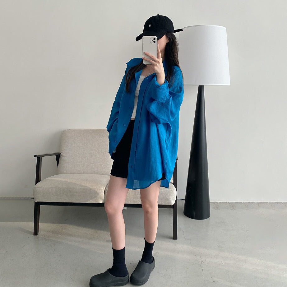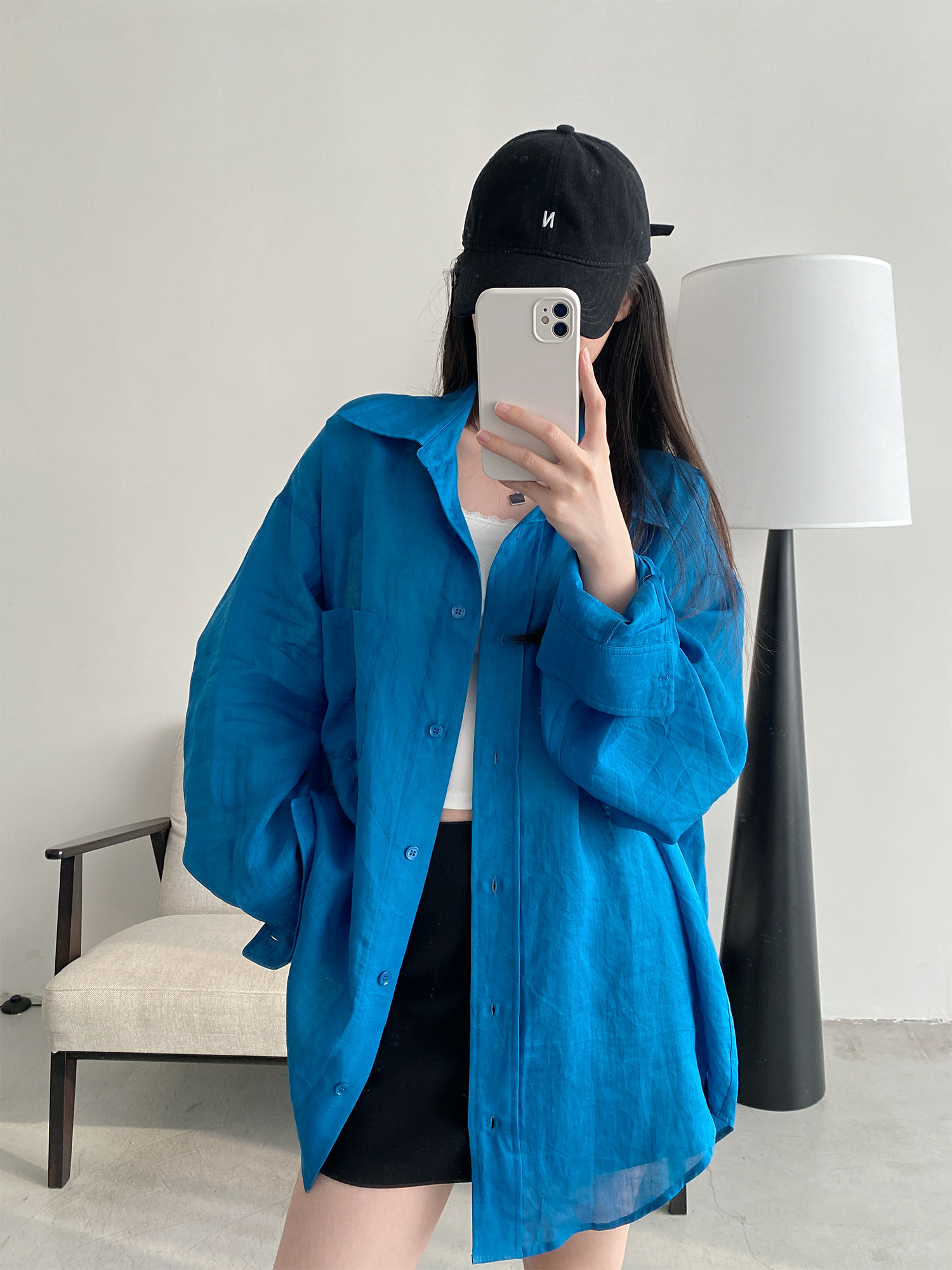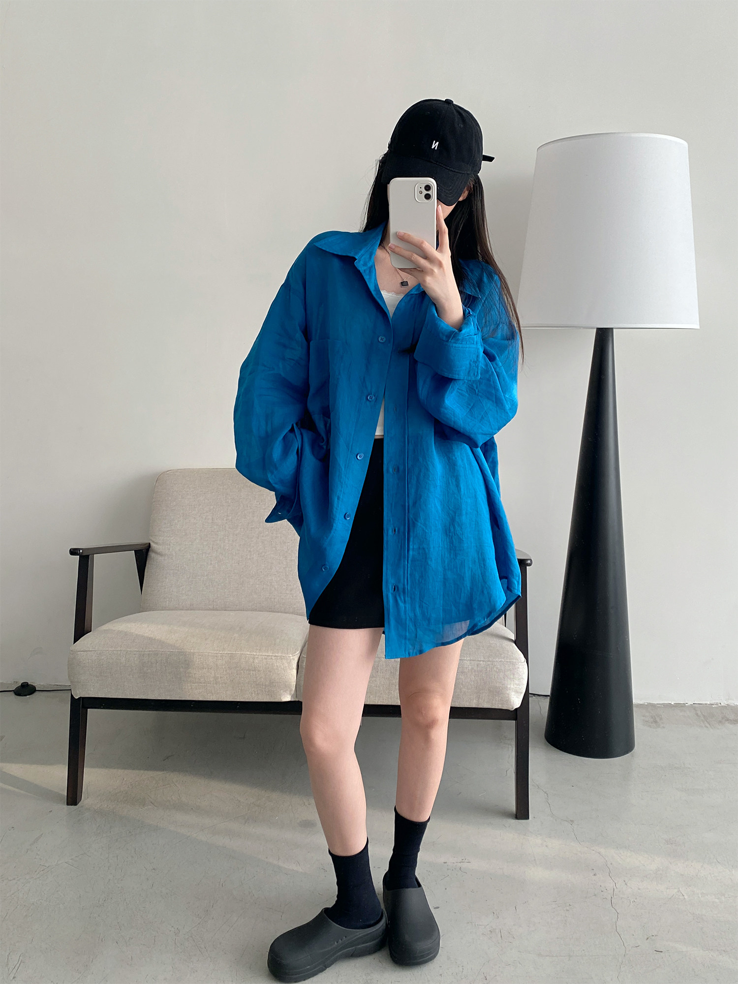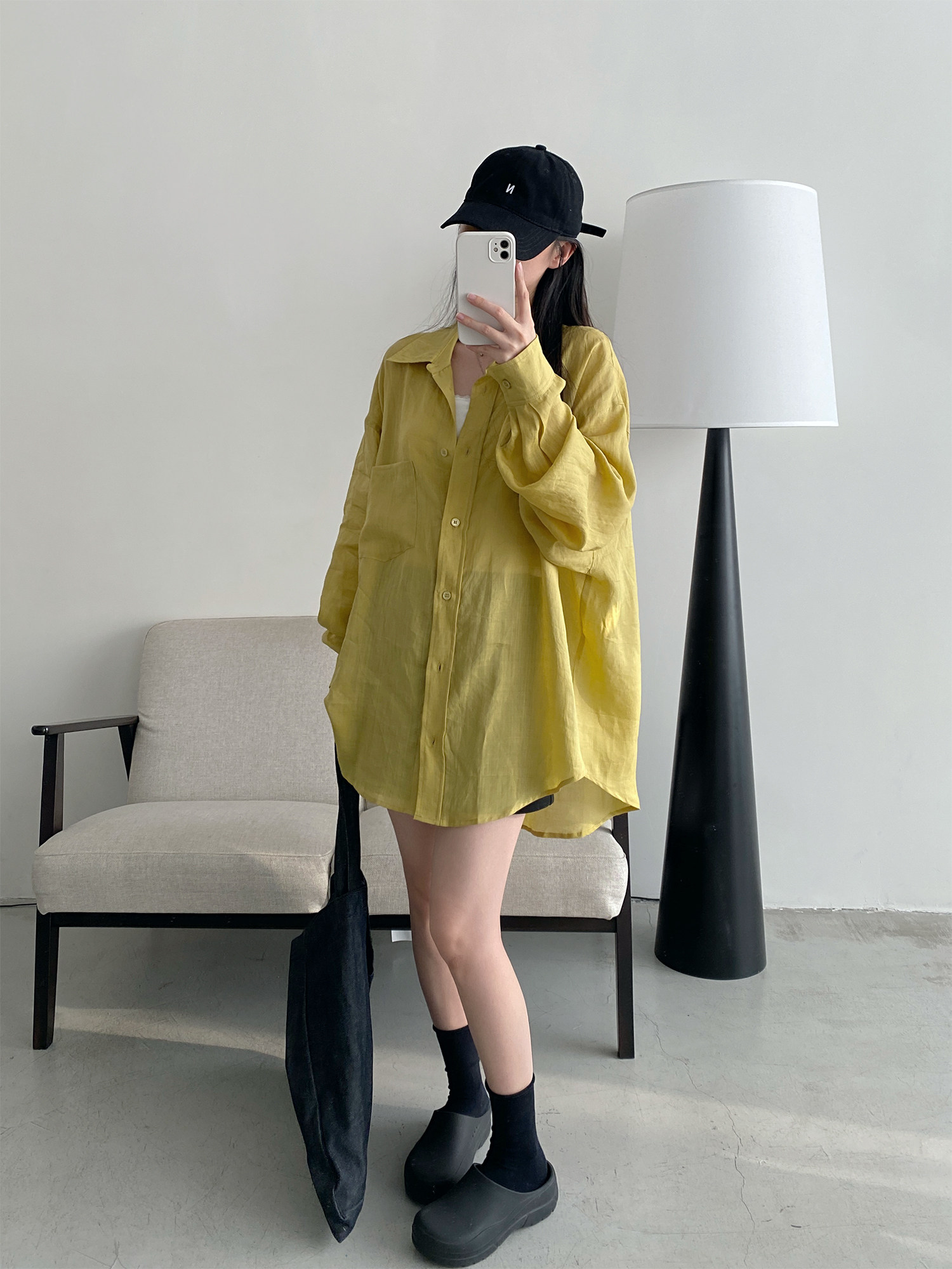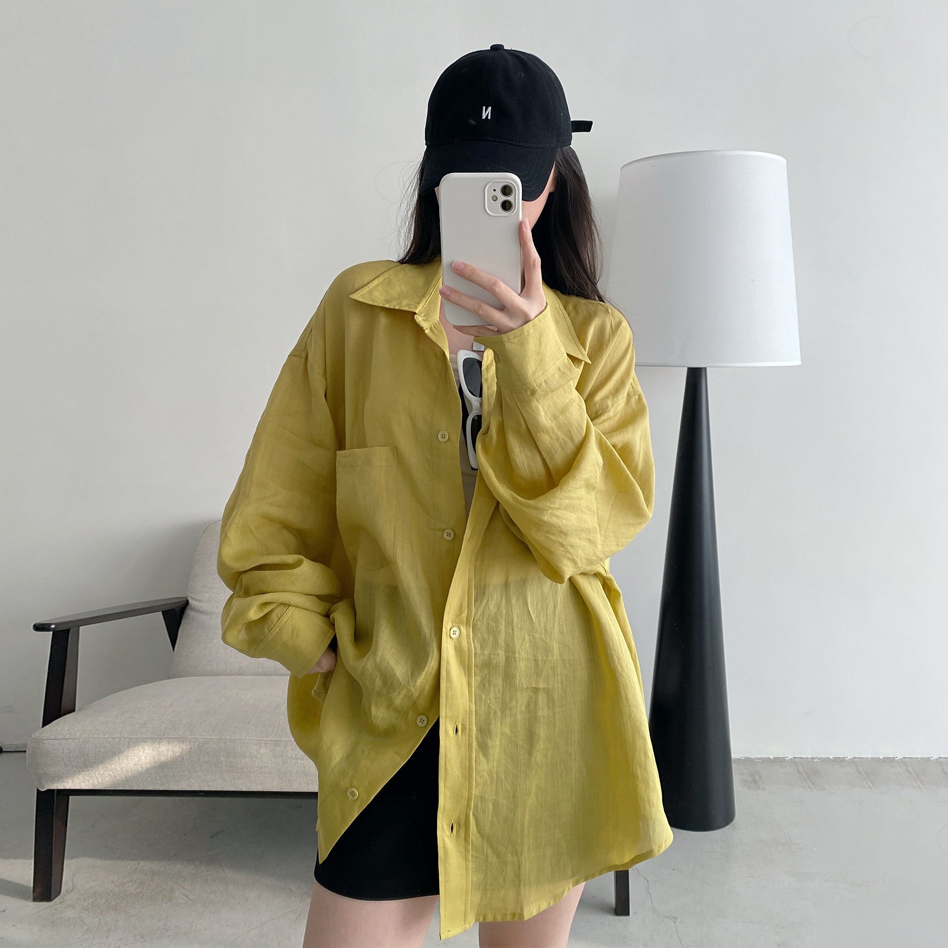 【アウター】リラックス感100% リネン混 オーバーサイズ 体型カバー 万能シャツ レディース 新作 カーディガン 【FCシリーズ】