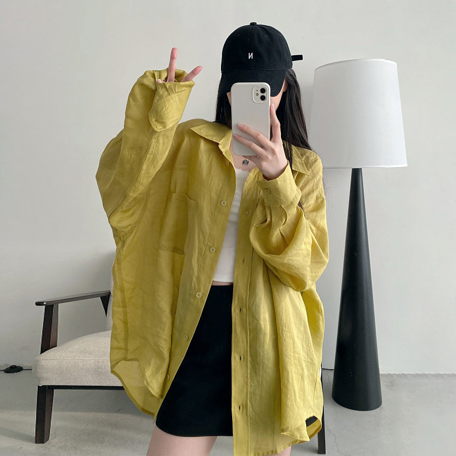 【商品名】【アウター】リラックス感100% リネン混 オーバーサイズ 体型カバー 万能シャツ レディース 新作 カーディガン【FCシリーズ】