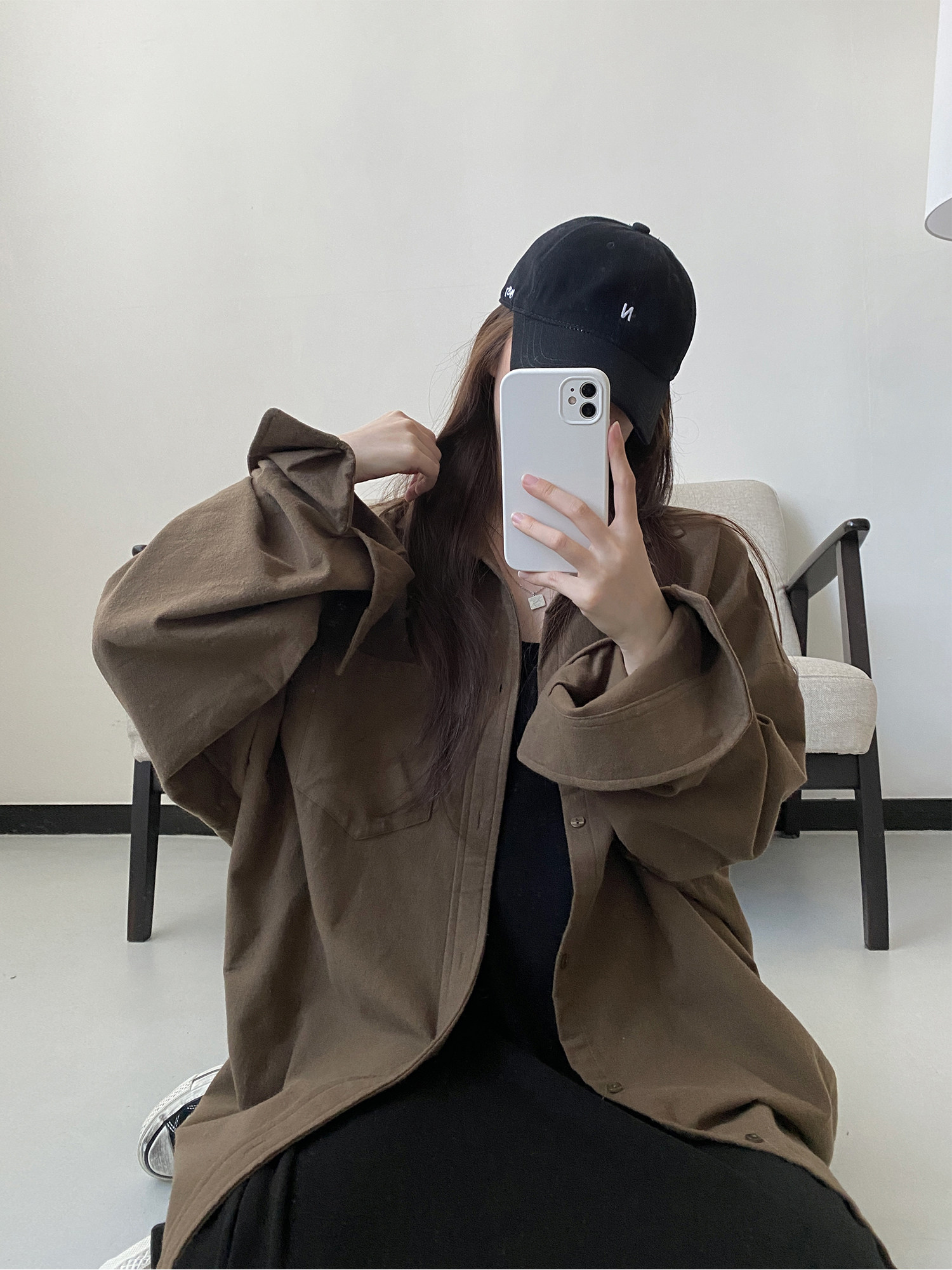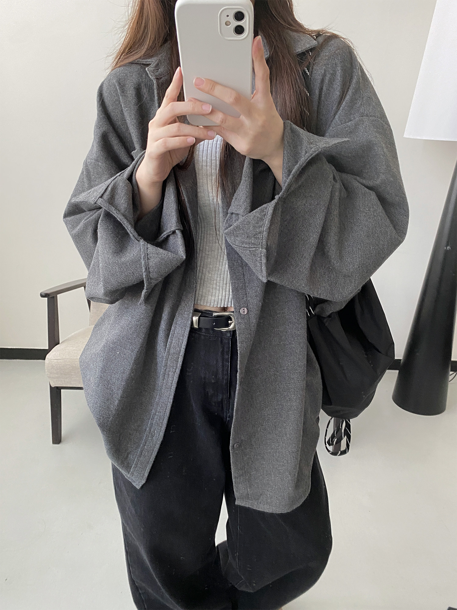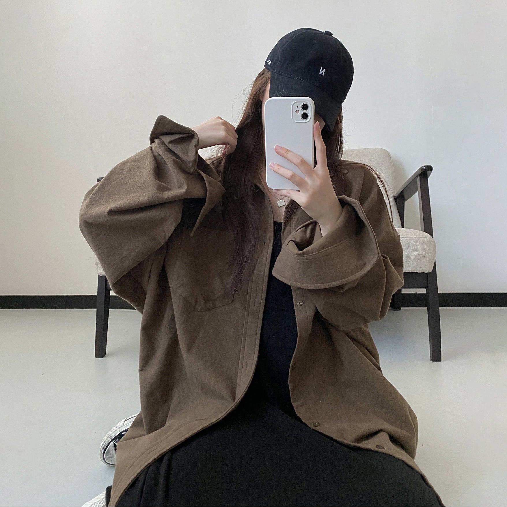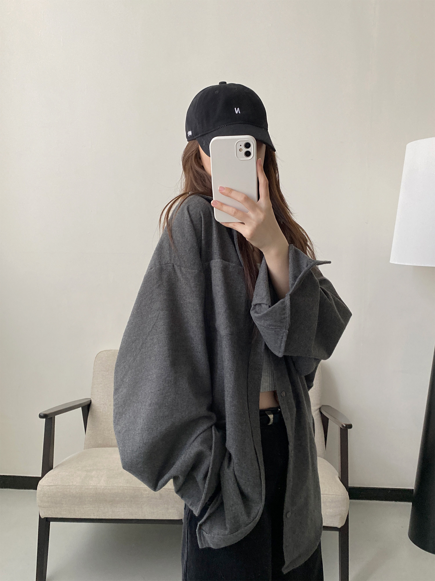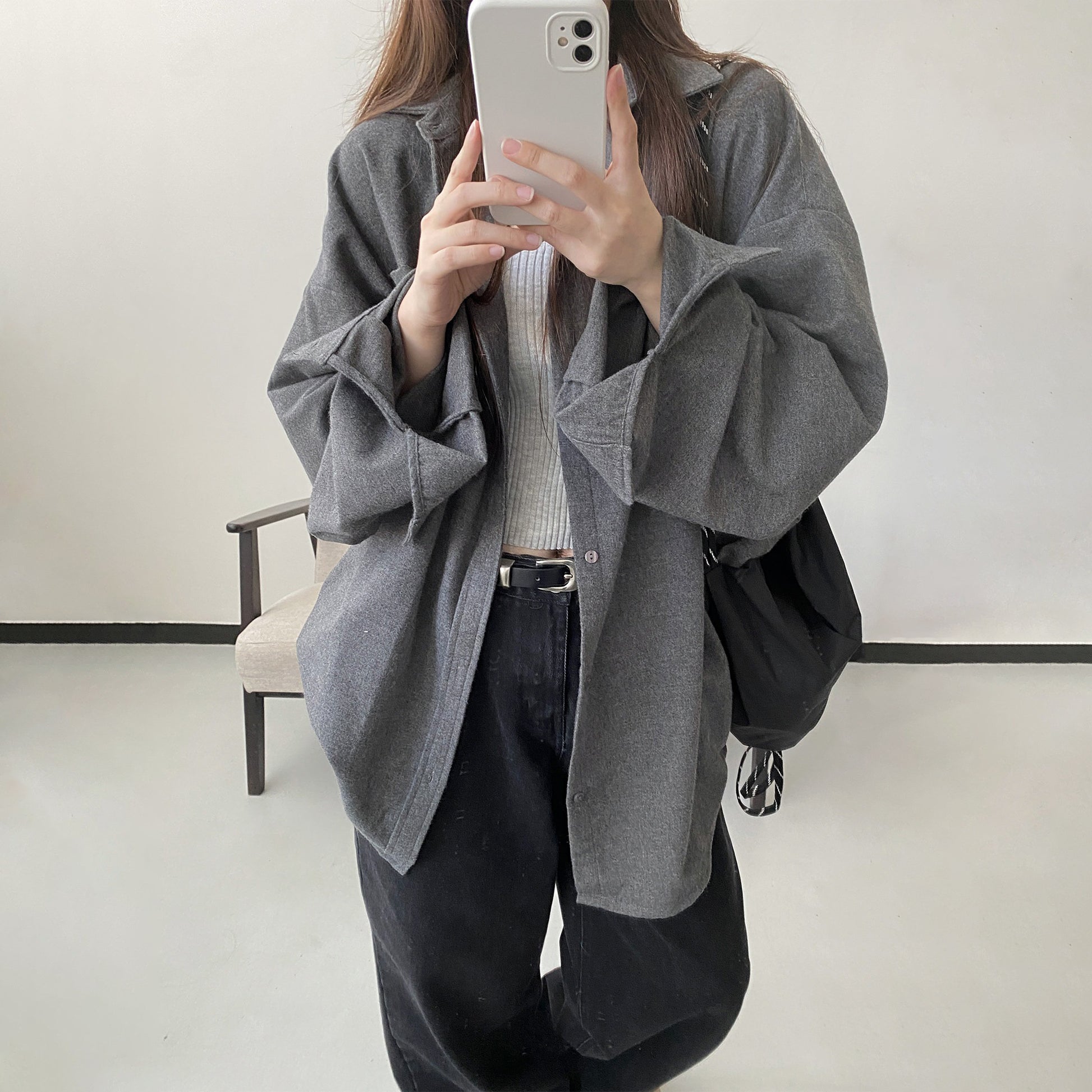 【商品名】【アウター】厚手 シャツ ビッグシルエット 体型カバー 長袖 カジュアル シャツカーディガン レディース 秋冬【FCシリーズ】