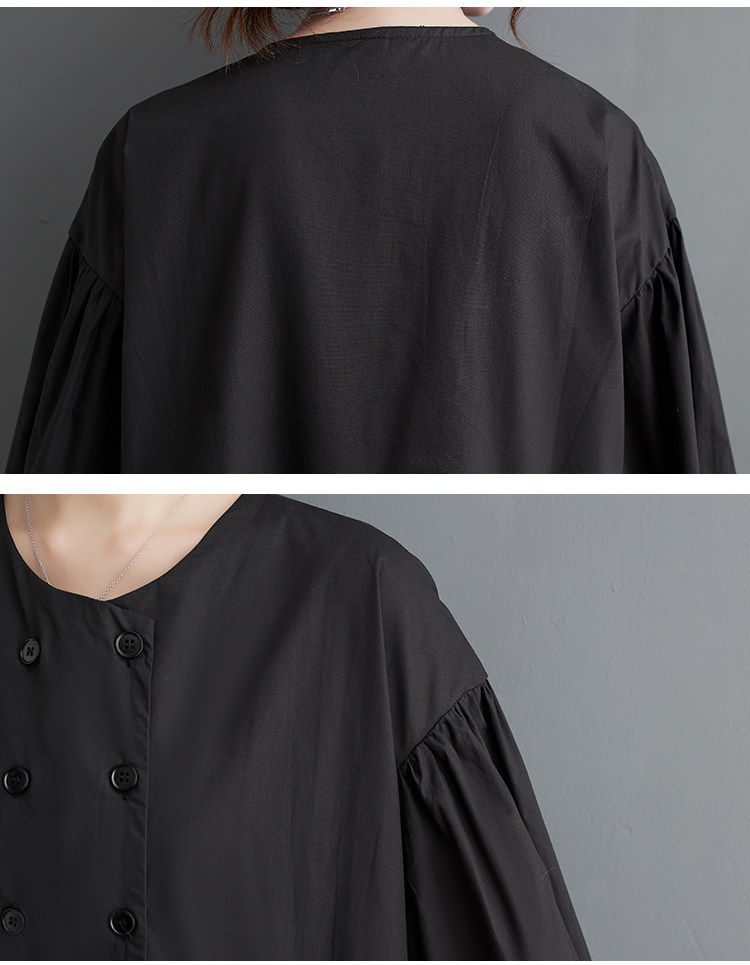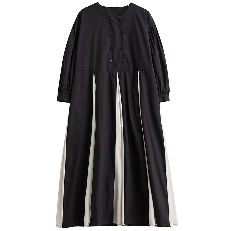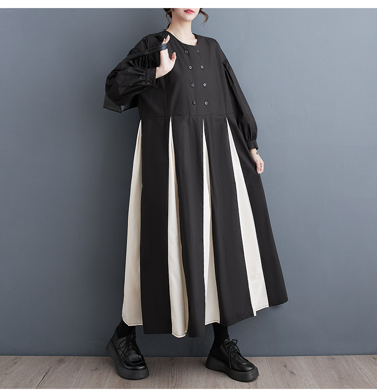 【商品名】【ワンピース】春秋新作 韓国風 ボリューム袖 モノトーン切り替え ダブルボタン 長袖ワンピース きれいめカジュアル【AHシリーズ】