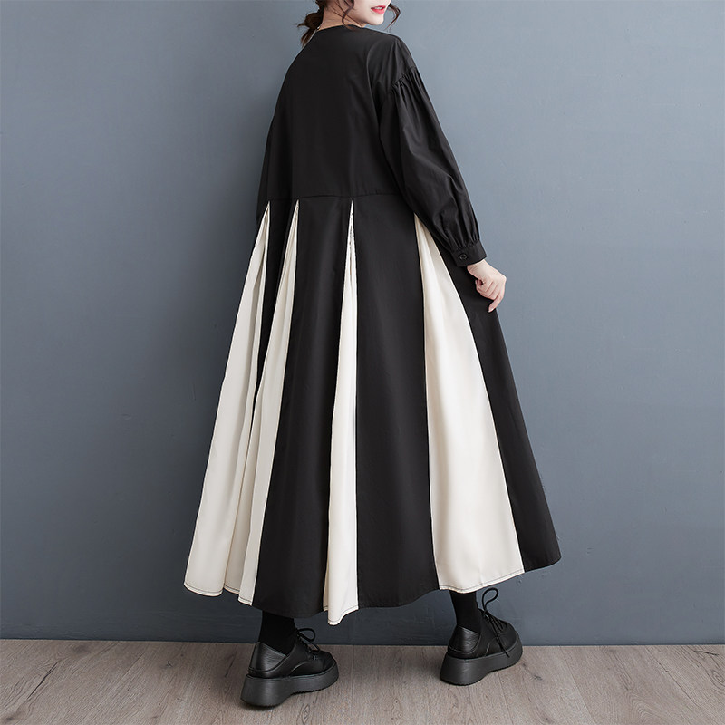 2/25~3/2 | 期間限定⭐️60%OFF🔥HOT【ワンピース】春秋ラウンドネック 長袖 ニット パッチワーク ロング 長袖ワンピース