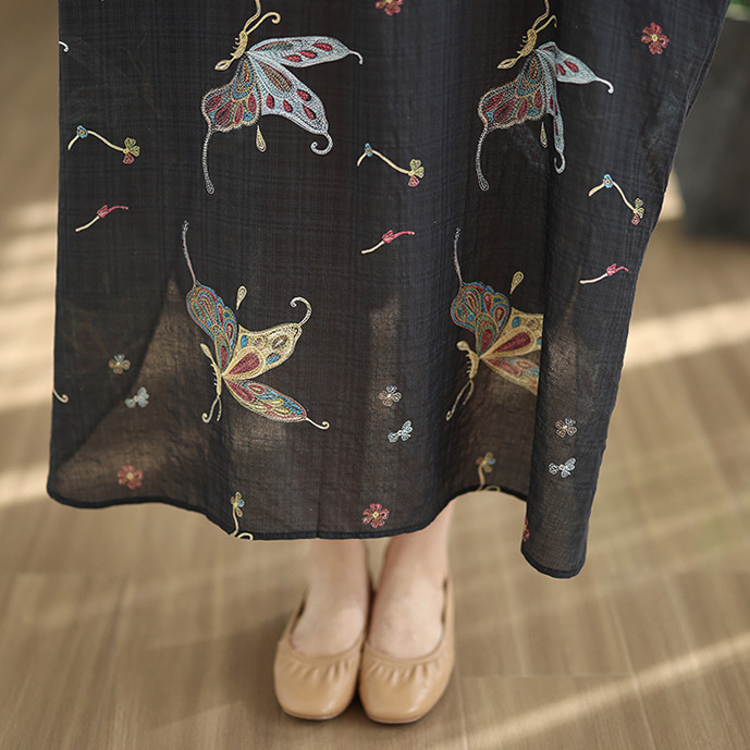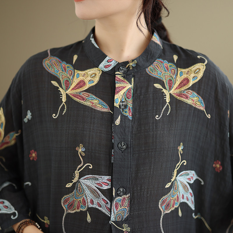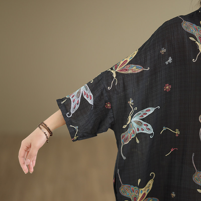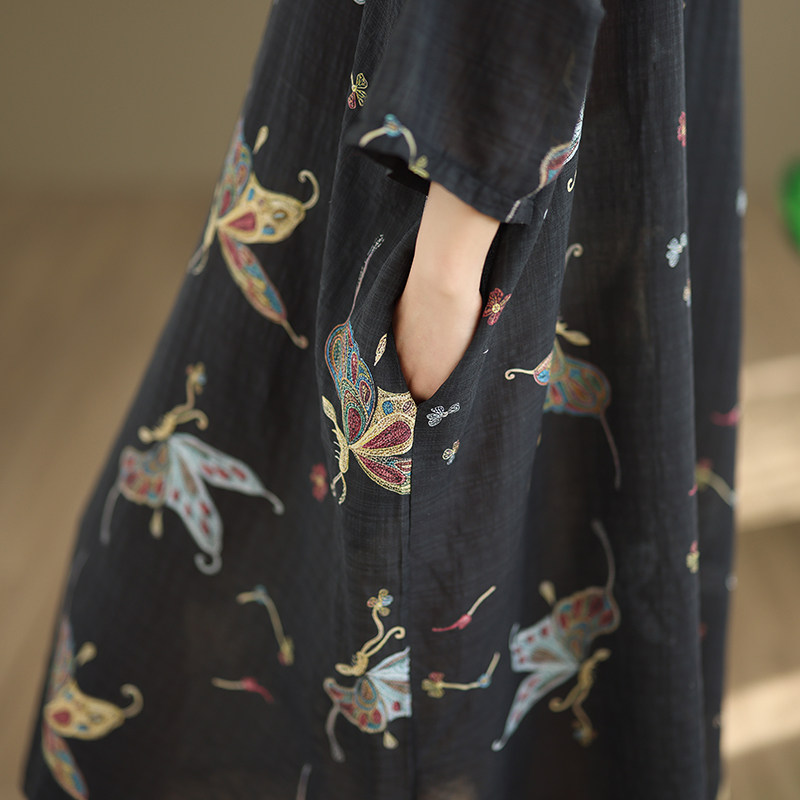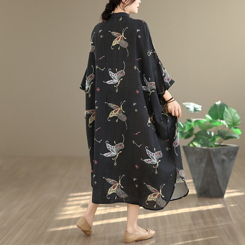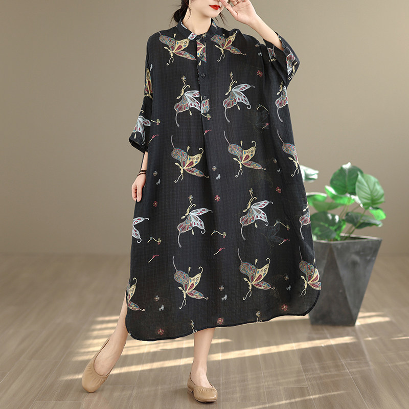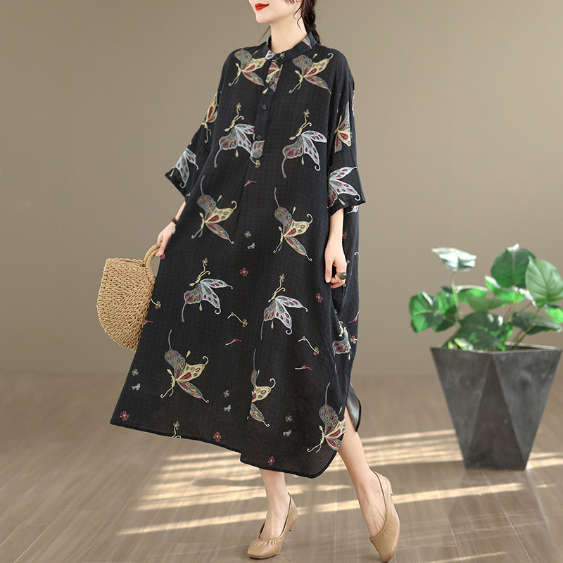 期間限定⭐️60%OFF【ワンピース】コットンリネン プリント 立ち襟 花柄 7分袖 ワンピース 【SHシリーズ】