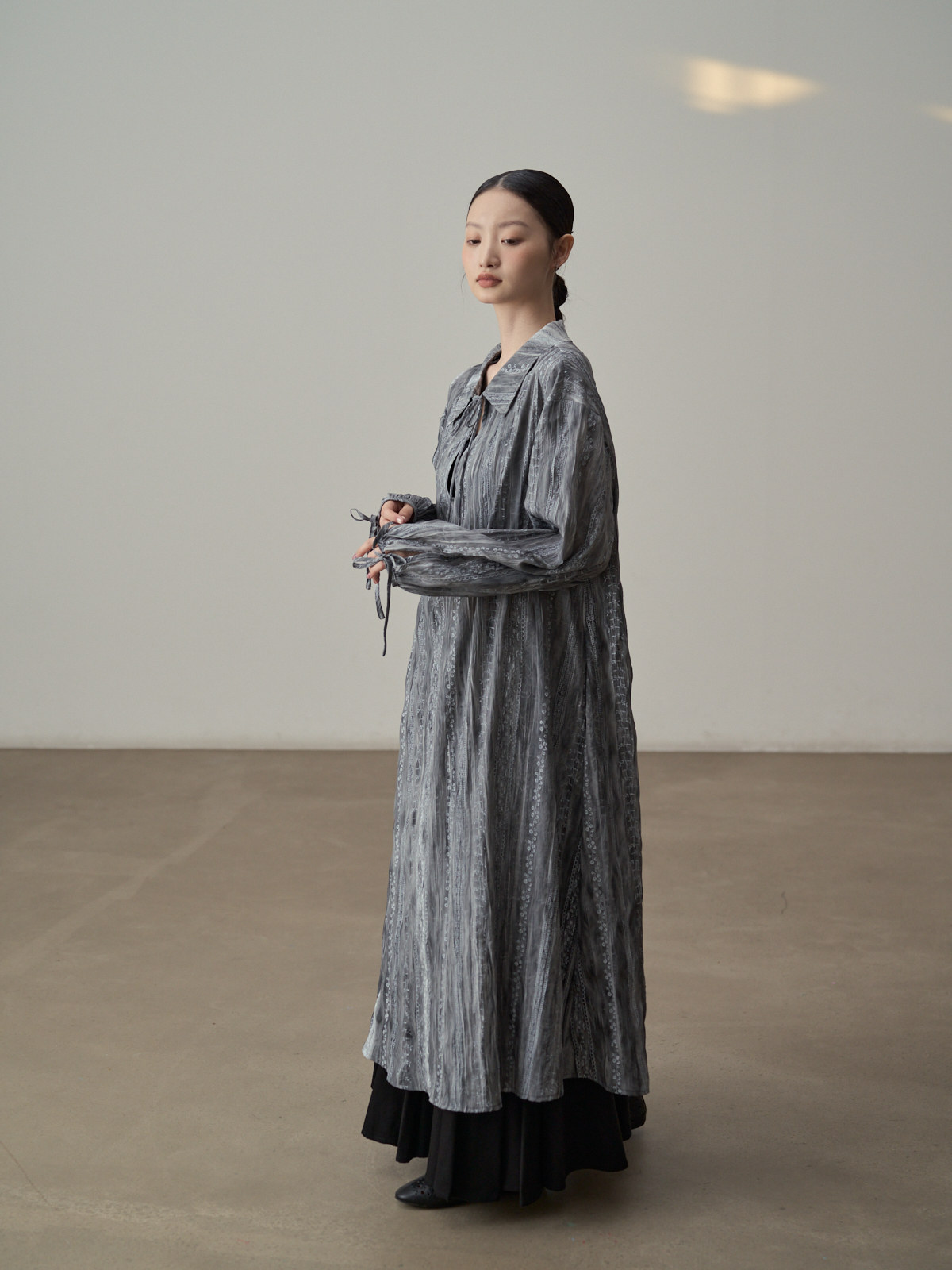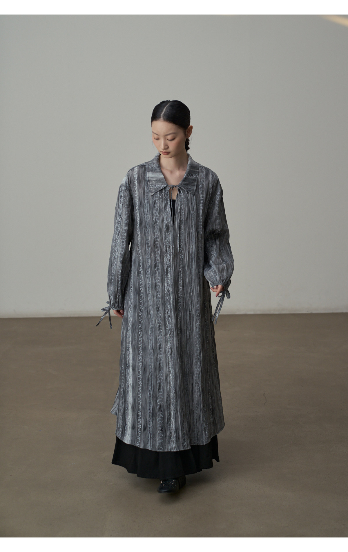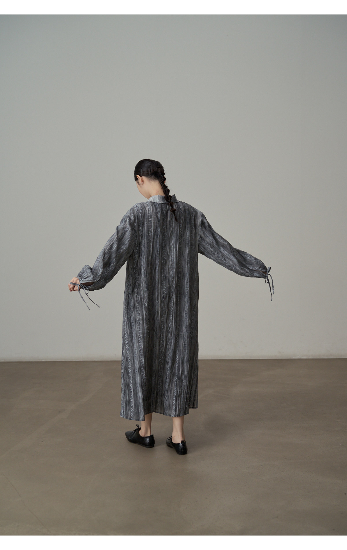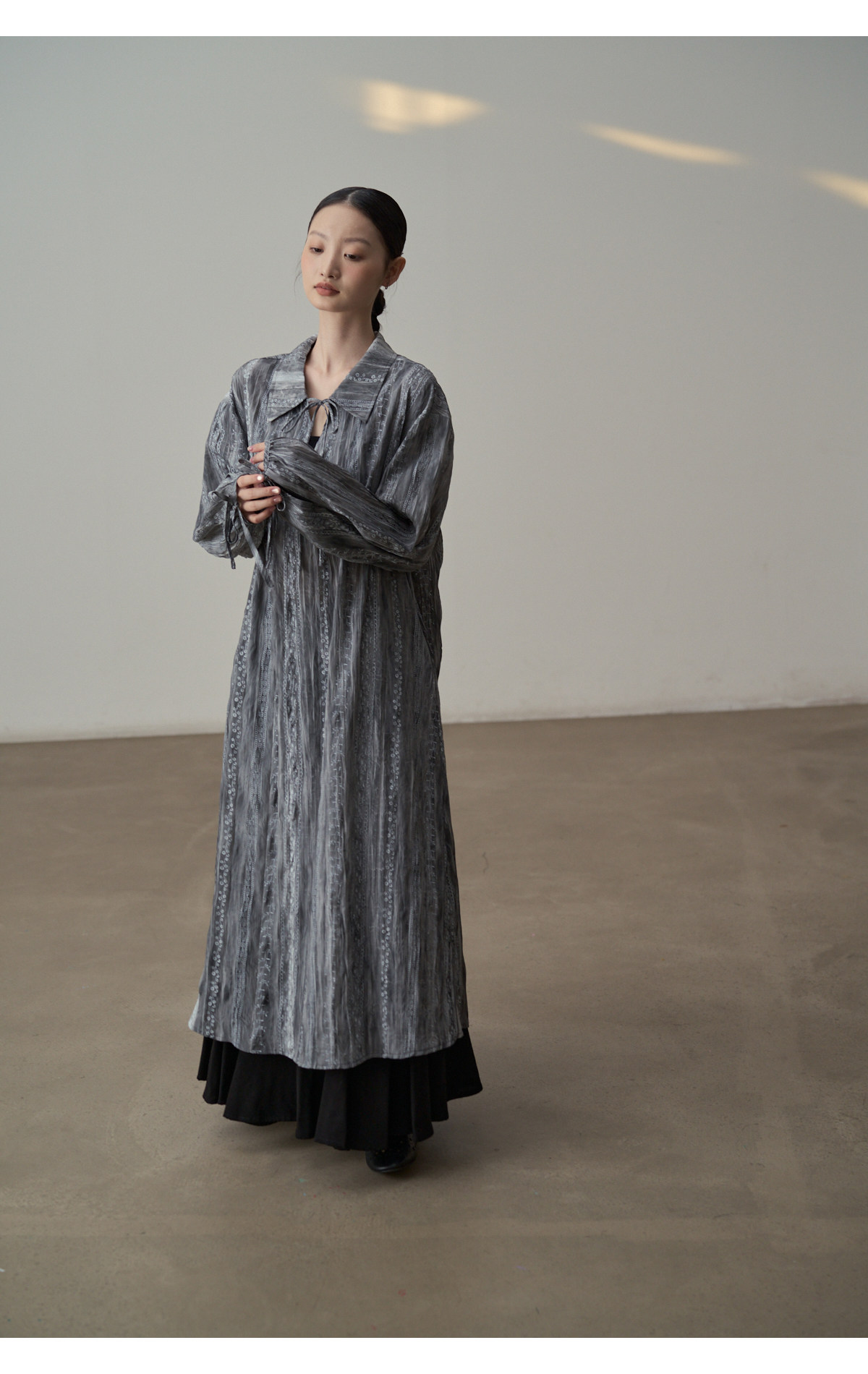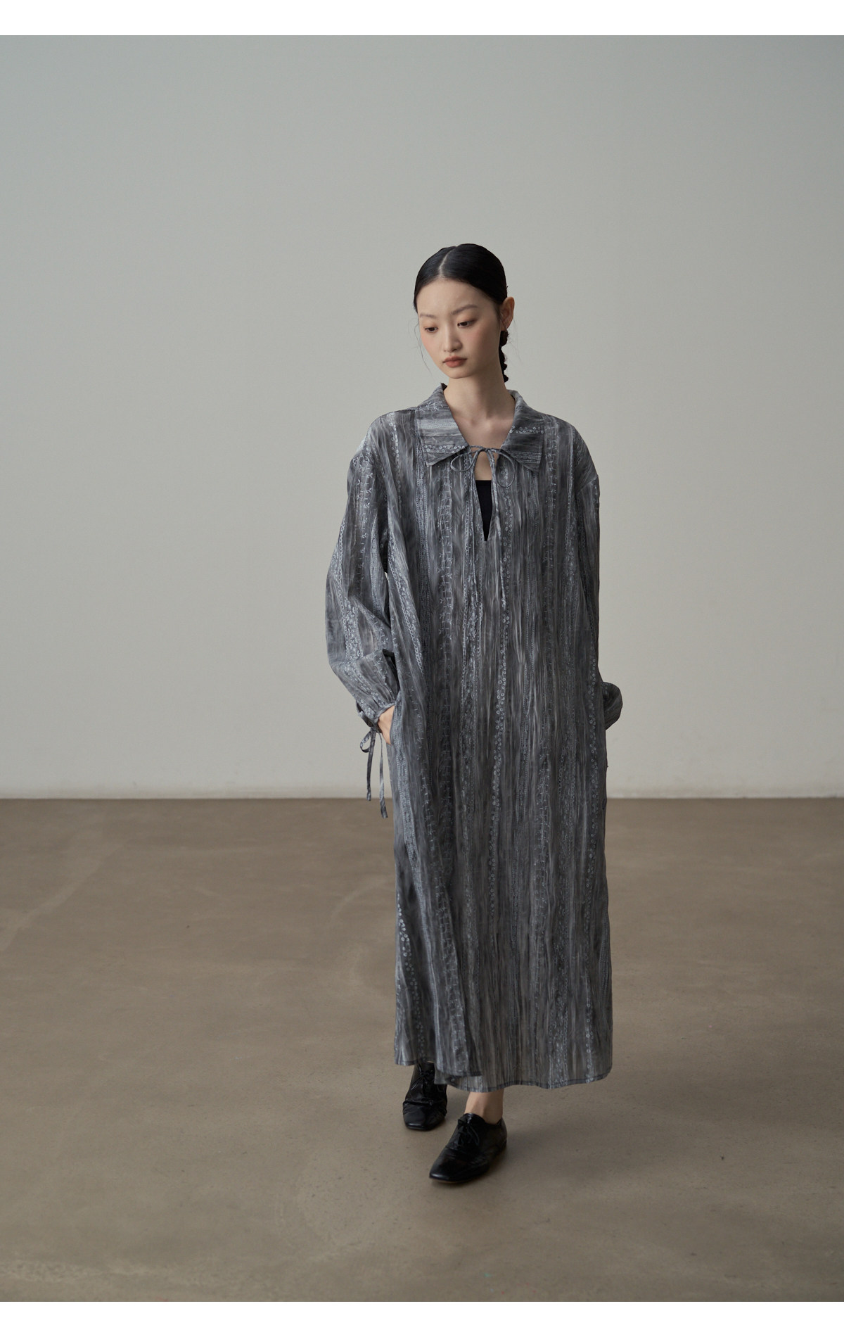 【ワンピース】春秋新作 ワイドシルエット ダークテイスト プリーツデザイン チュールレイヤード 長袖ワンピース トレンチ ロング丈 モード系【AHシリーズ】