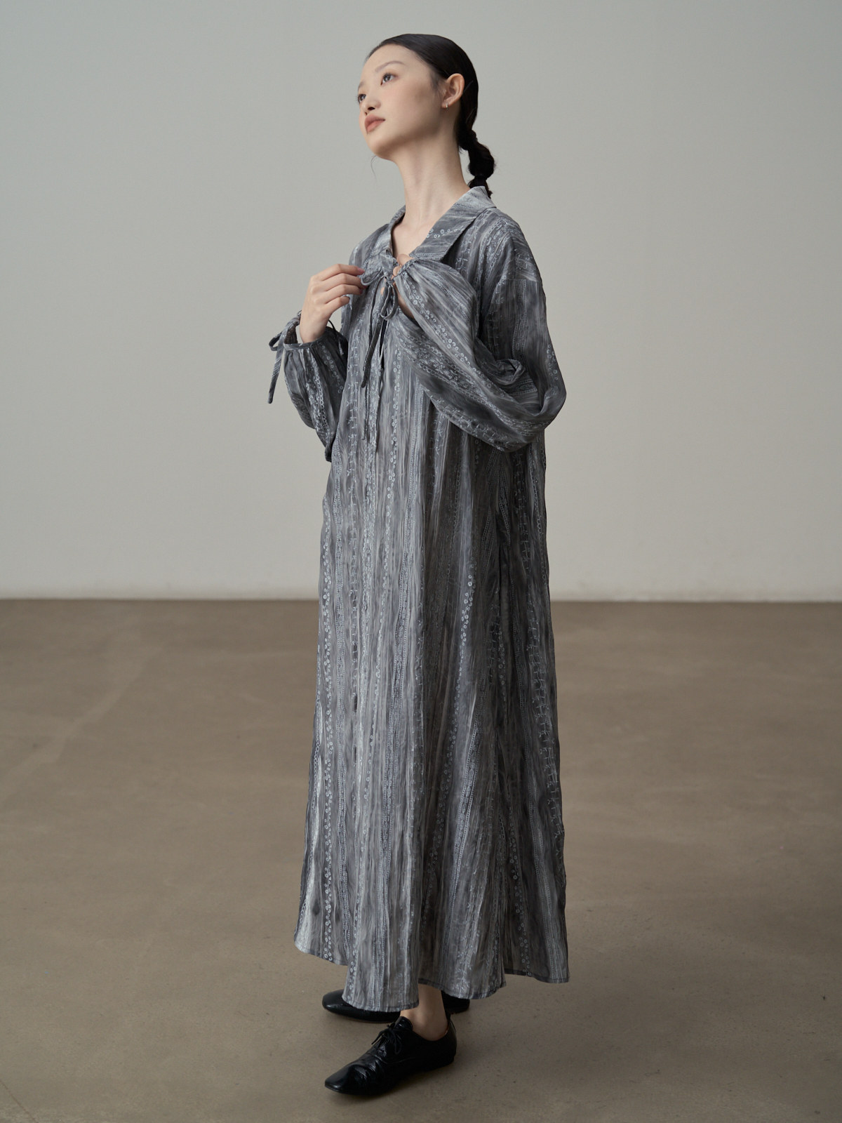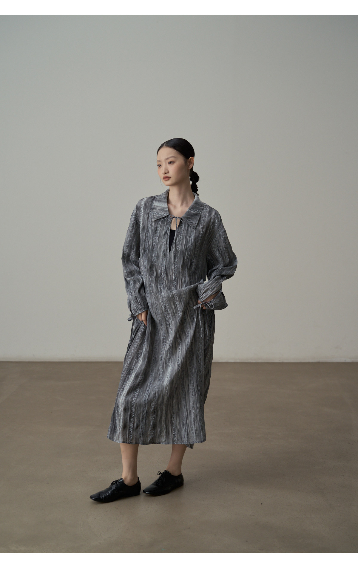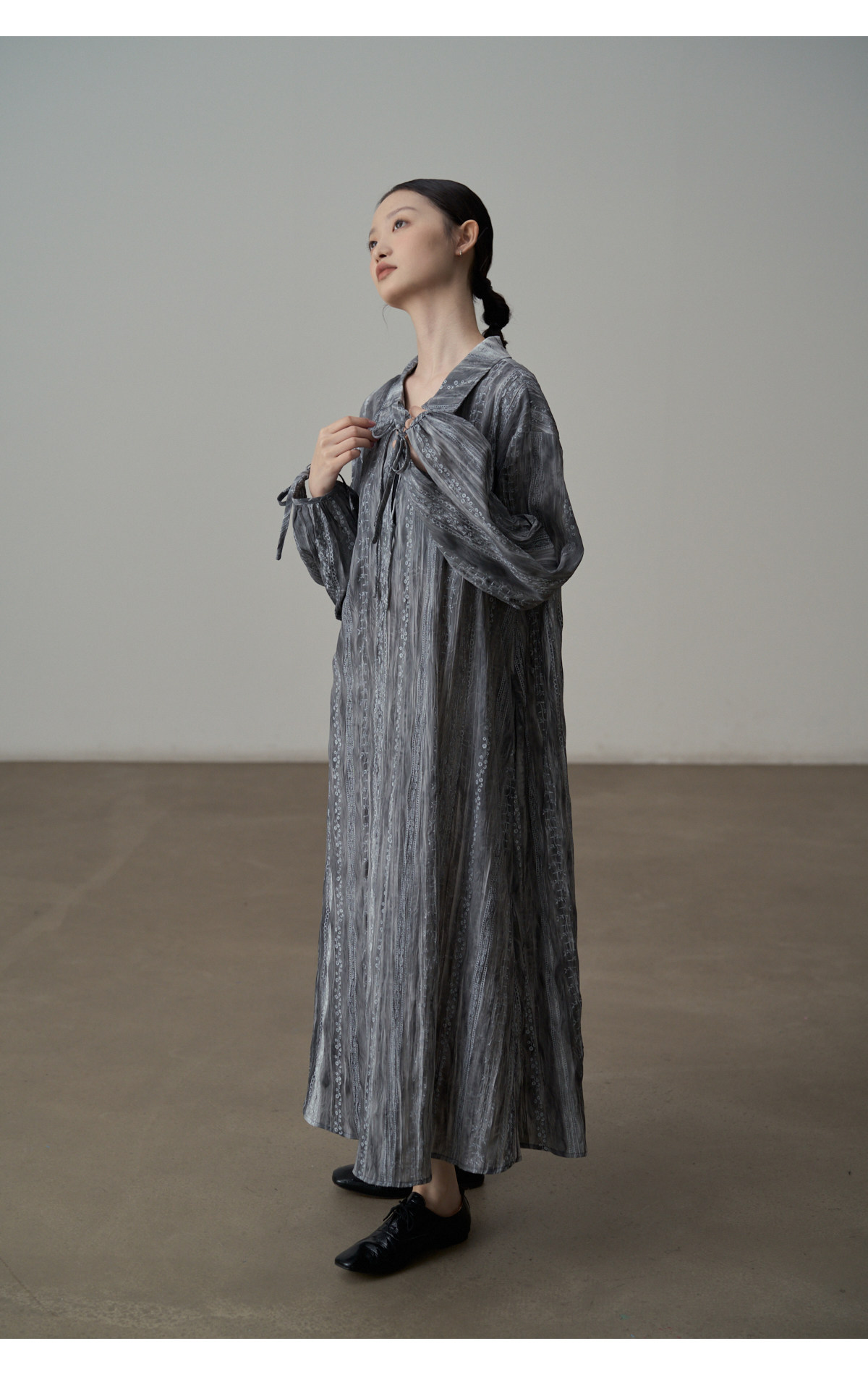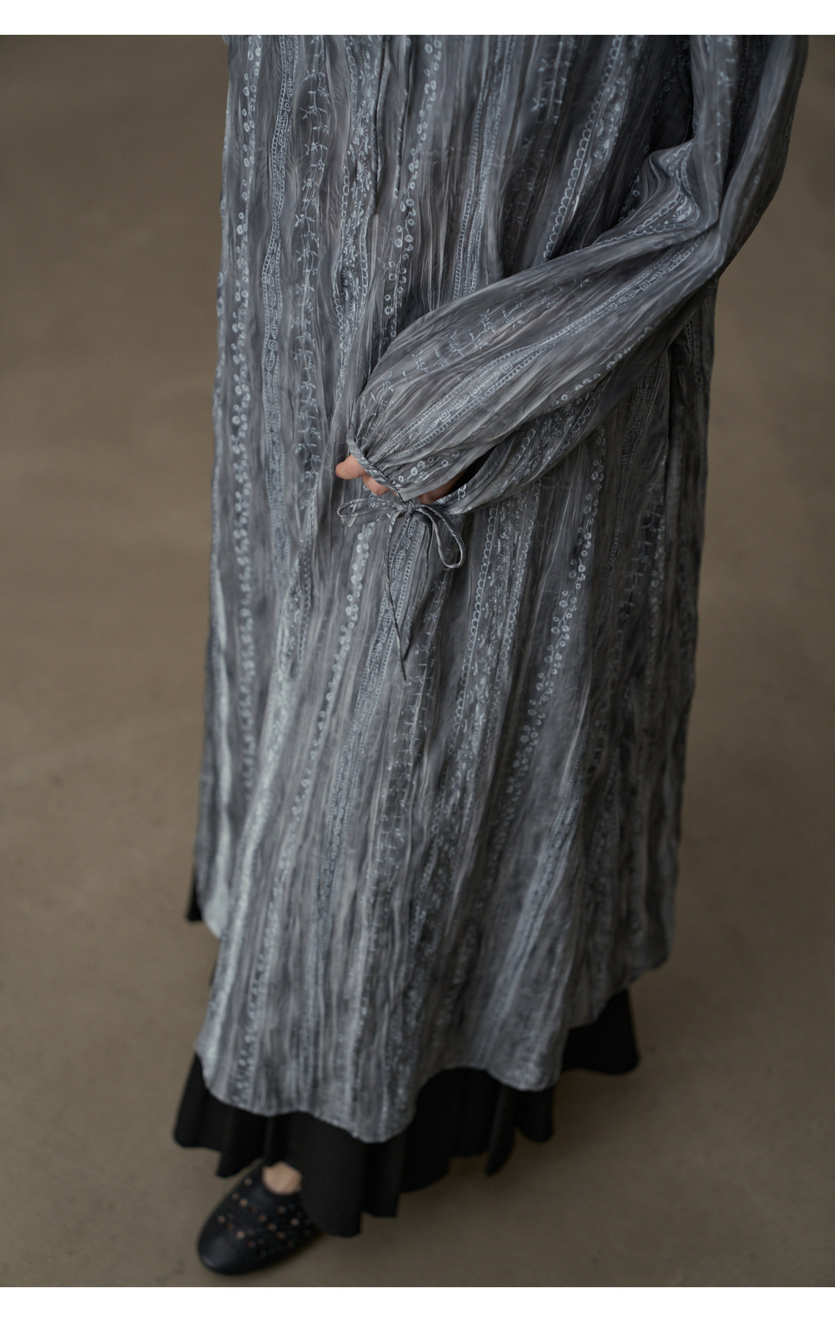 【ワンピース】春秋新作 ワイドシルエット ダークテイスト プリーツデザイン チュールレイヤード 長袖ワンピース トレンチ ロング丈 モード系【AHシリーズ】