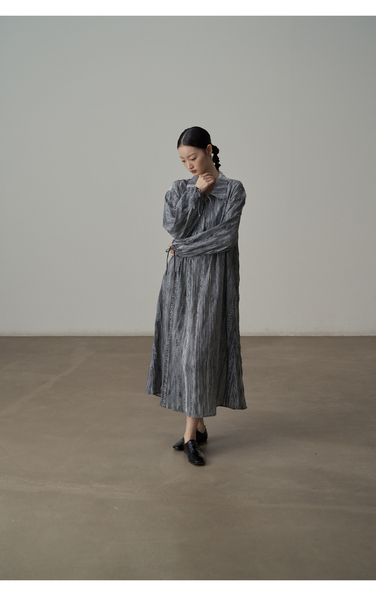 【ワンピース】チャイナテイスト ブルーホワイト柄 フリル フレア 長袖 ワンピース 【SHシリーズ】