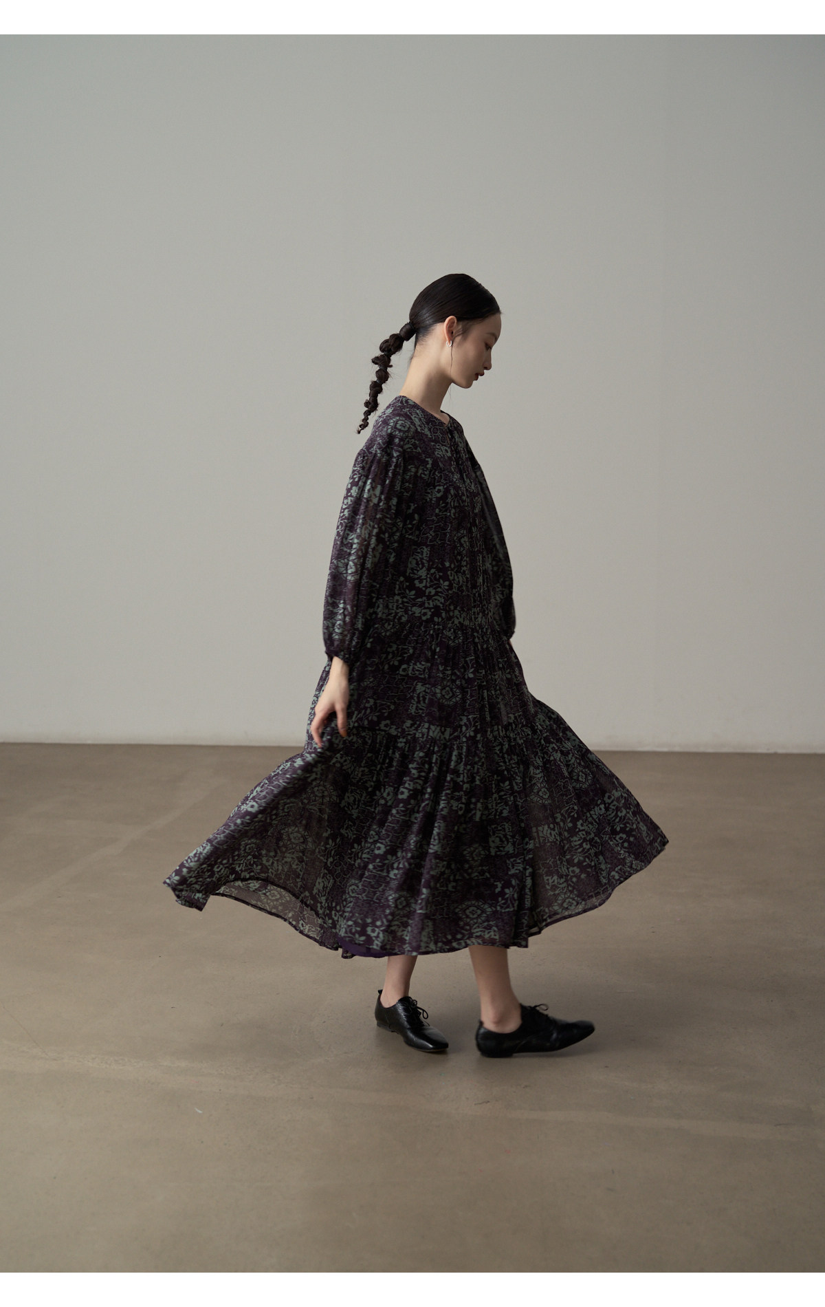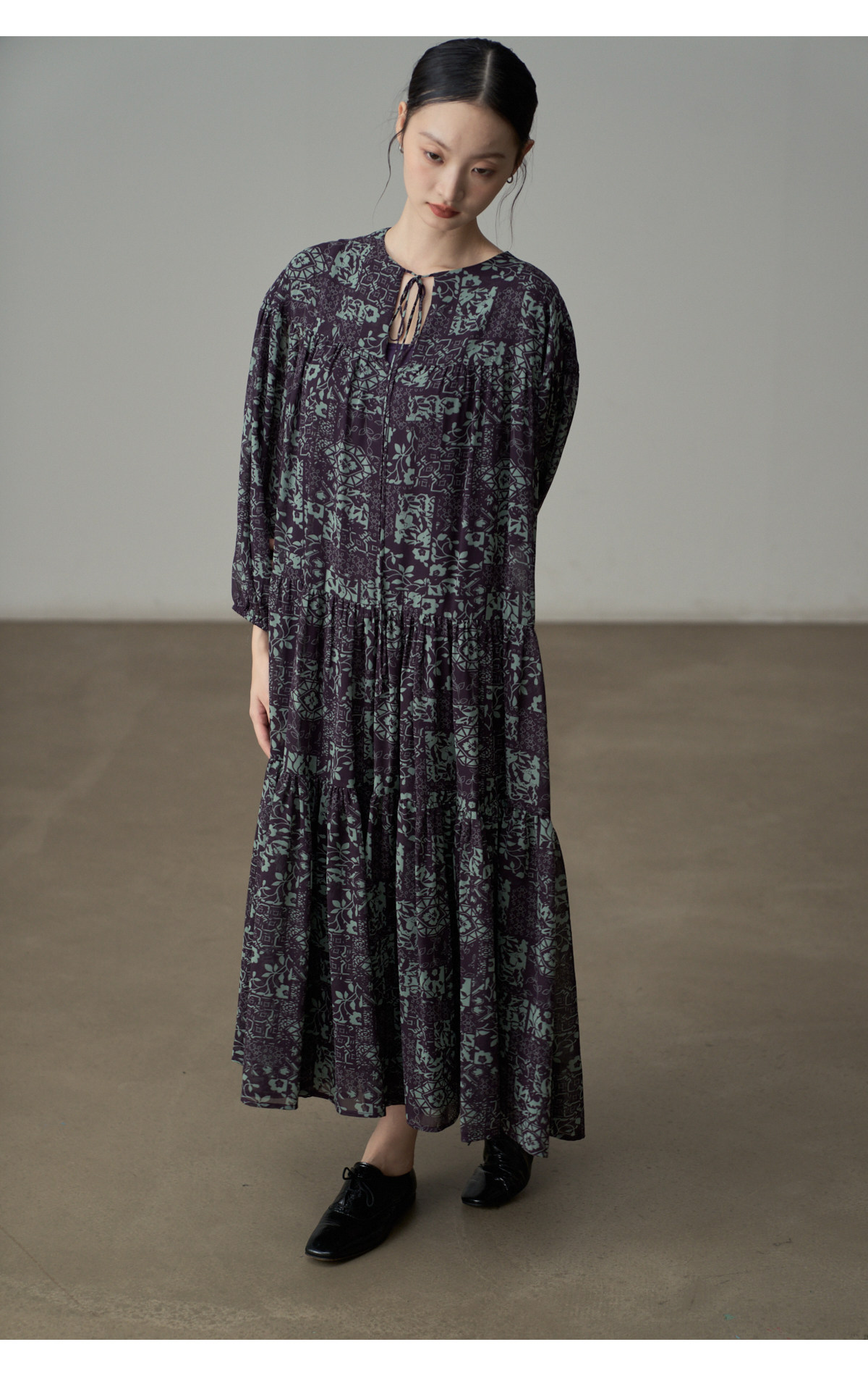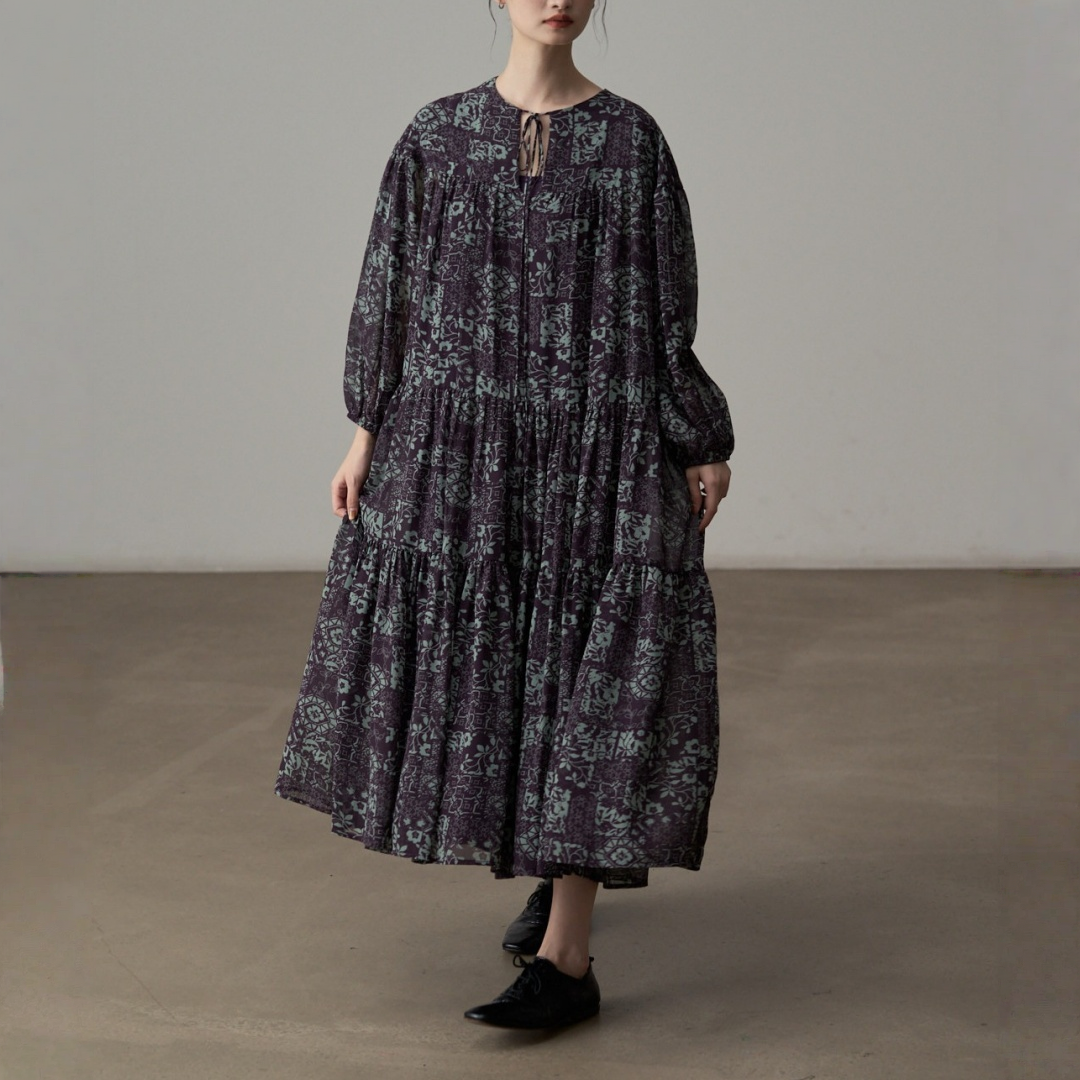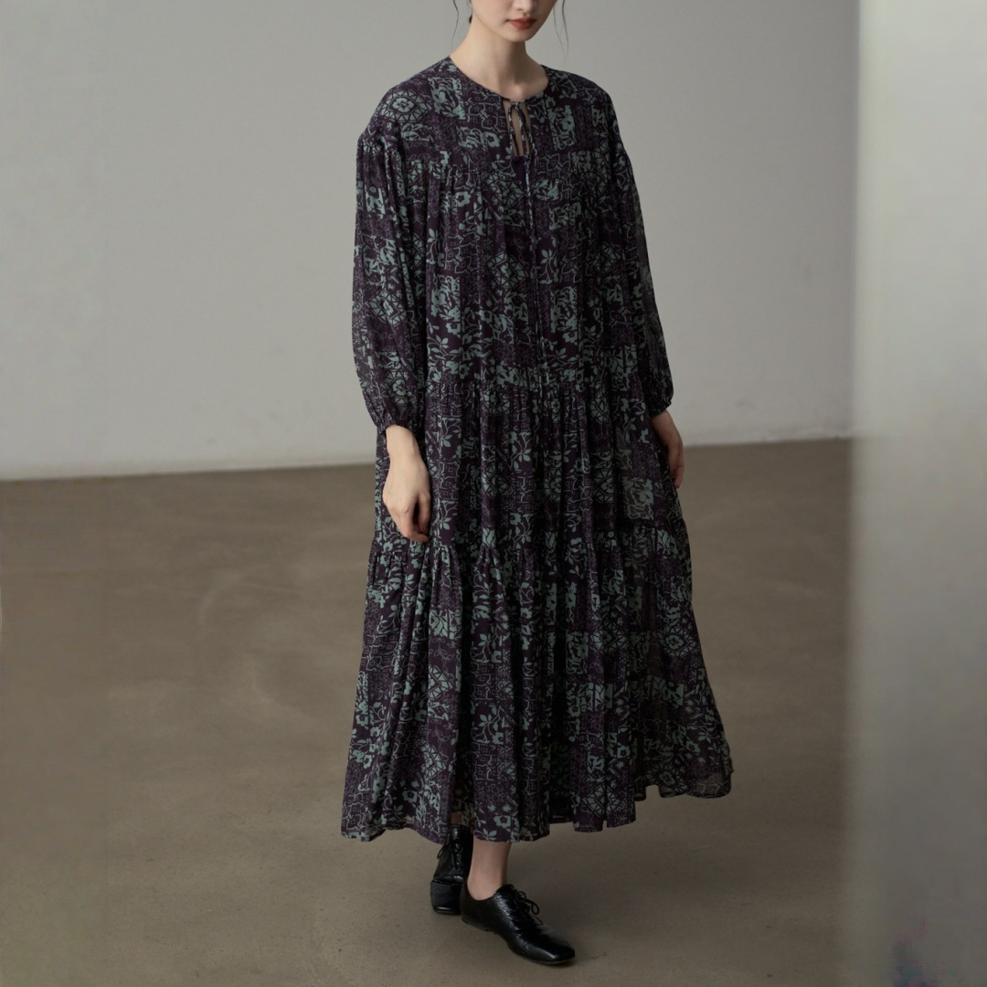 期間限定⭐️60%OFF【ワンピース】コットンリネン プリント 立ち襟 花柄 7分袖 ワンピース 【SHシリーズ】
