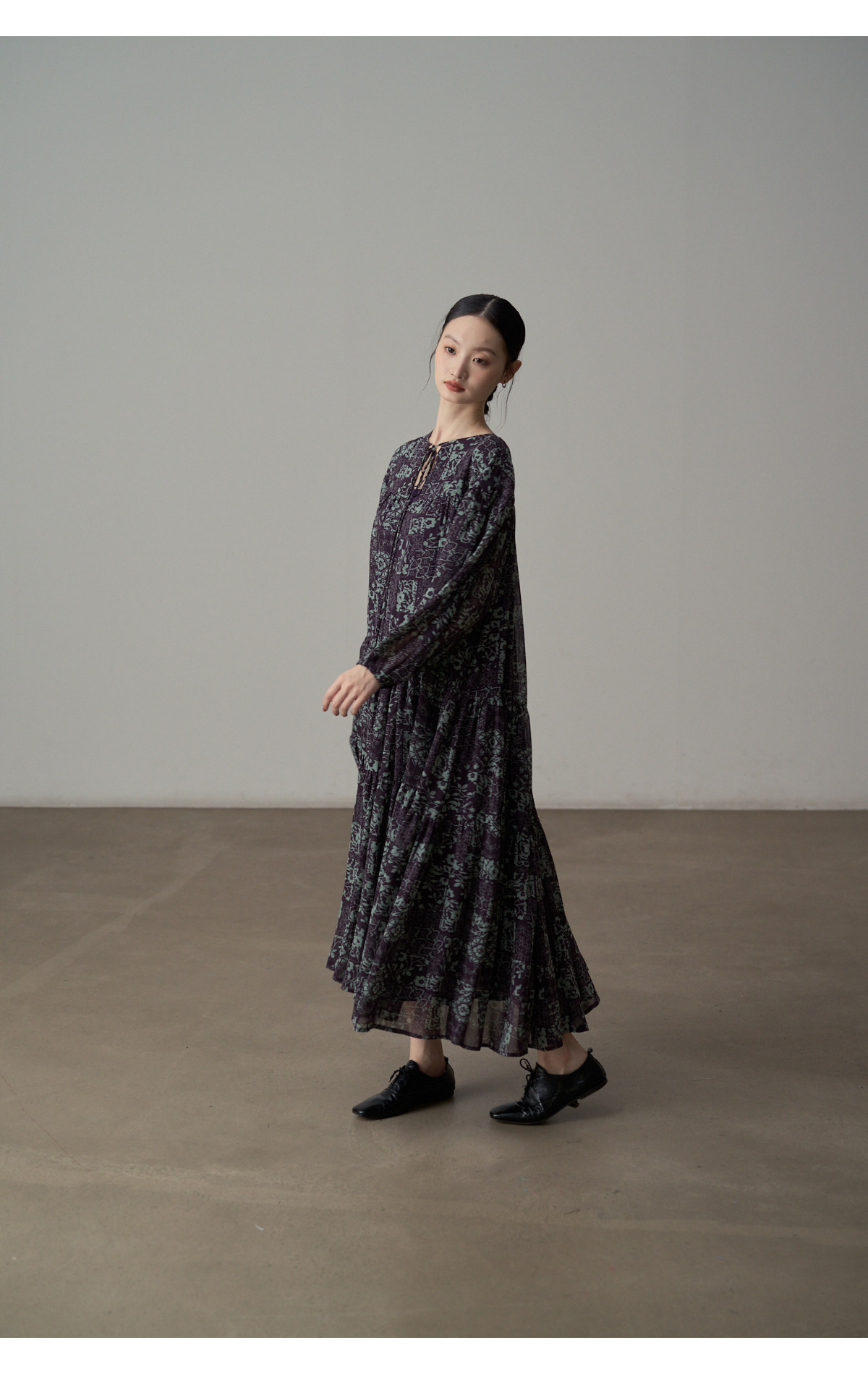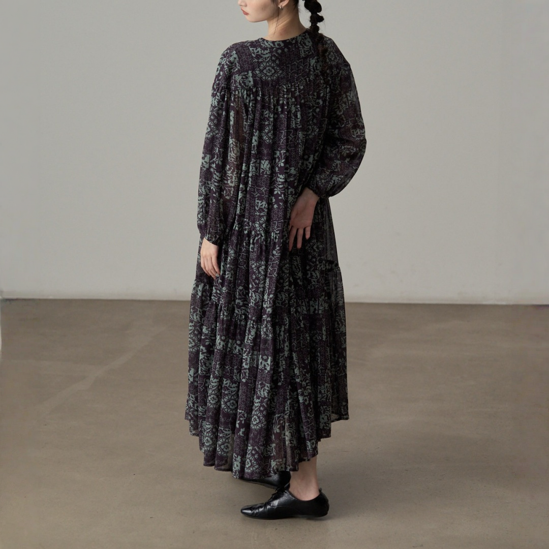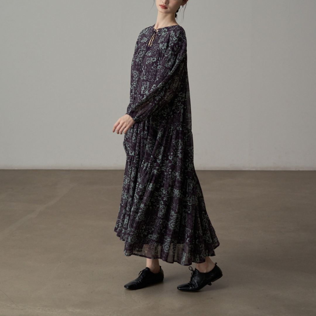【商品名】【ワンピース】センスある シフォン センスある レイヤード感 レイヤード風 長袖 ワンピース 【SHシリーズ】