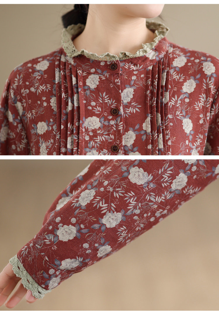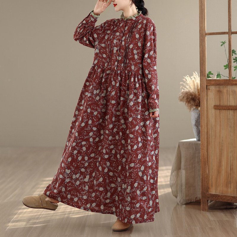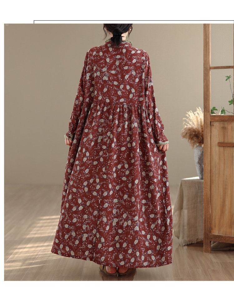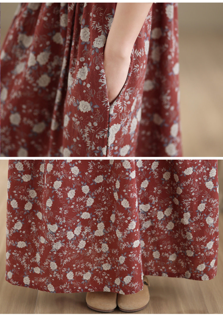 期間限定⭐️60%OFF【ワンピース】コットンリネン プリント 立ち襟 花柄 7分袖 ワンピース 【SHシリーズ】
