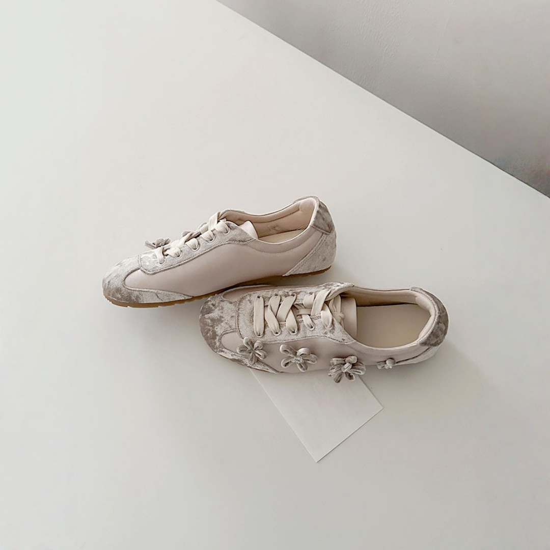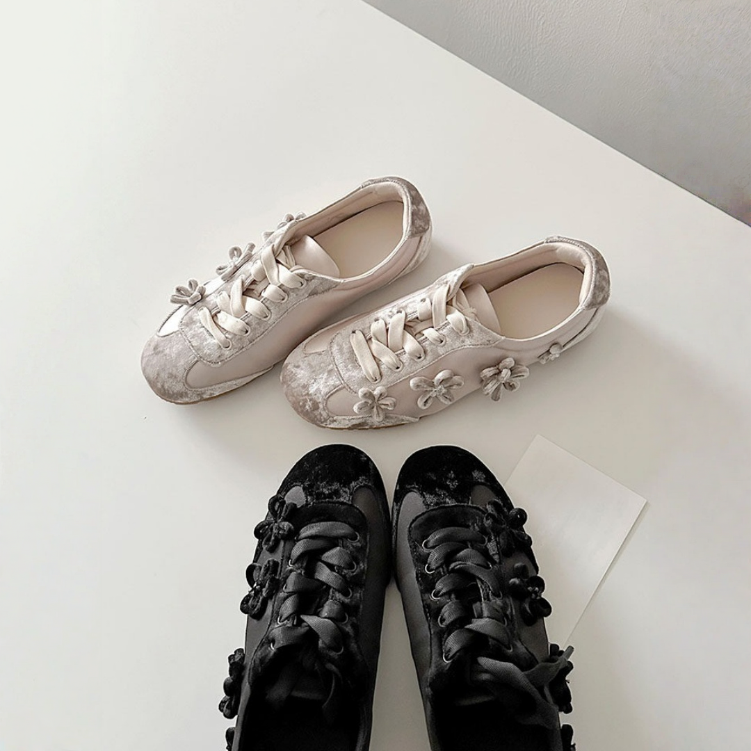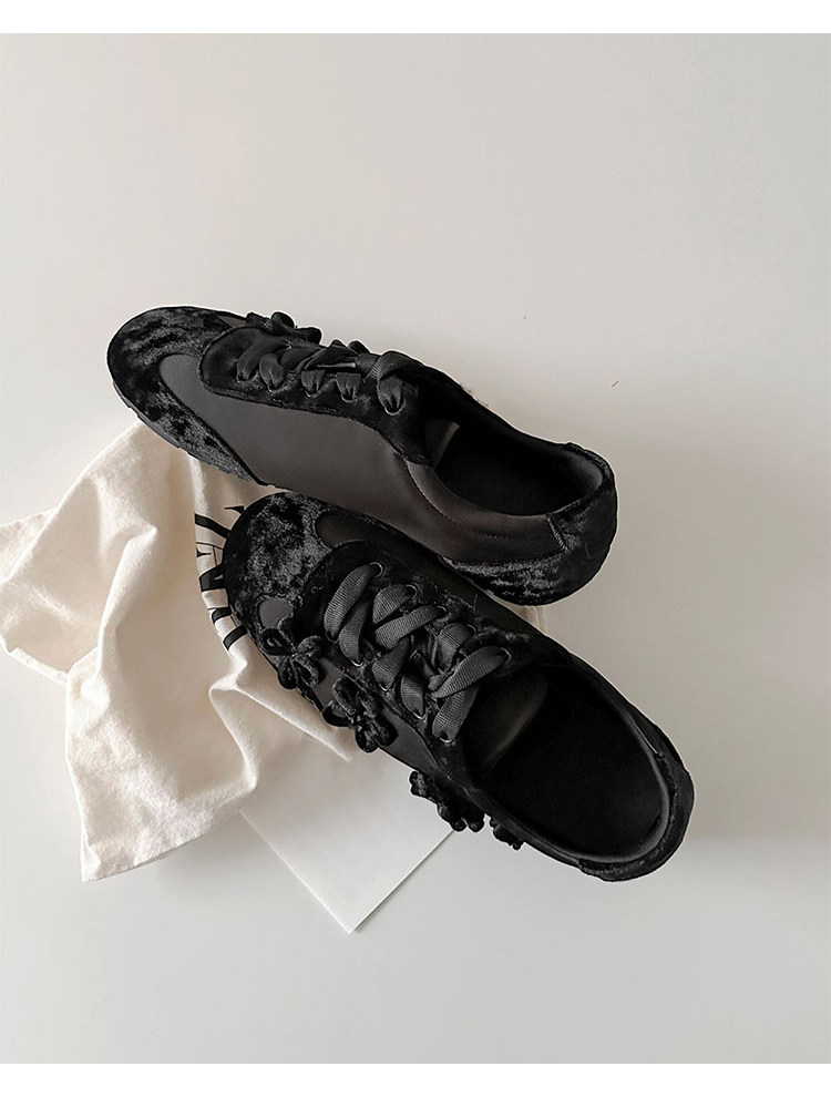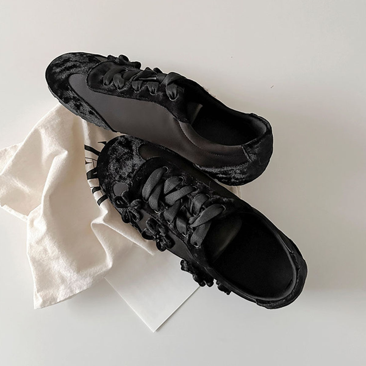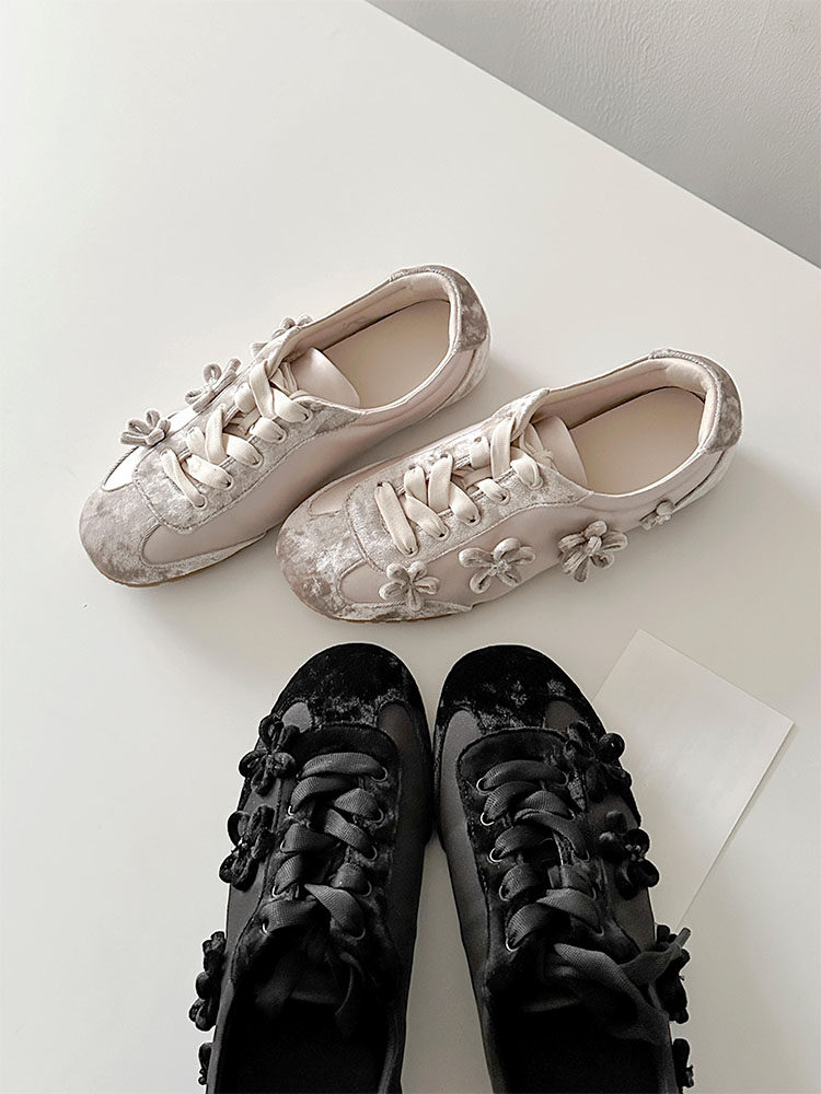 【シューズ】フラワー フラワー レトロ レースアップ ジャーマントレーナー パンプス 【JZシリーズ】