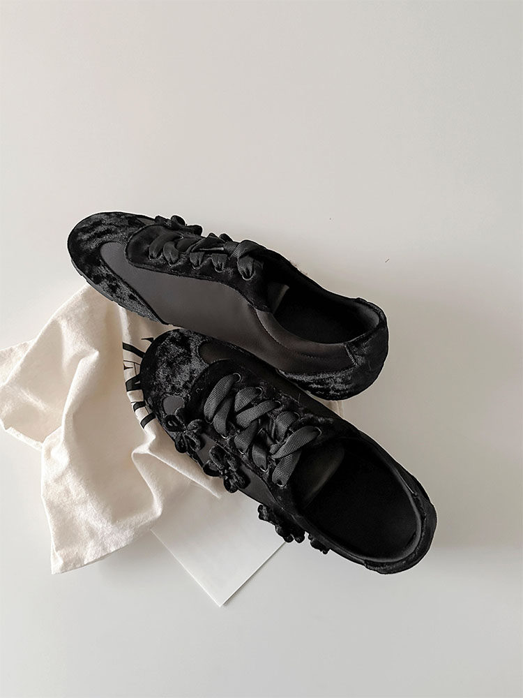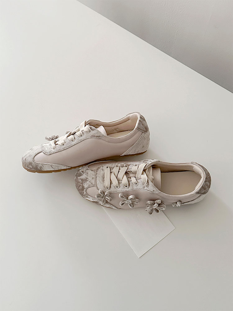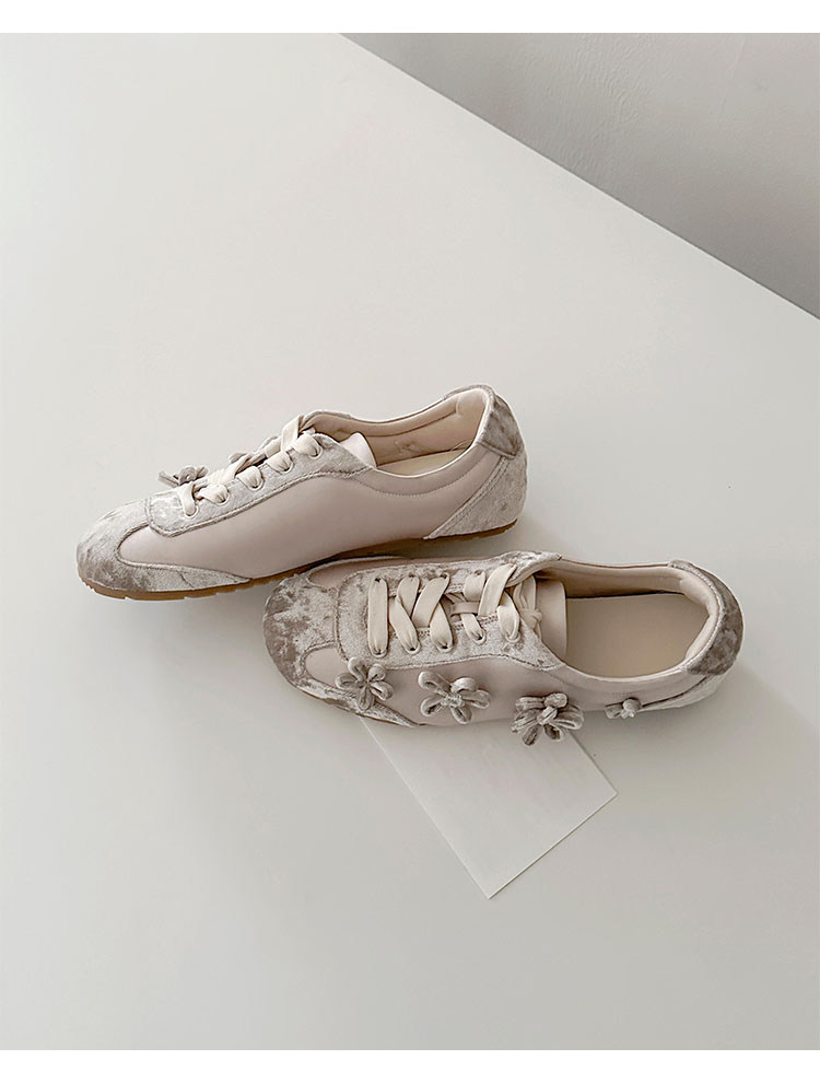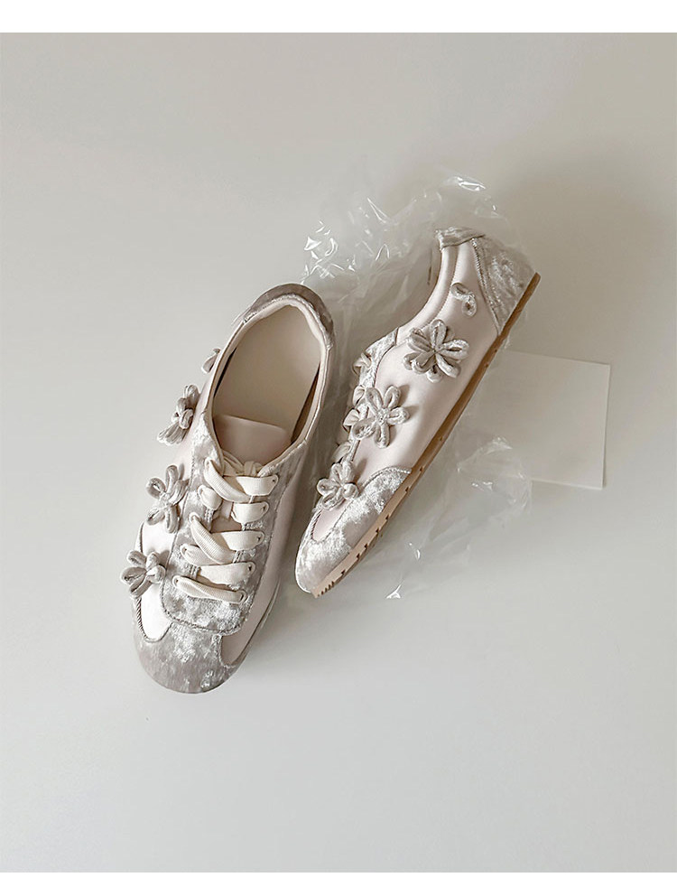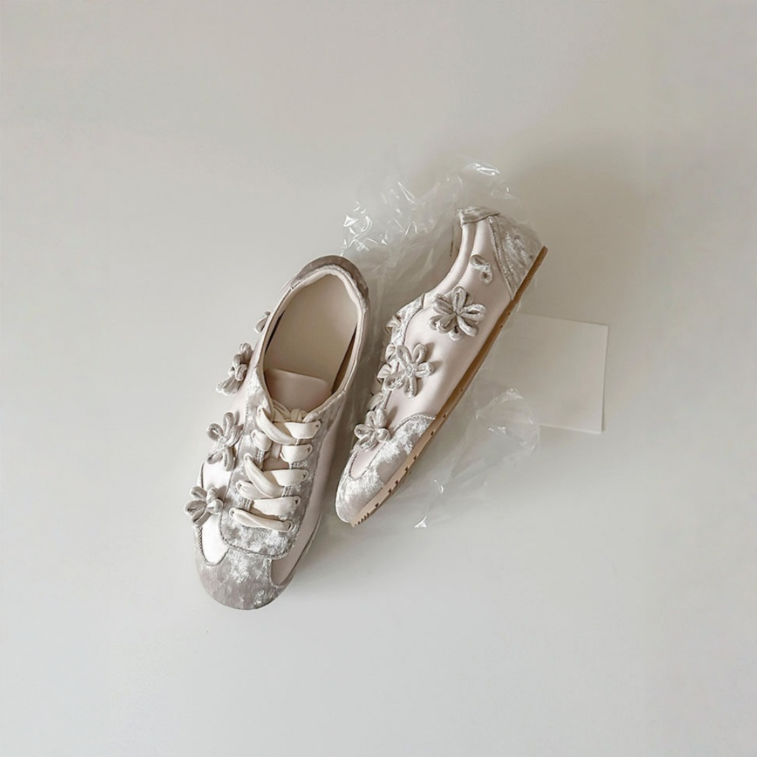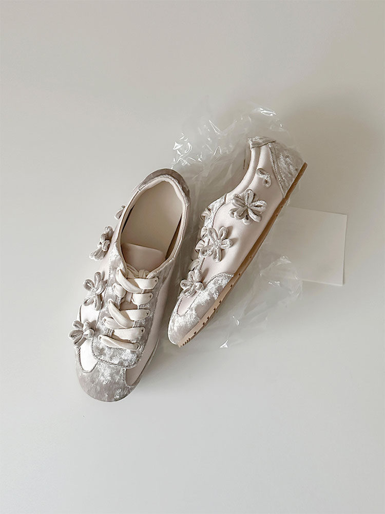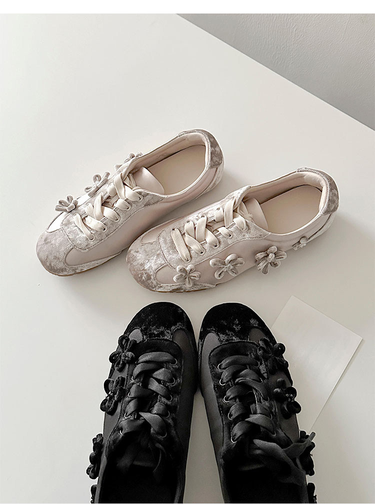 【シューズ】フラワー フラワー レトロ レースアップ ジャーマントレーナー パンプス 【JZシリーズ】