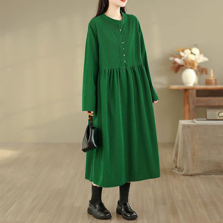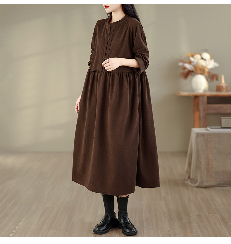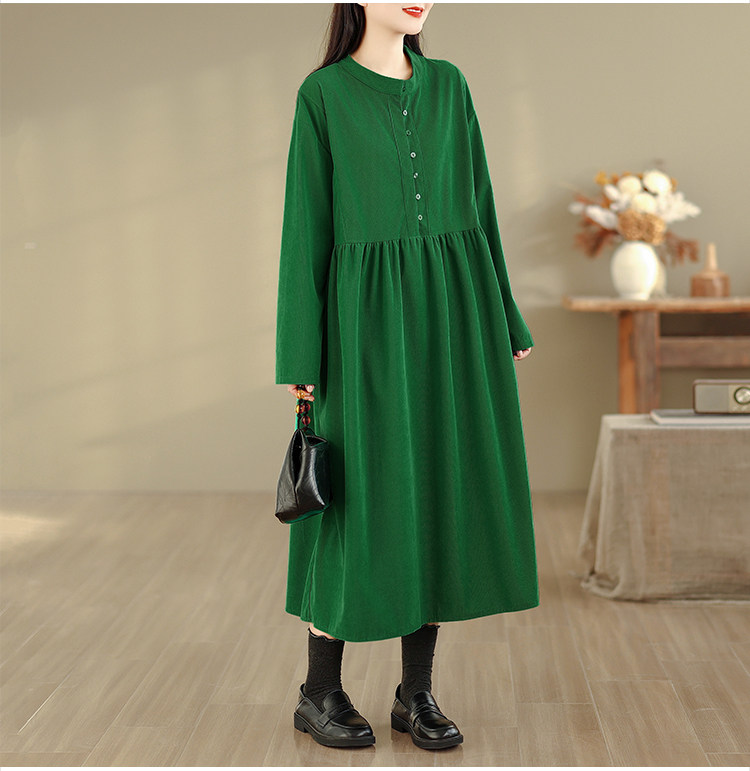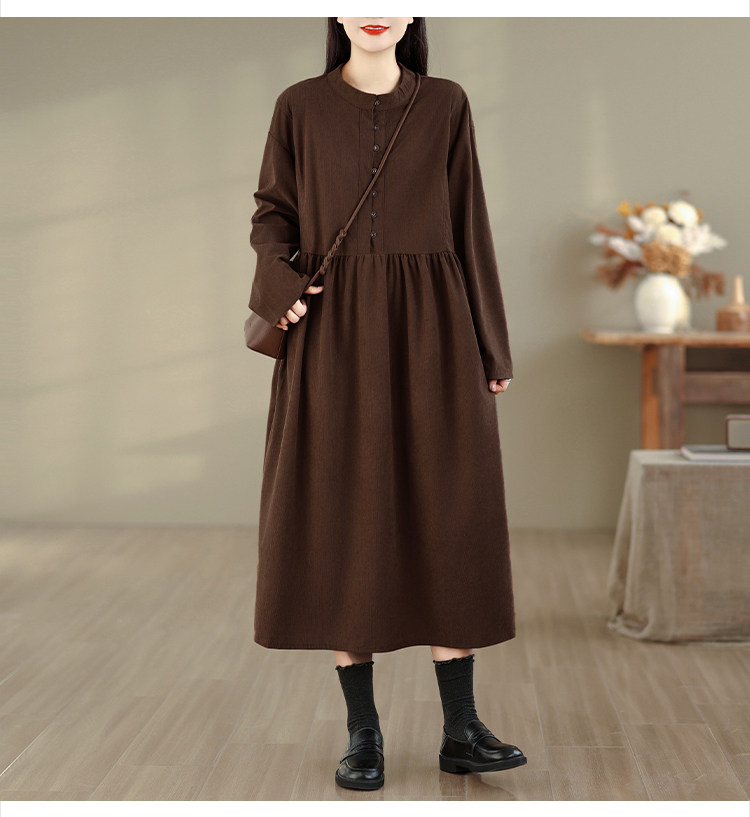 【商品名】【ワンピース】コーデュロイ ハーフボタン ハーフボタン 長袖 ワンピース 【JZシリーズ】