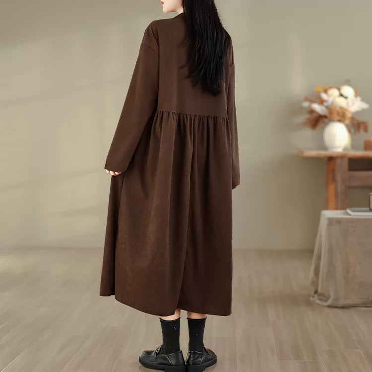 60%OFF⭐️期間限定【ワンピース】厚手 花柄 プリント 丸首 ゆったり 大きいサイズ 体型カバー 文芸風 リゾート 長袖 ロングワンピース【SHシリーズ】