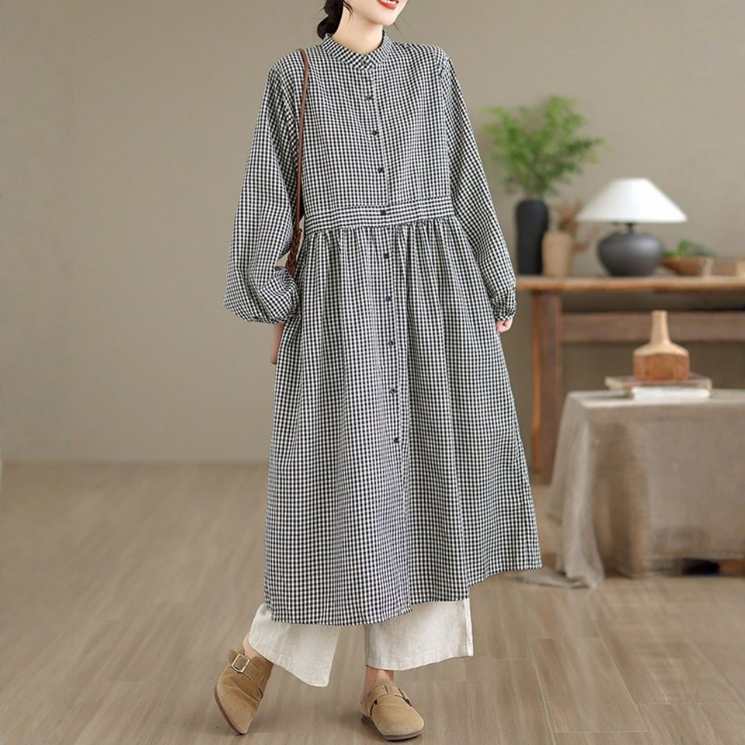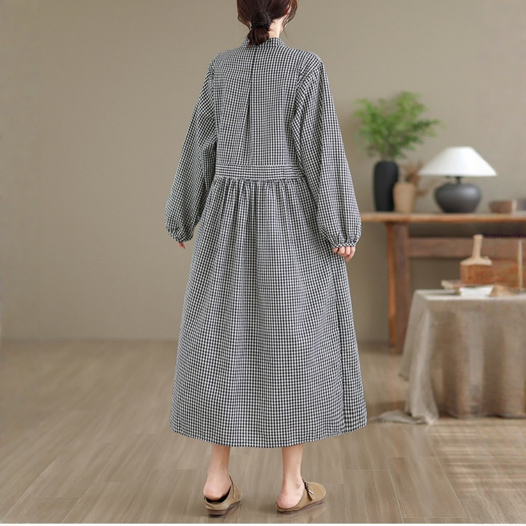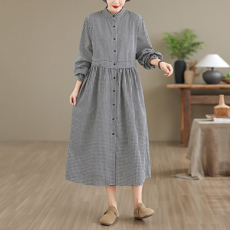 【商品名】【ワンピース】ひざ下丈 ミモレ丈 レトロ ウエストシェイプ 長袖 ワンピース 【JZシリーズ】