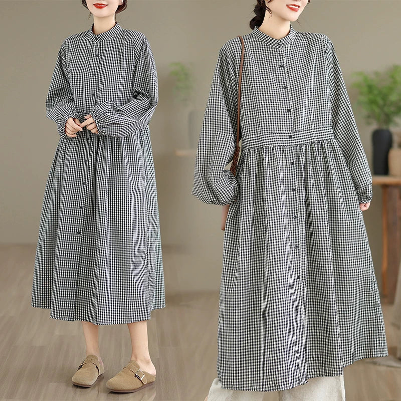 60%OFF⭐️期間限定【ワンピース】新作 文芸復古 ゆったり 長袖 ダブルレイヤー ガーゼ フレア ミディ丈 ロングワンピース【AHシリーズ】
