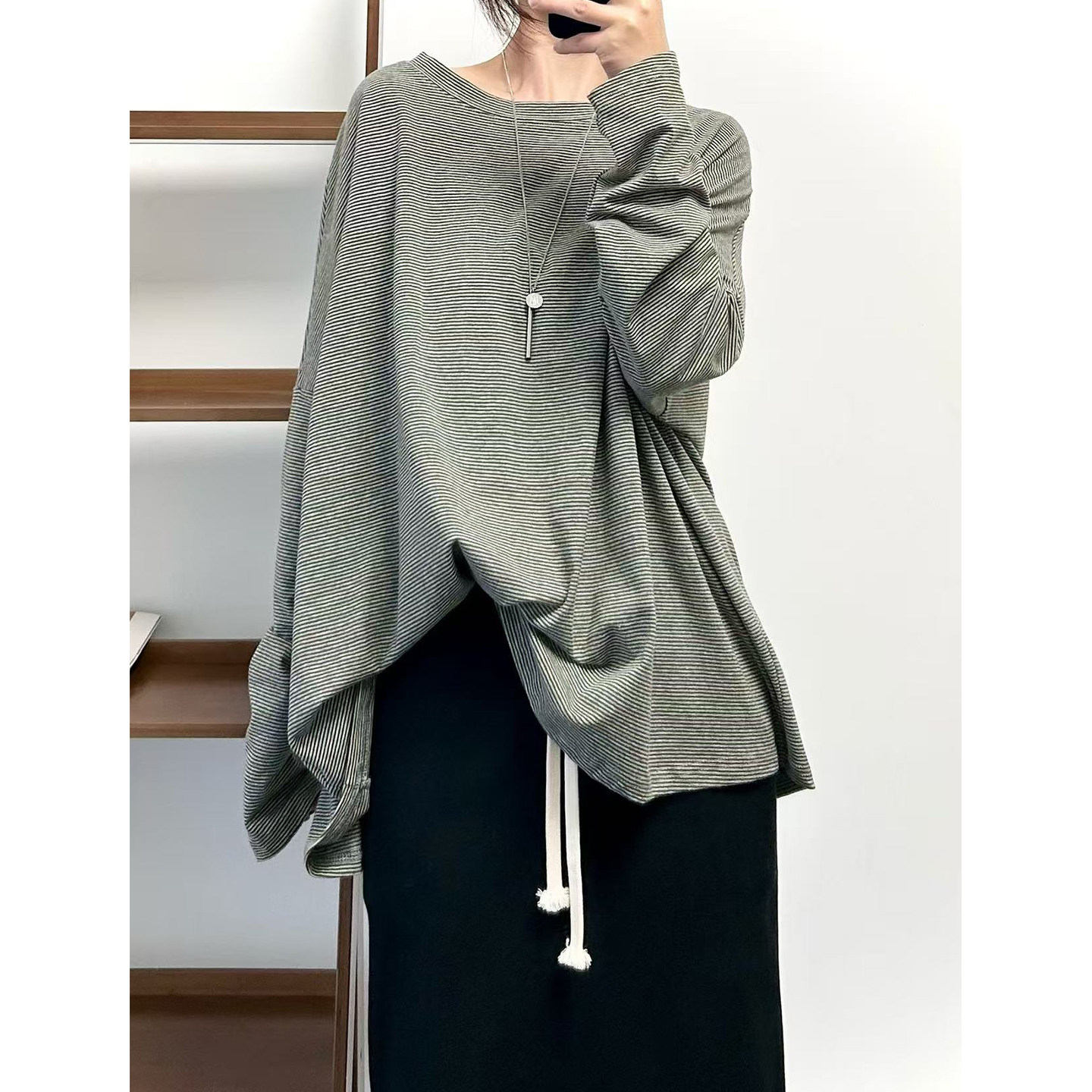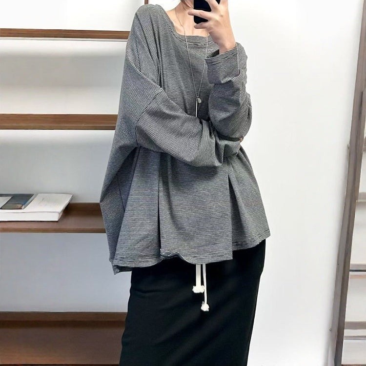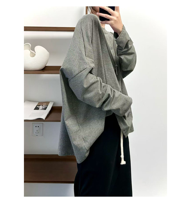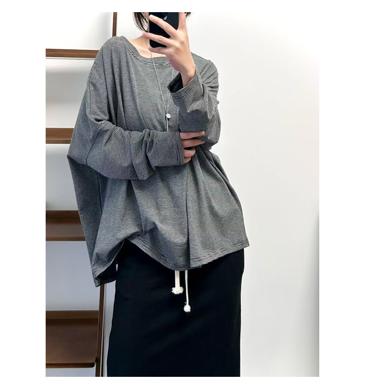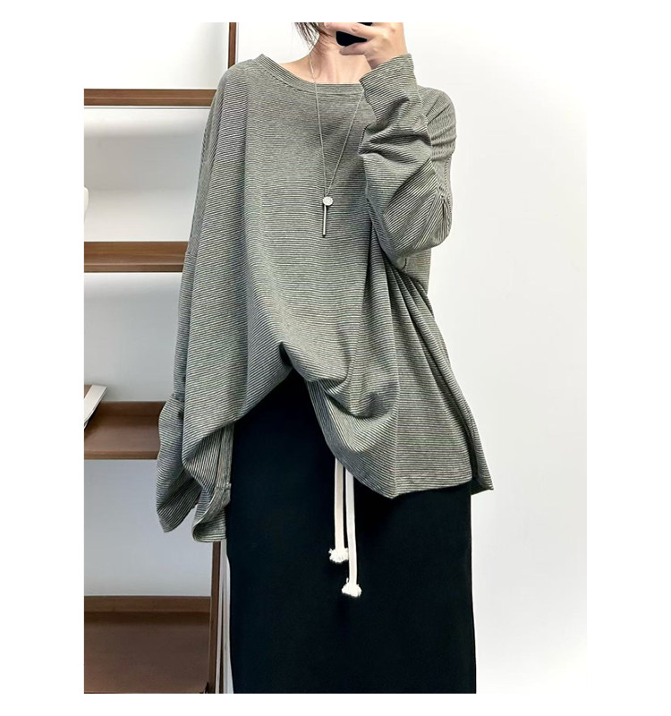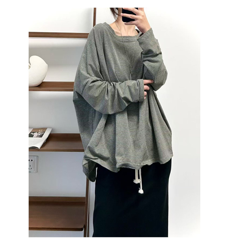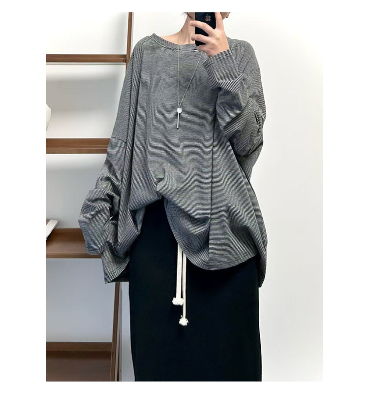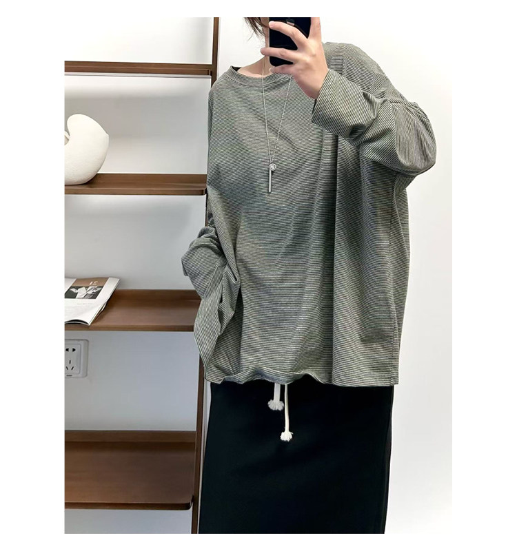 【商品名】【トップス】クラシック 細ボーダー オーバーサイズ 長袖Tシャツ 【FCシリーズ】