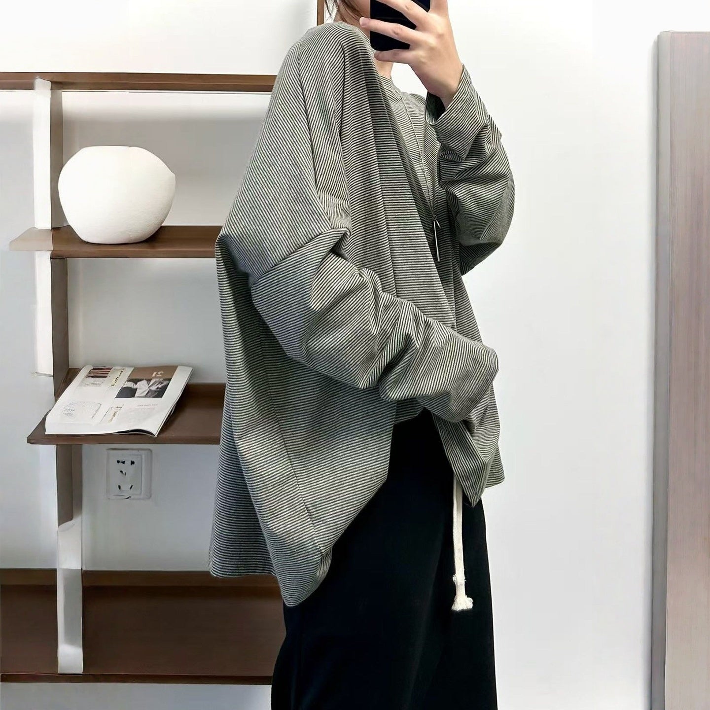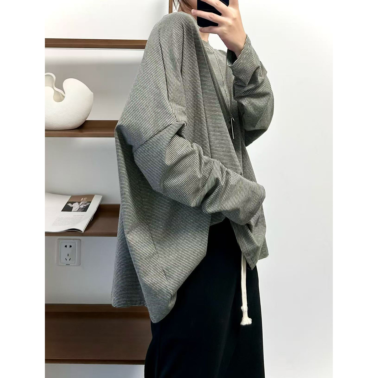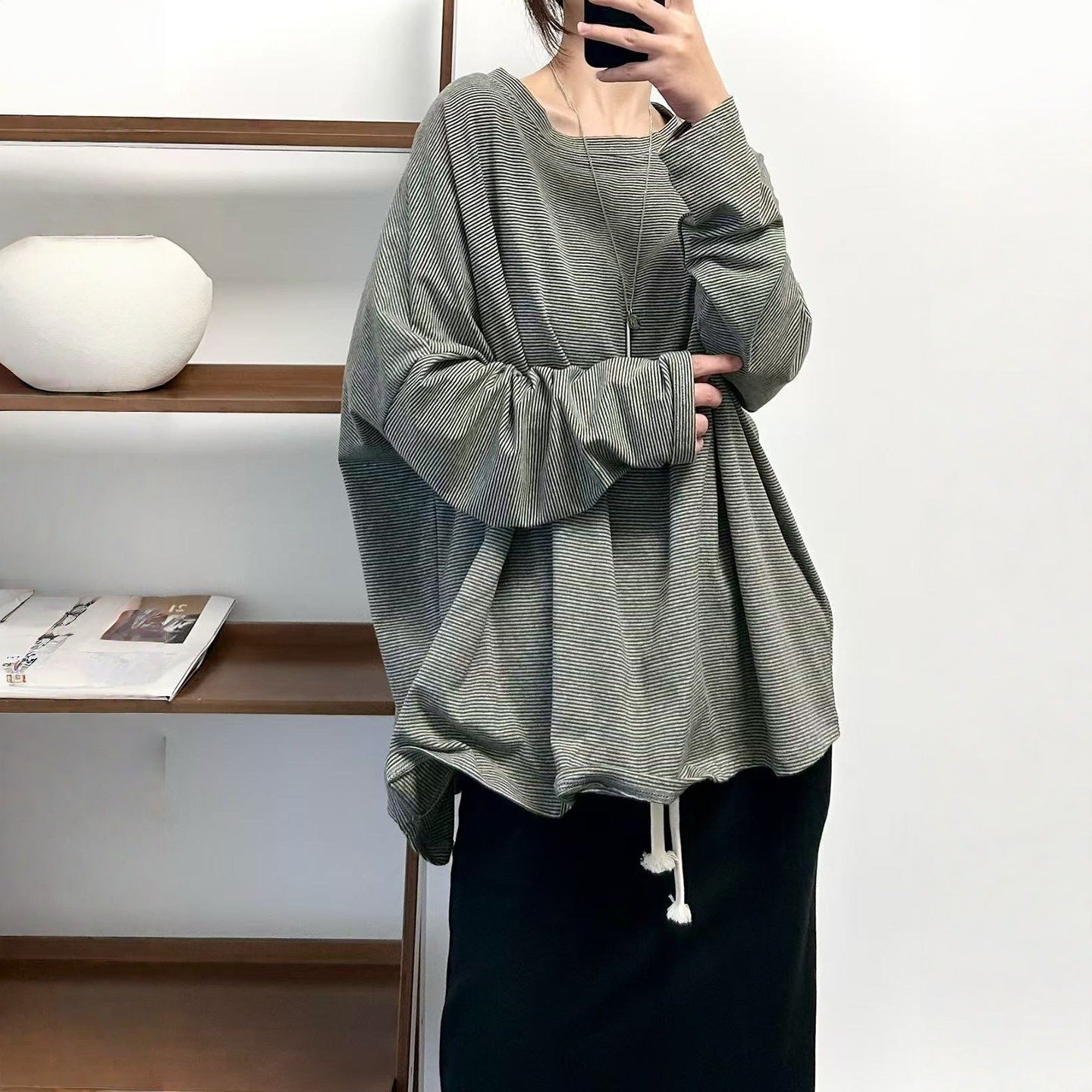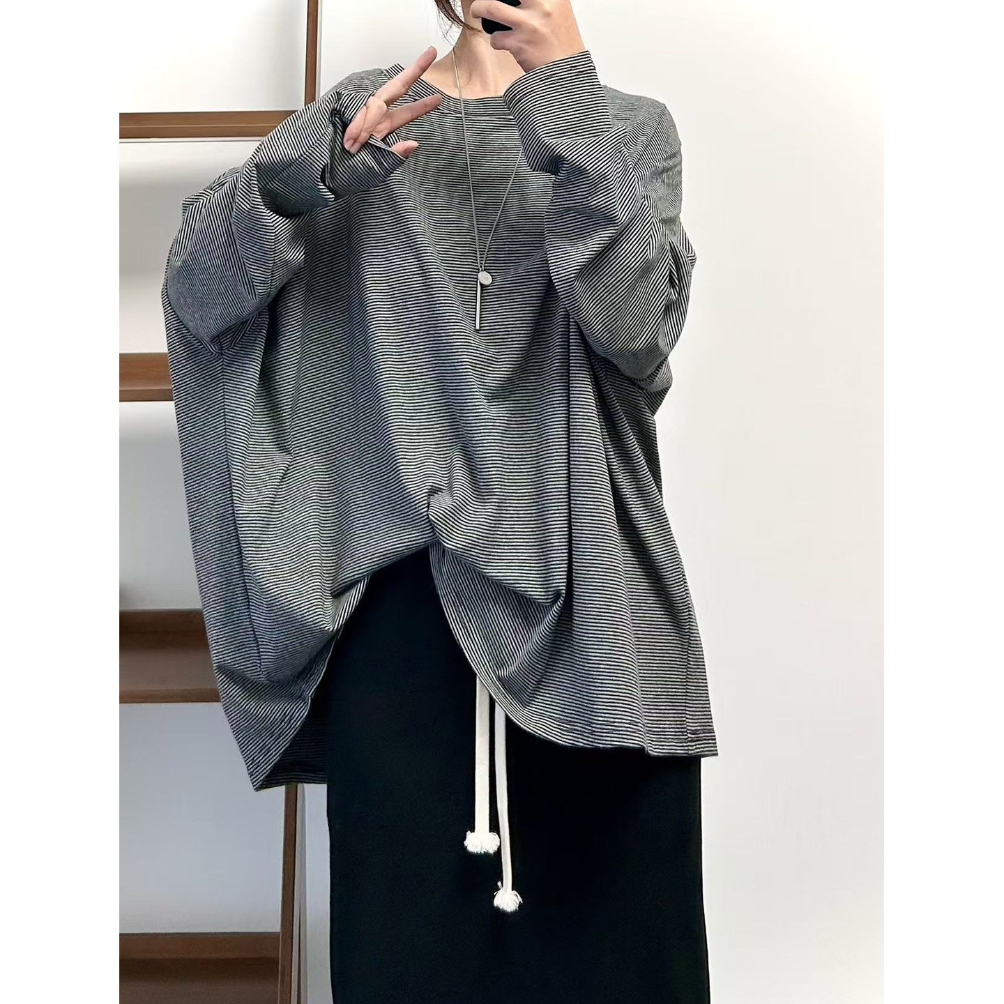 【商品名】【トップス】クラシック 細ボーダー オーバーサイズ 長袖Tシャツ 【FCシリーズ】