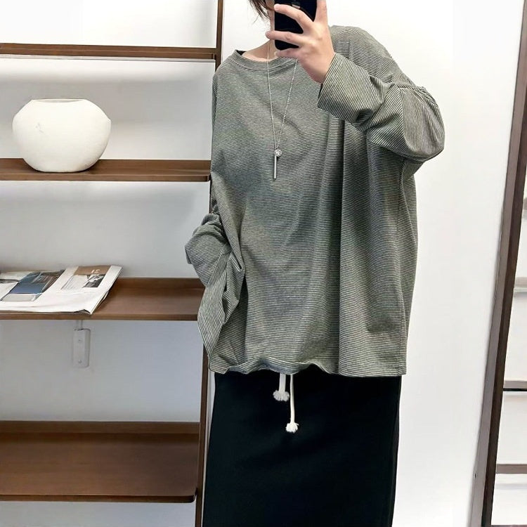 【トップス】クラシック 細ボーダー オーバーサイズ 長袖Tシャツ 【FCシリーズ】