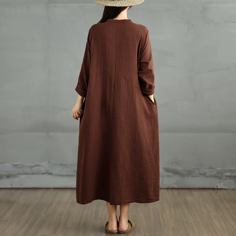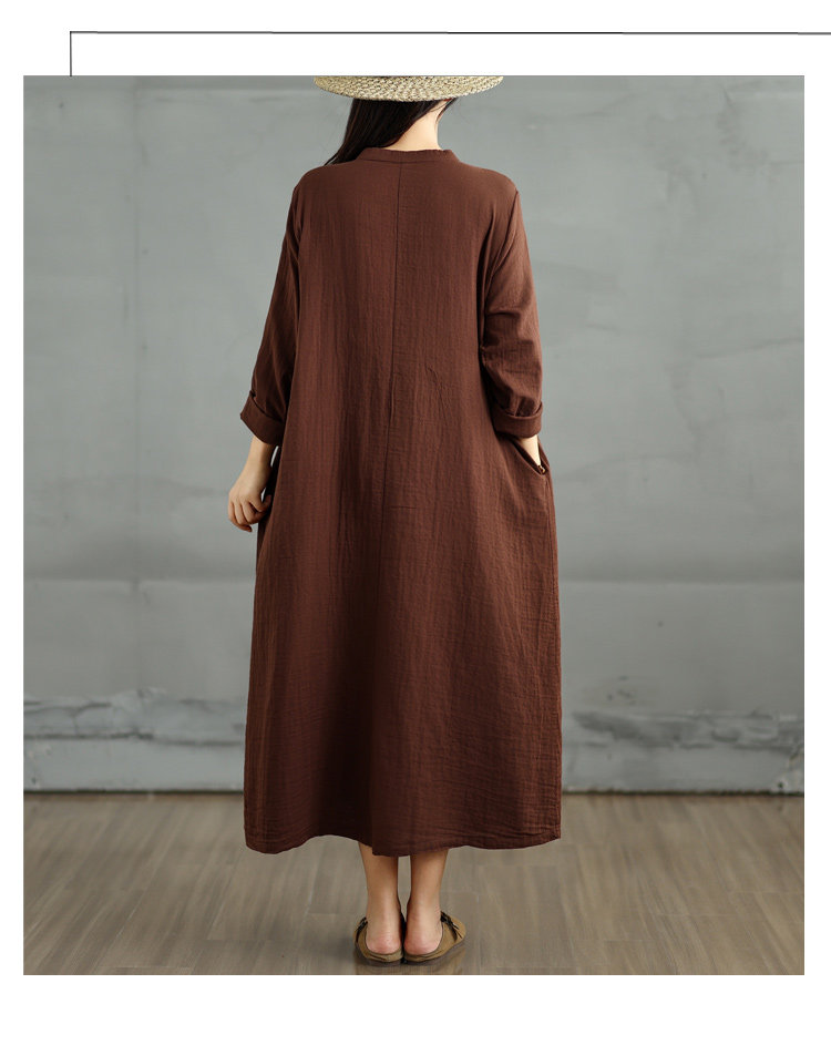 60%OFF⭐️期間限定【ワンピース】厚手 花柄 プリント 丸首 ゆったり 大きいサイズ 体型カバー 文芸風 リゾート 長袖 ロングワンピース【SHシリーズ】