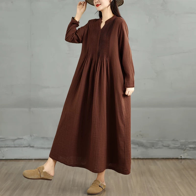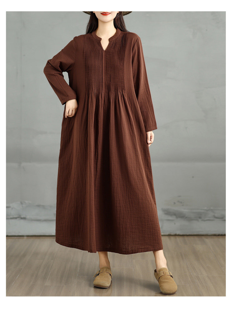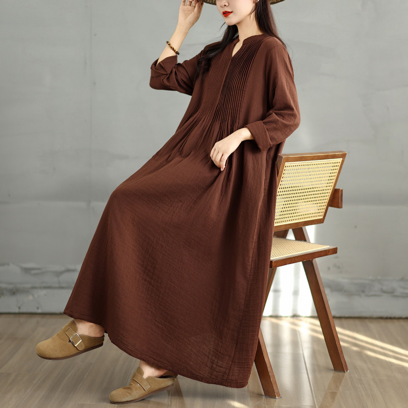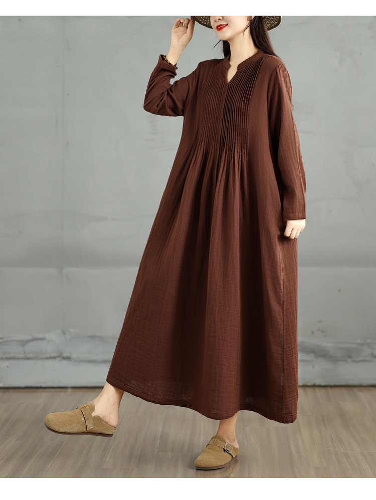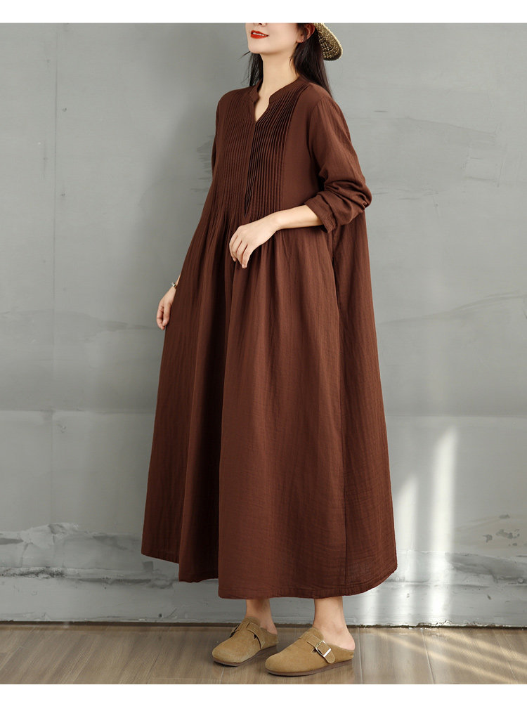 60%OFF⭐️期間限定【ワンピース】新作 文芸復古 ゆったり 長袖 ダブルレイヤー ガーゼ フレア ミディ丈 ロングワンピース【AHシリーズ】