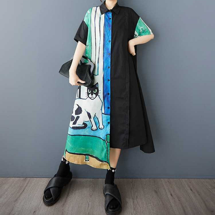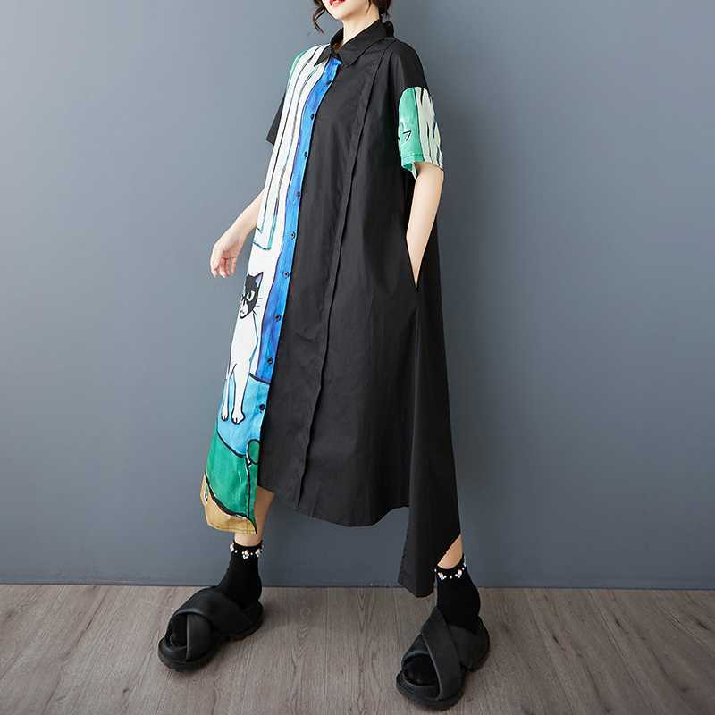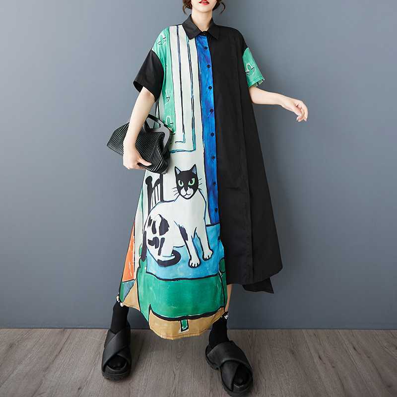 60%OFF⭐️期間限定【ワンピース】🐱猫柄 夏新作 韓国風 ゆったり 大きいサイズ プリント 切替 カジュアル シンプル 可愛い 半袖 ワンピース【SHシリーズ】