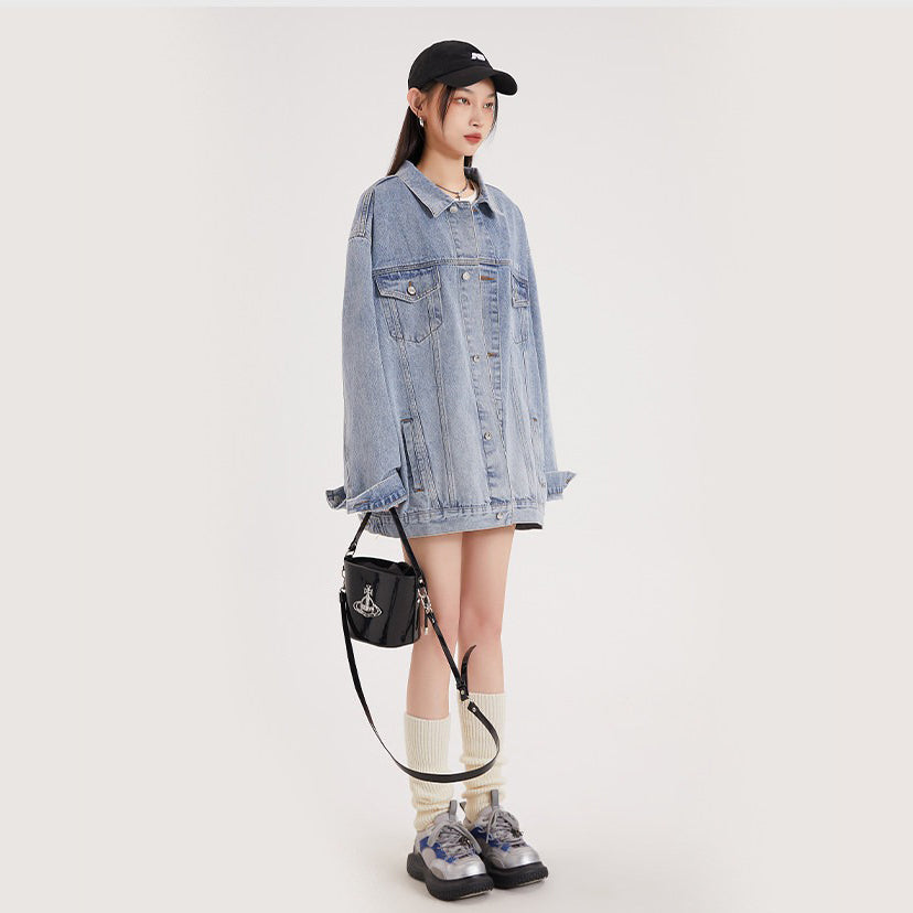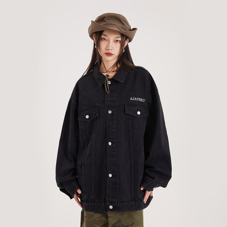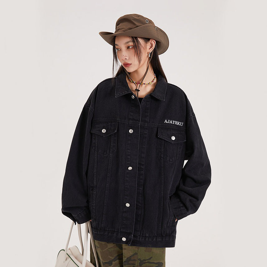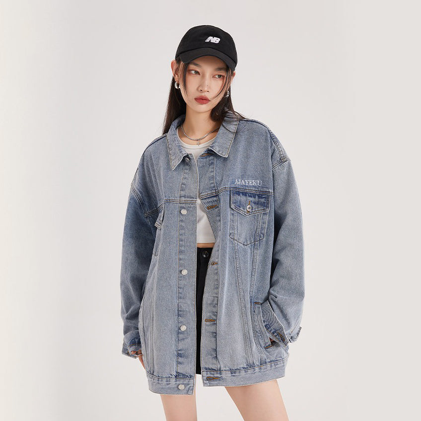 【アウター】アメリカンレトロ ワーク風 デニム 男女兼用 ジャケット レディース ゆったり 英字プリント カジュアル 2026春新作 【FCシリーズ】