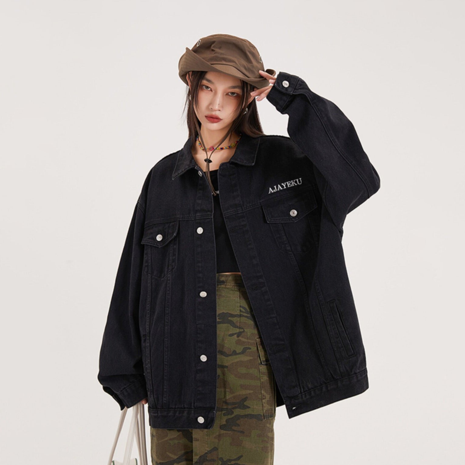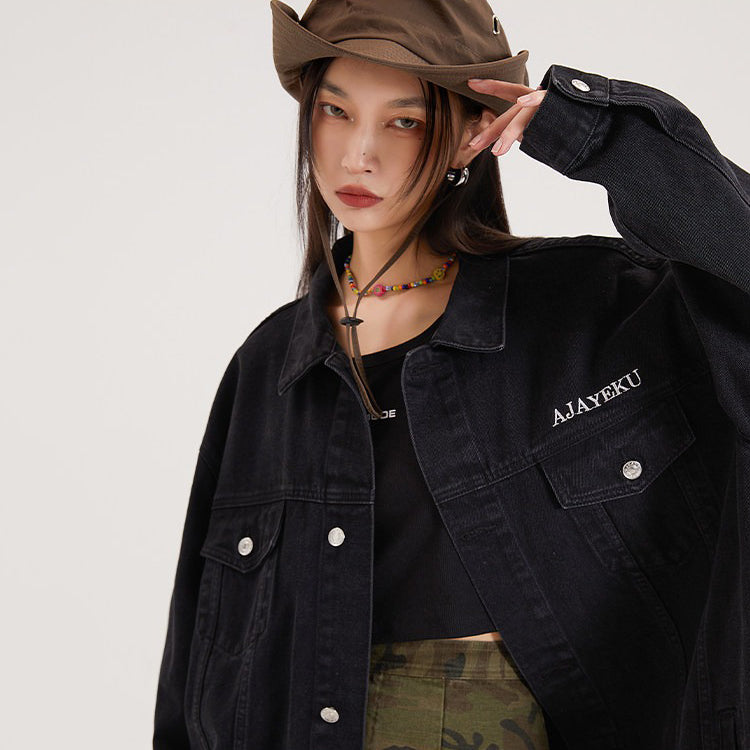 【商品名】【アウター】アメリカンレトロ ワーク風 デニム ジャケット レディース ゆったり 英字プリント カジュアル 2026春新作 【FCシリーズ】