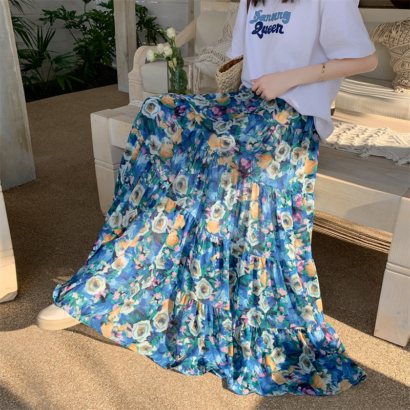 【ボトムス】ボヘミアン風 フレンチ油絵 プリント 大振裾 スカート 【SHシリーズ】