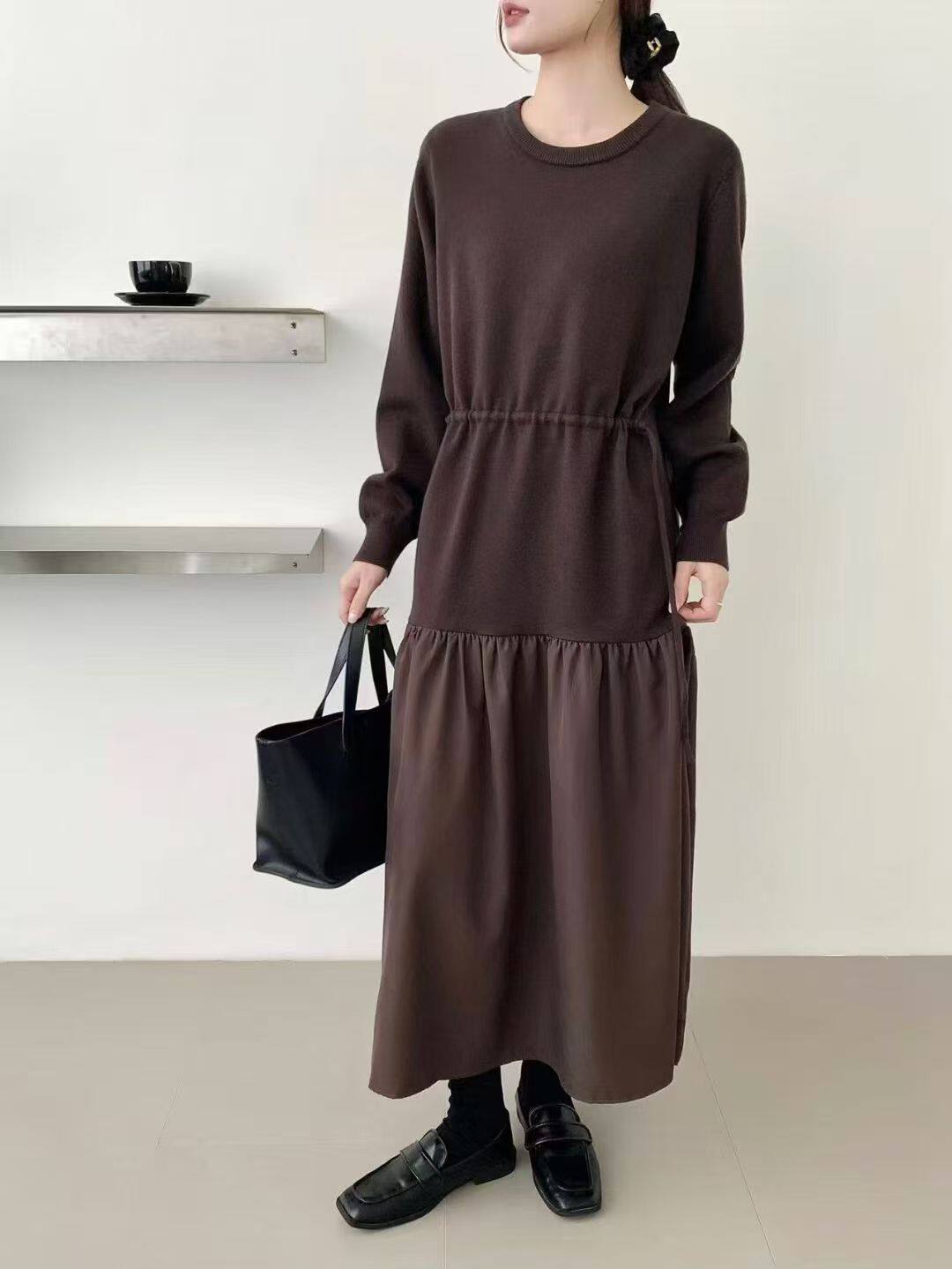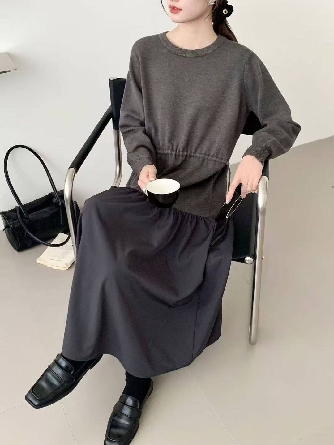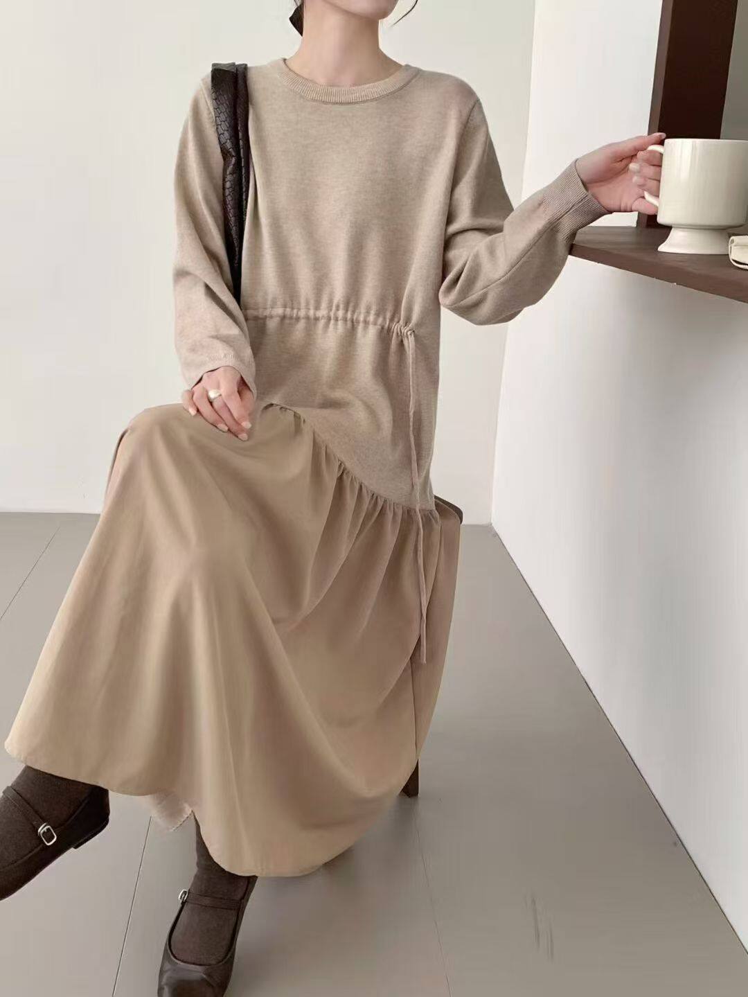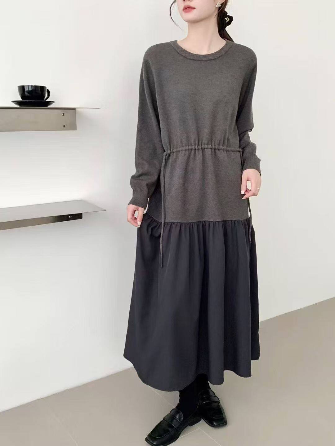 【商品名】【ワンピース】春新作 韓国風 レイヤード風 着回し ニット 長袖ワンピース【JZシリーズ】