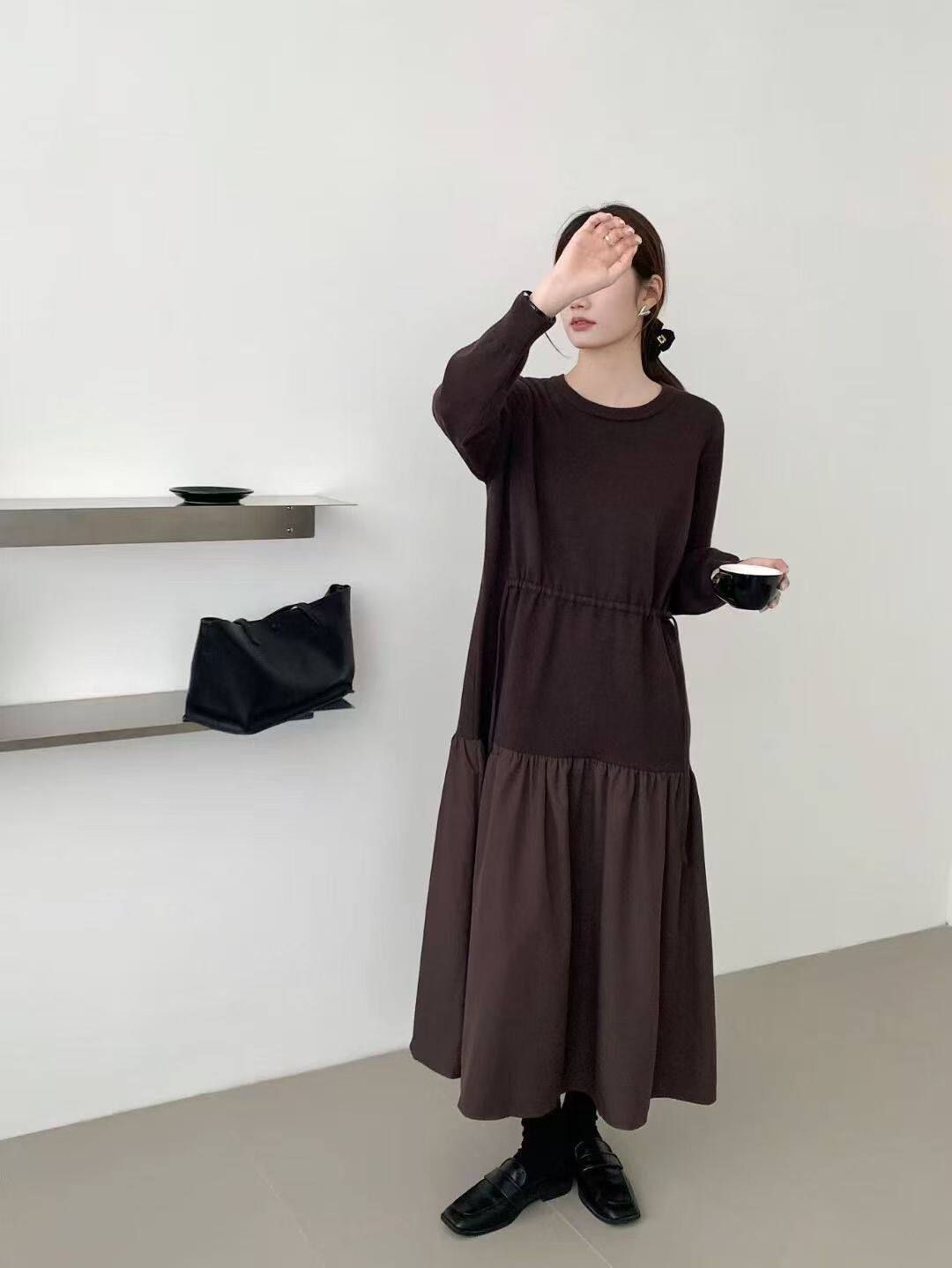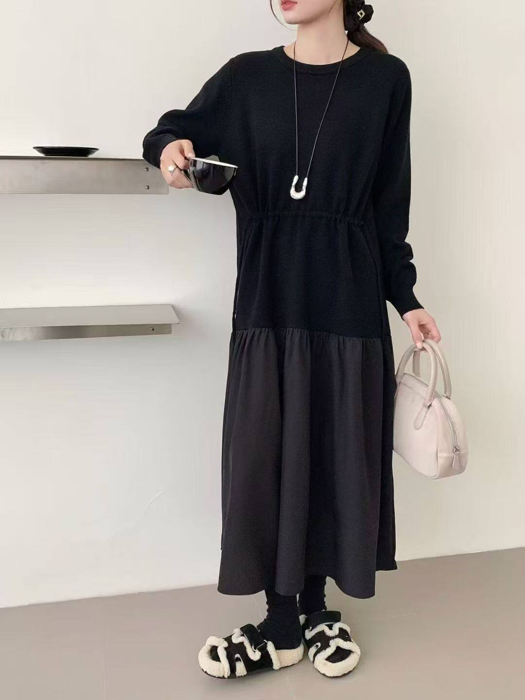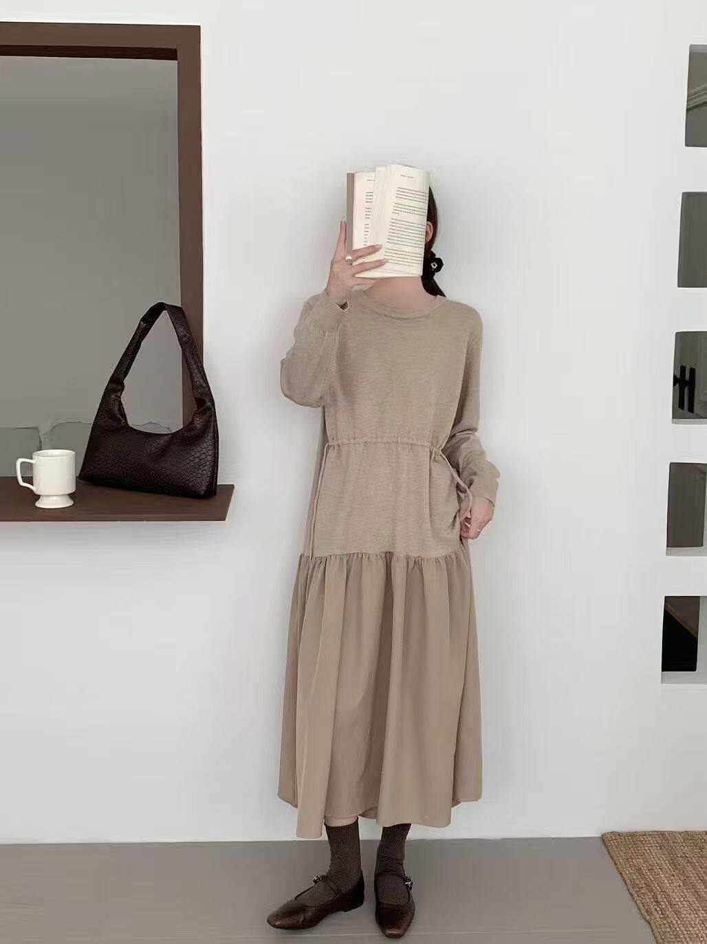 【商品名】【ワンピース】春新作 韓国風 レイヤード風 着回し ニット 長袖ワンピース【JZシリーズ】