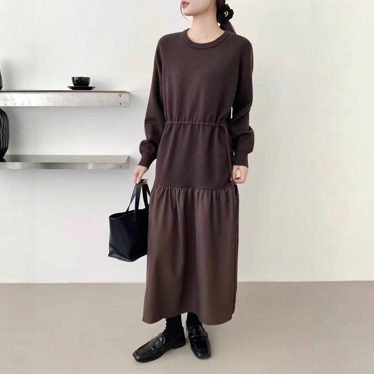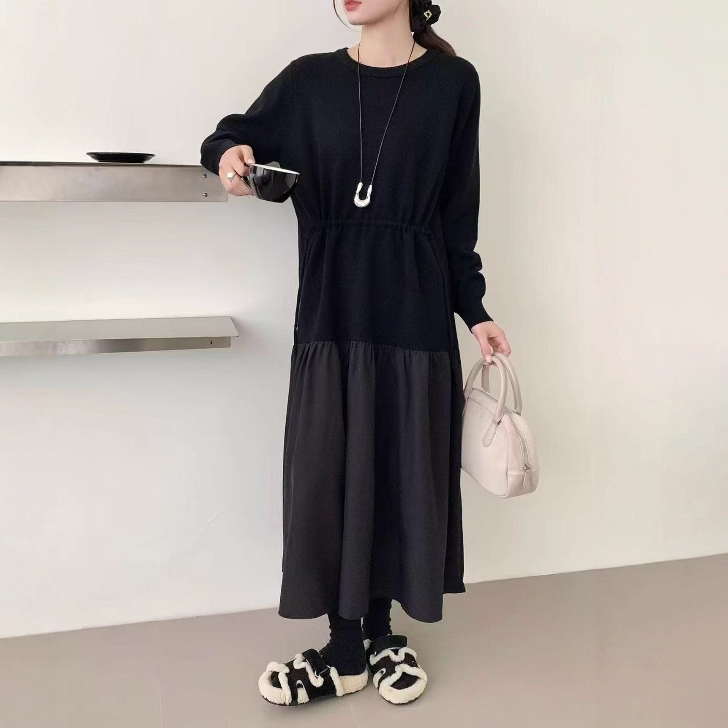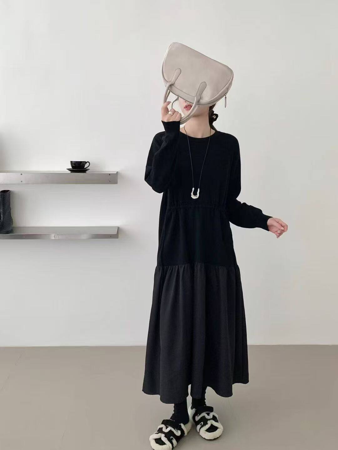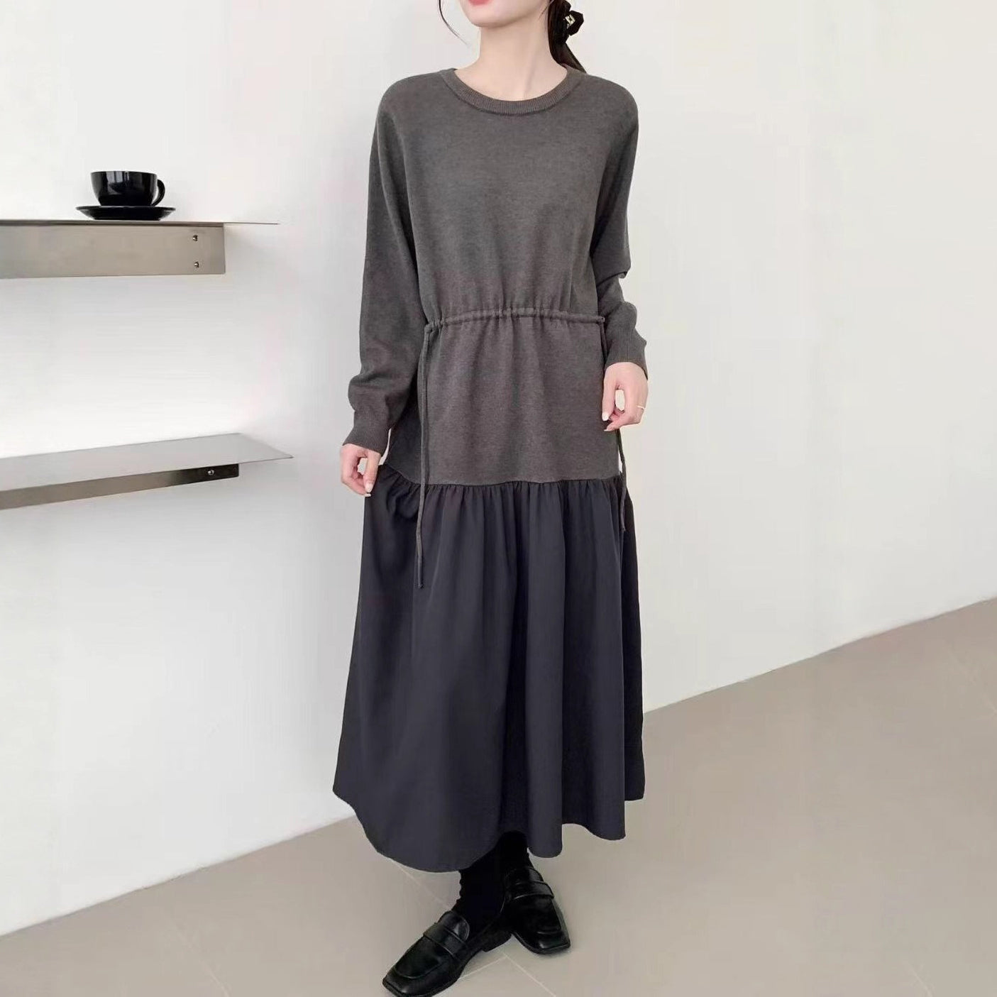 【商品名】【ワンピース】春新作 韓国風 レイヤード風 着回し ニット 長袖ワンピース【JZシリーズ】