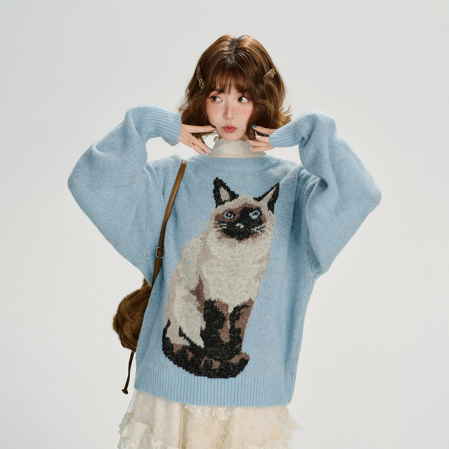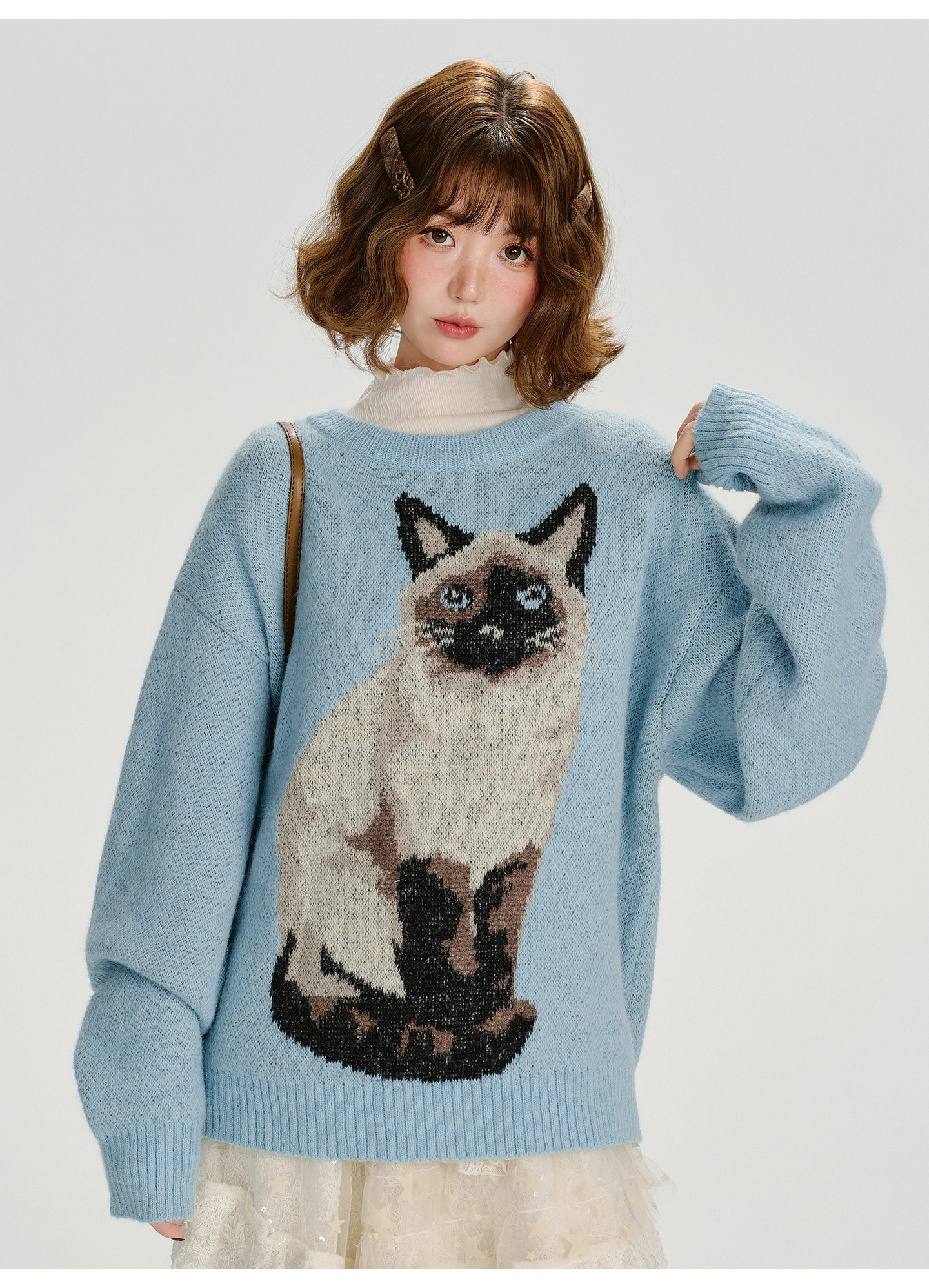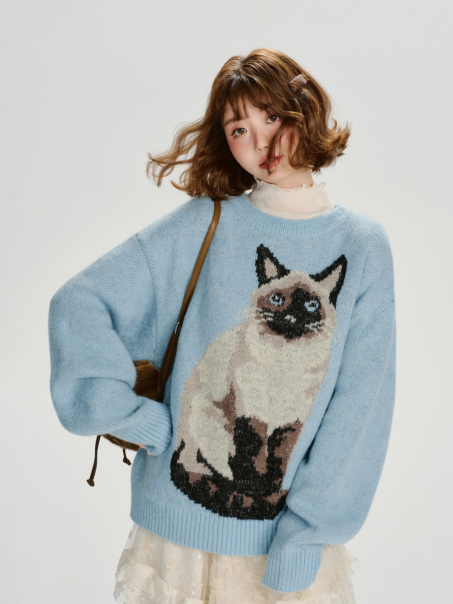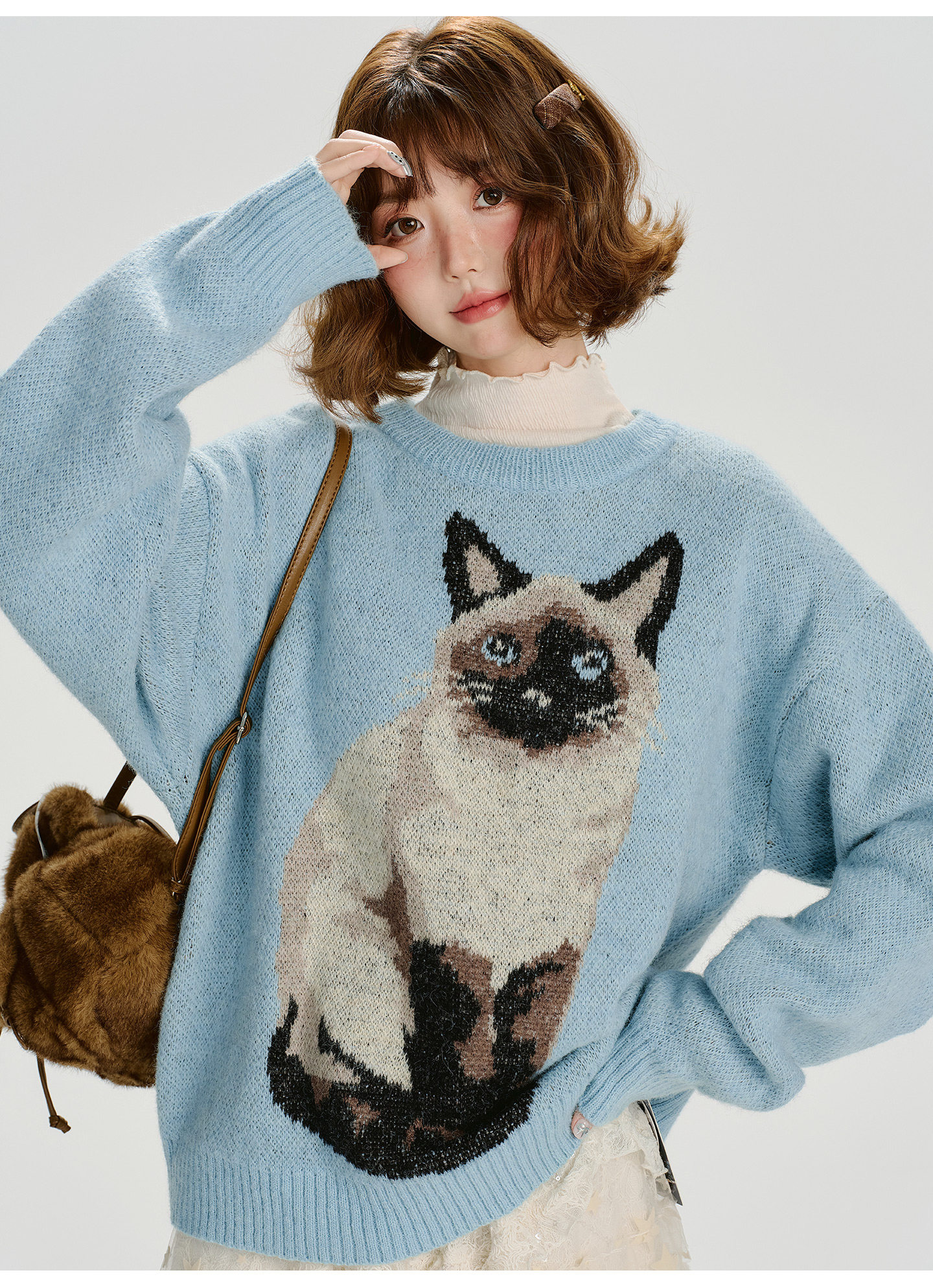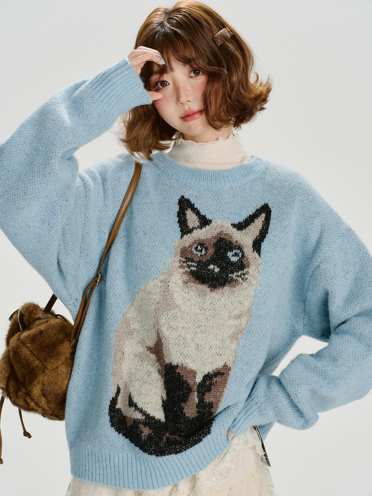 【トップス】ジャガード ラウンドネック 厚手 ゆったり ニット セーター 【FCシリーズ】