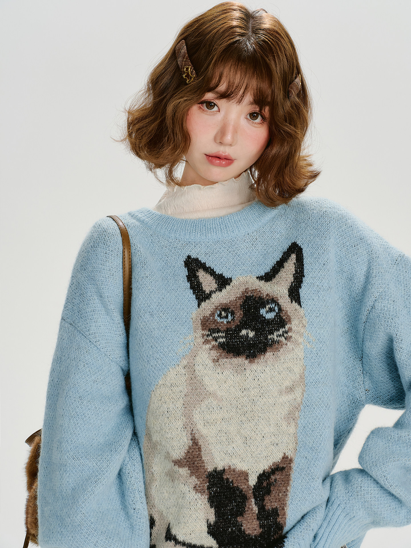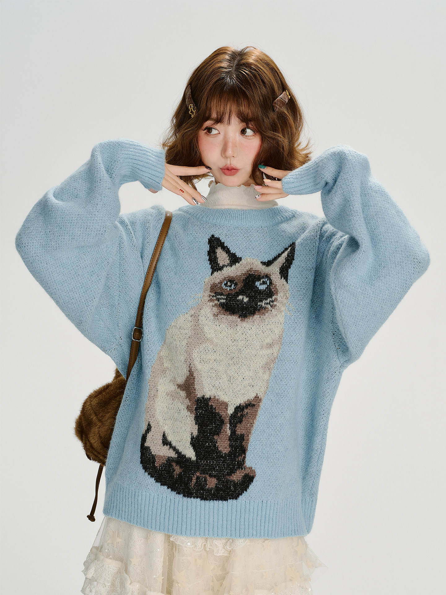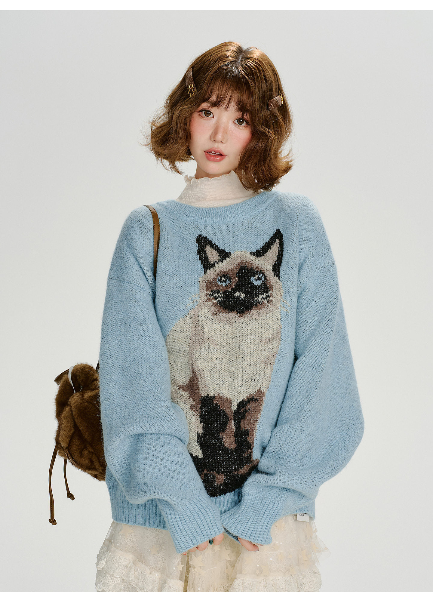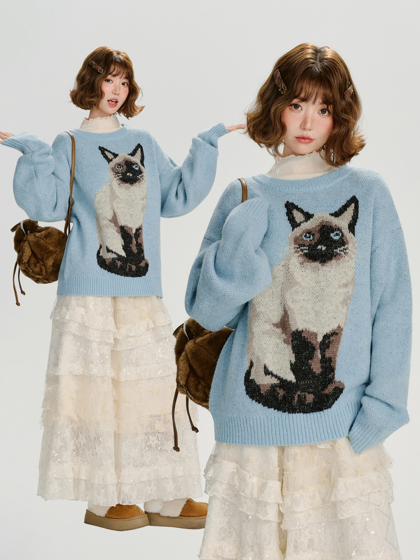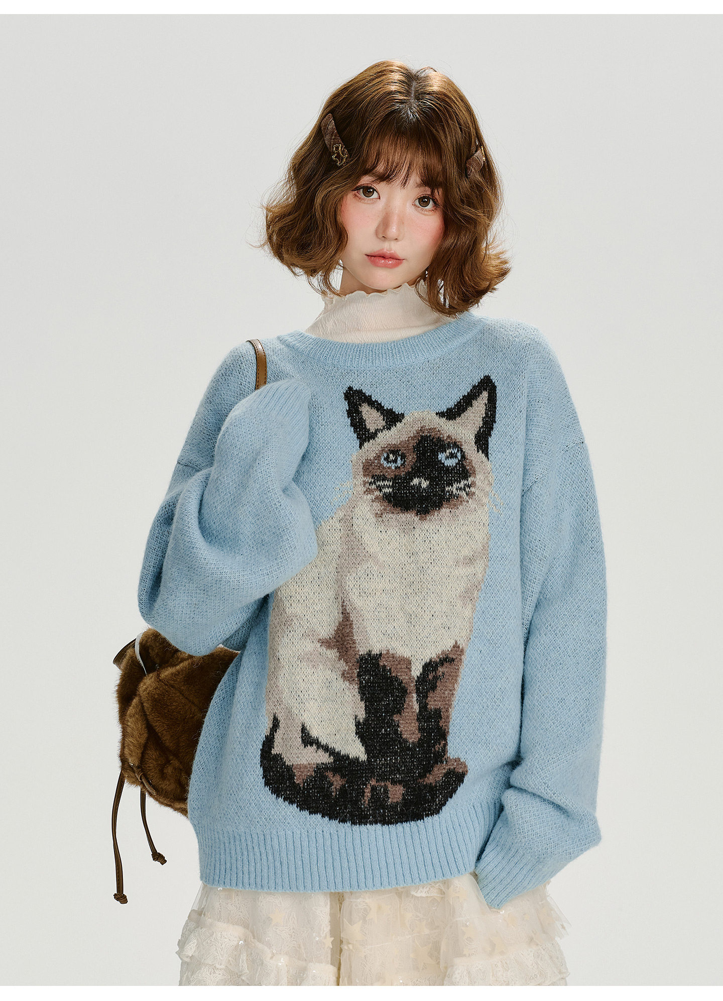 【トップス】ジャガード ラウンドネック 厚手 ゆったり ニット セーター 【FCシリーズ】