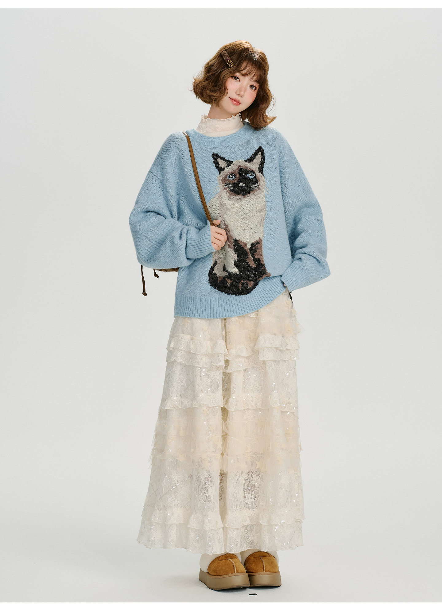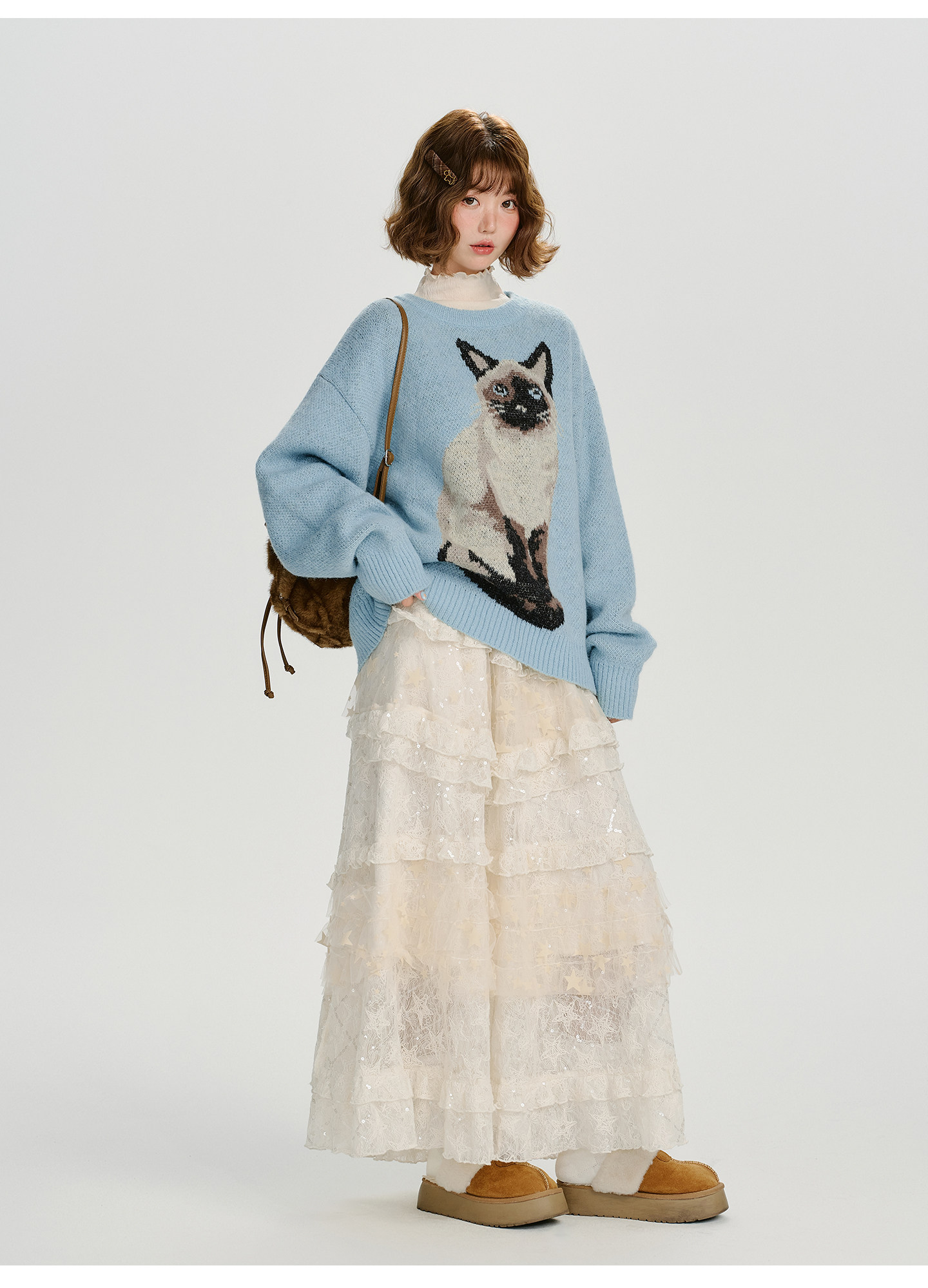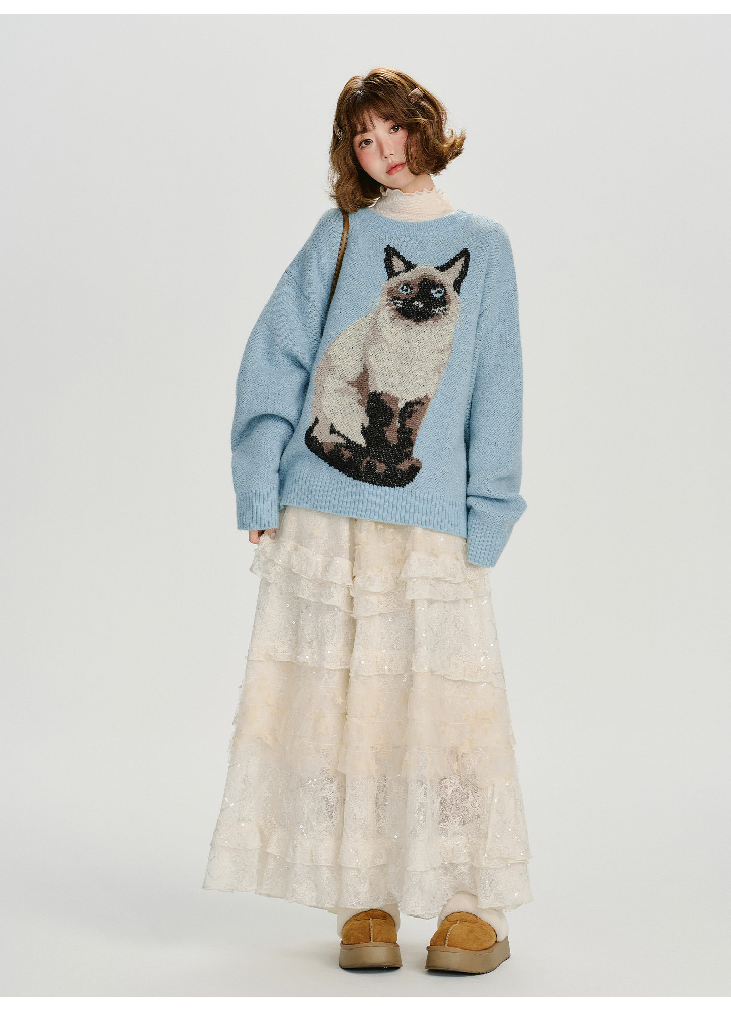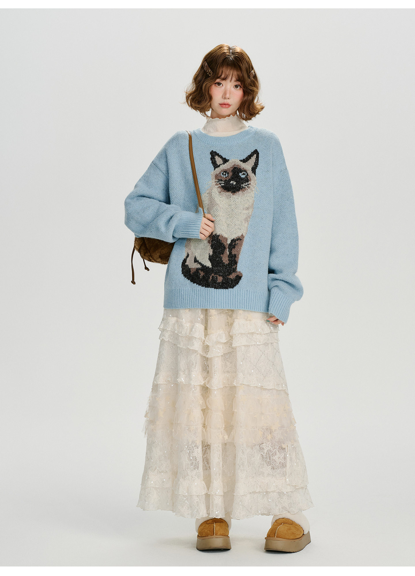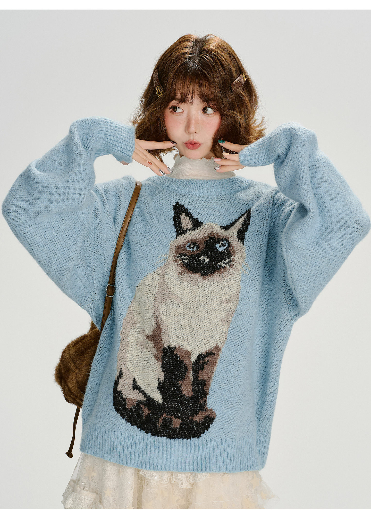 【トップス】ジャガード ラウンドネック 厚手 ゆったり ニット セーター 【FCシリーズ】