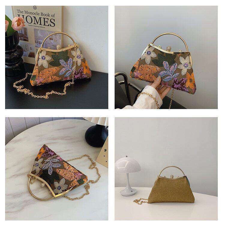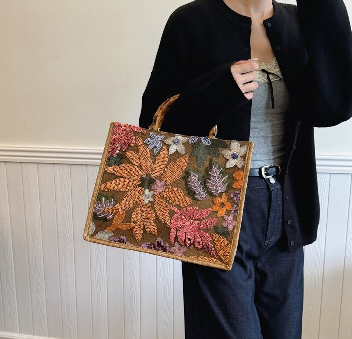 【商品名】【バッグ】フラワー 竹ハンドル 刺繍 スパンコール バケットバッグ 【SHシリーズ】