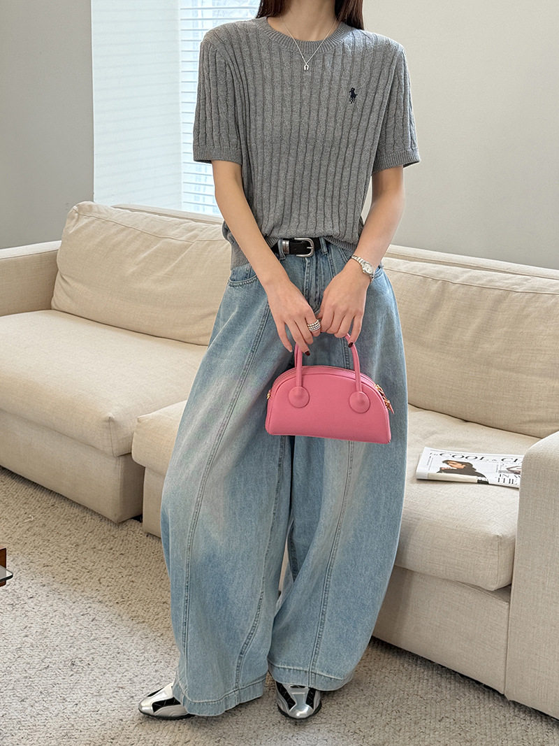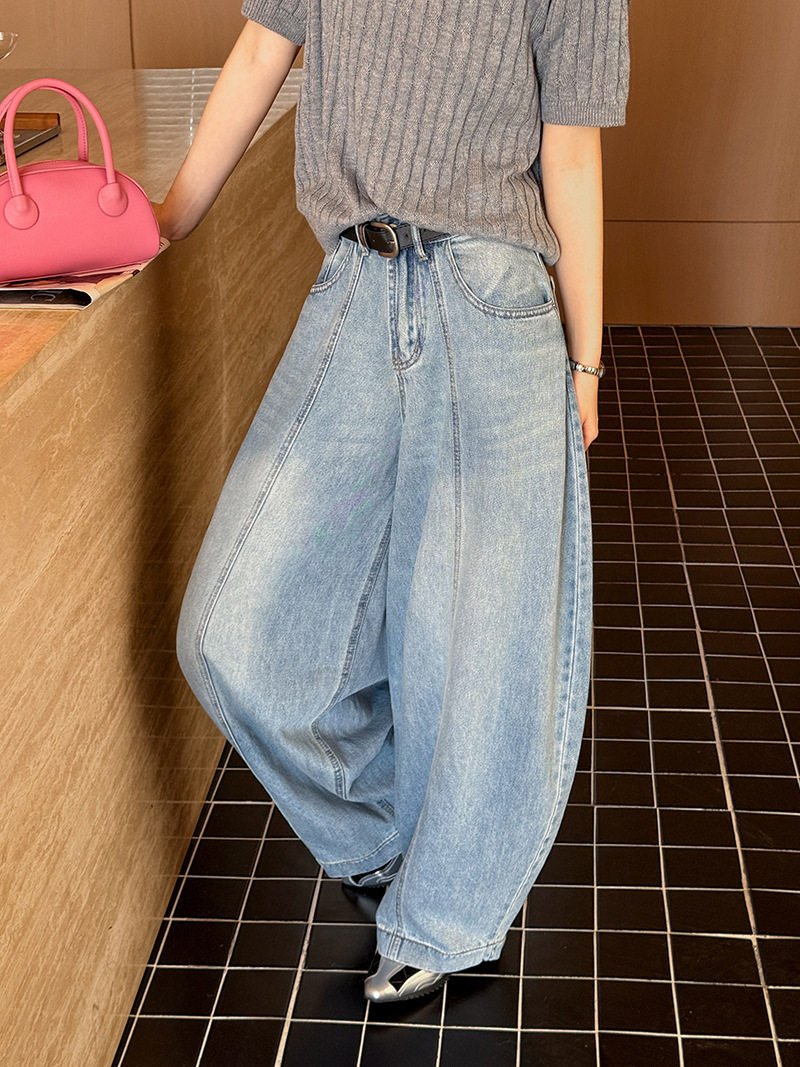 【ボトムス】カーブシルエット ハイウエスト ワイド パンツ 【JZシリーズ】
