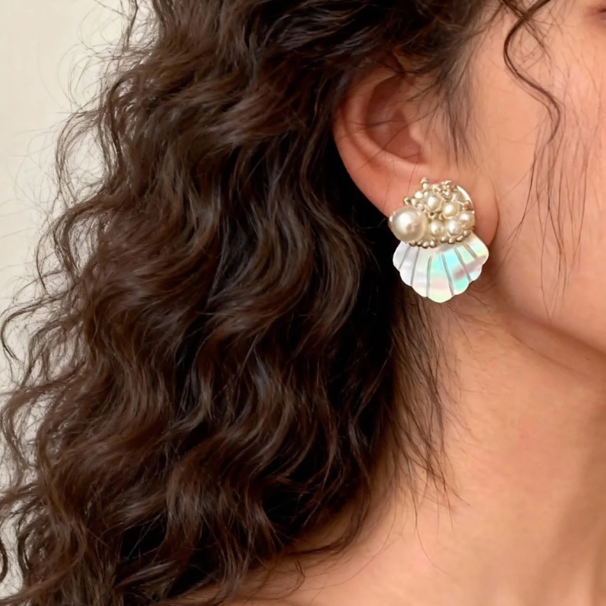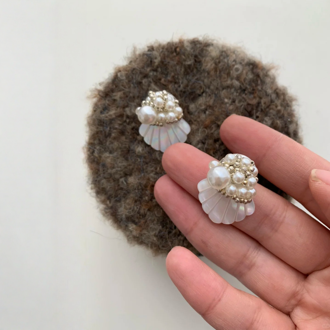 【グッズ】【🌊マーメイドパーティー】天然シェル ハンドメイドビーズ 個性的なギフト 軽奢ヴィンテージ風 ピアス / イヤリング 【JZシリーズ】