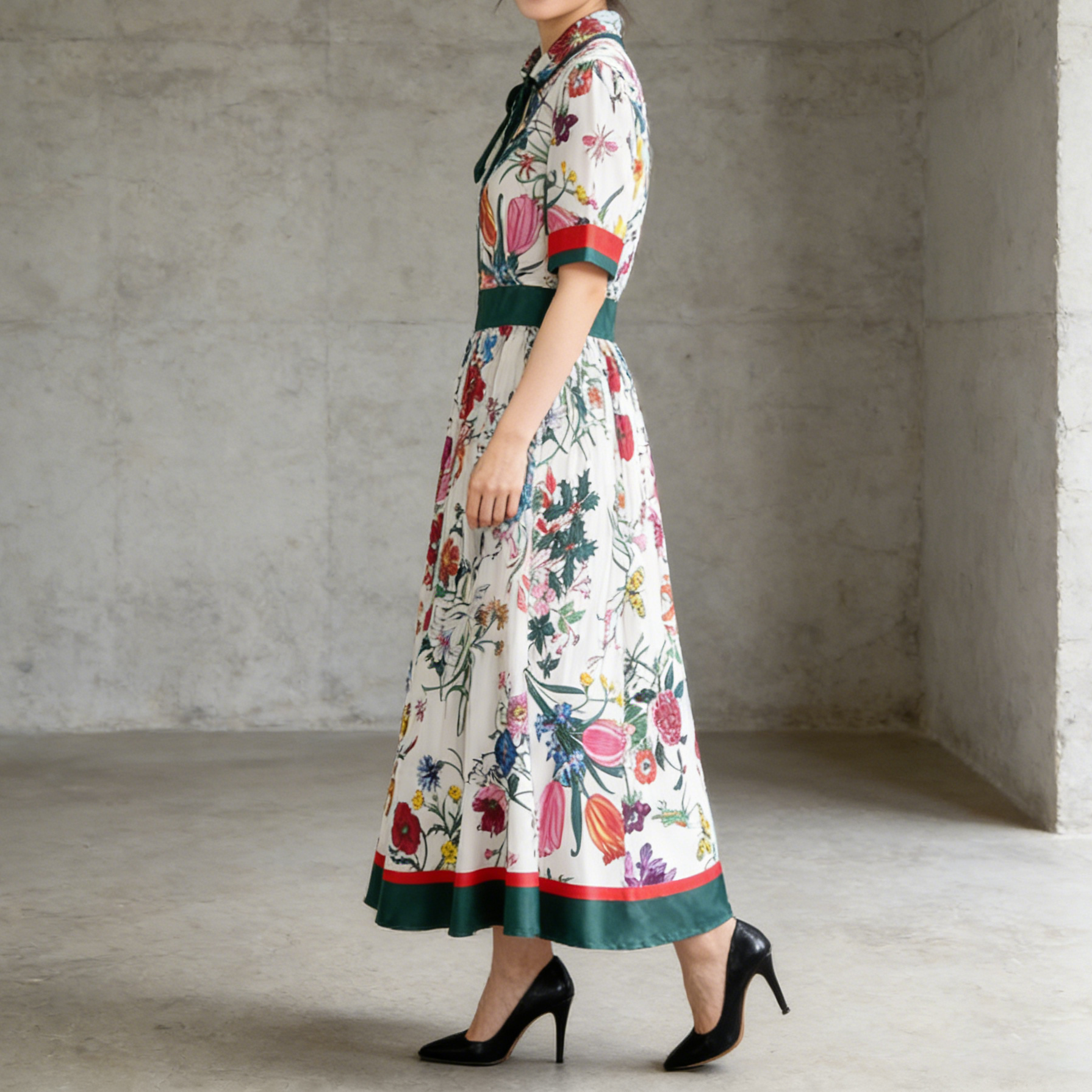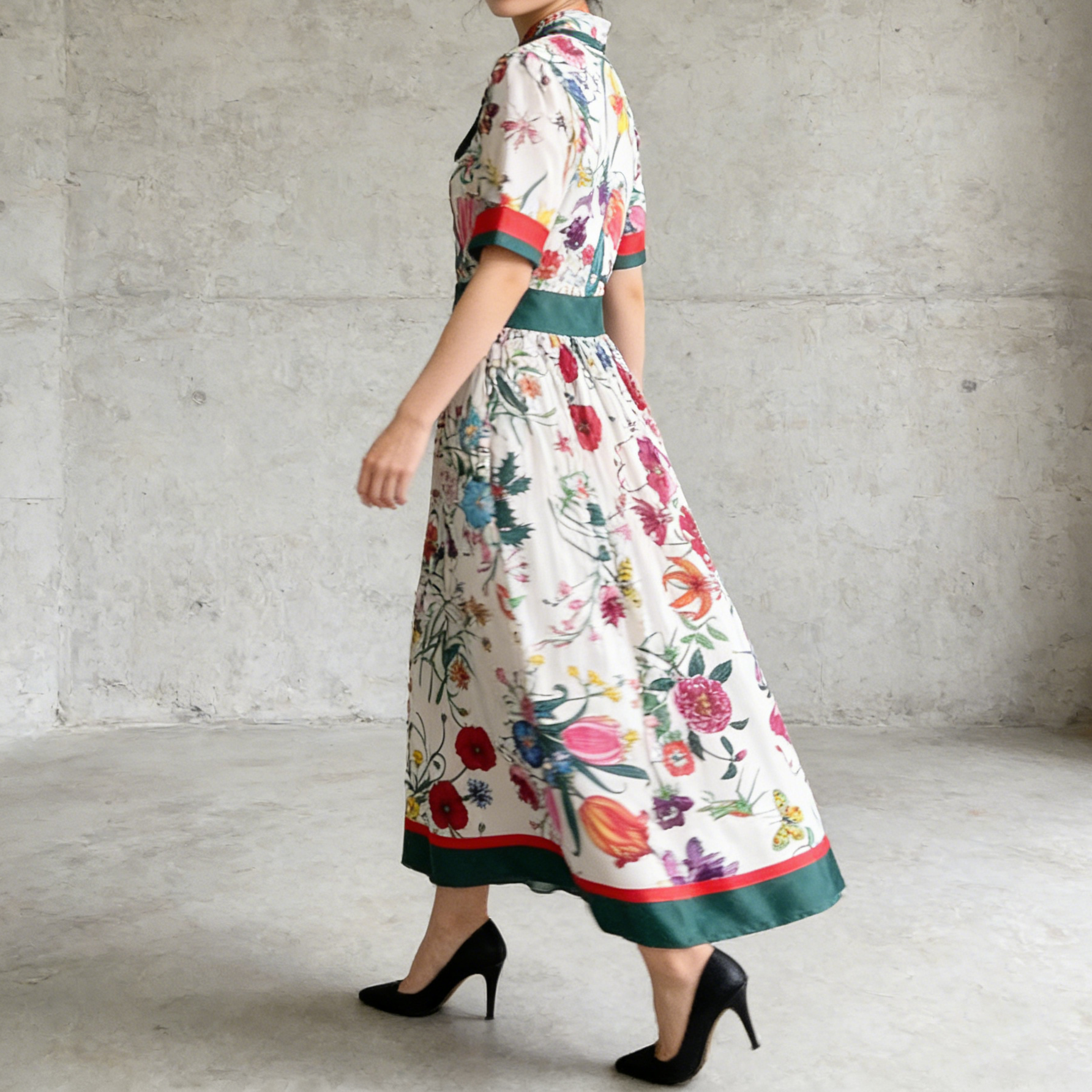 【ワンピース】フレンチ風 配色切替 花柄ワンピース レディース 2026春新作 ゆったりシルエット 体型カバー 着痩せ ロング丈 長袖 ワンピース【SHシリーズ】