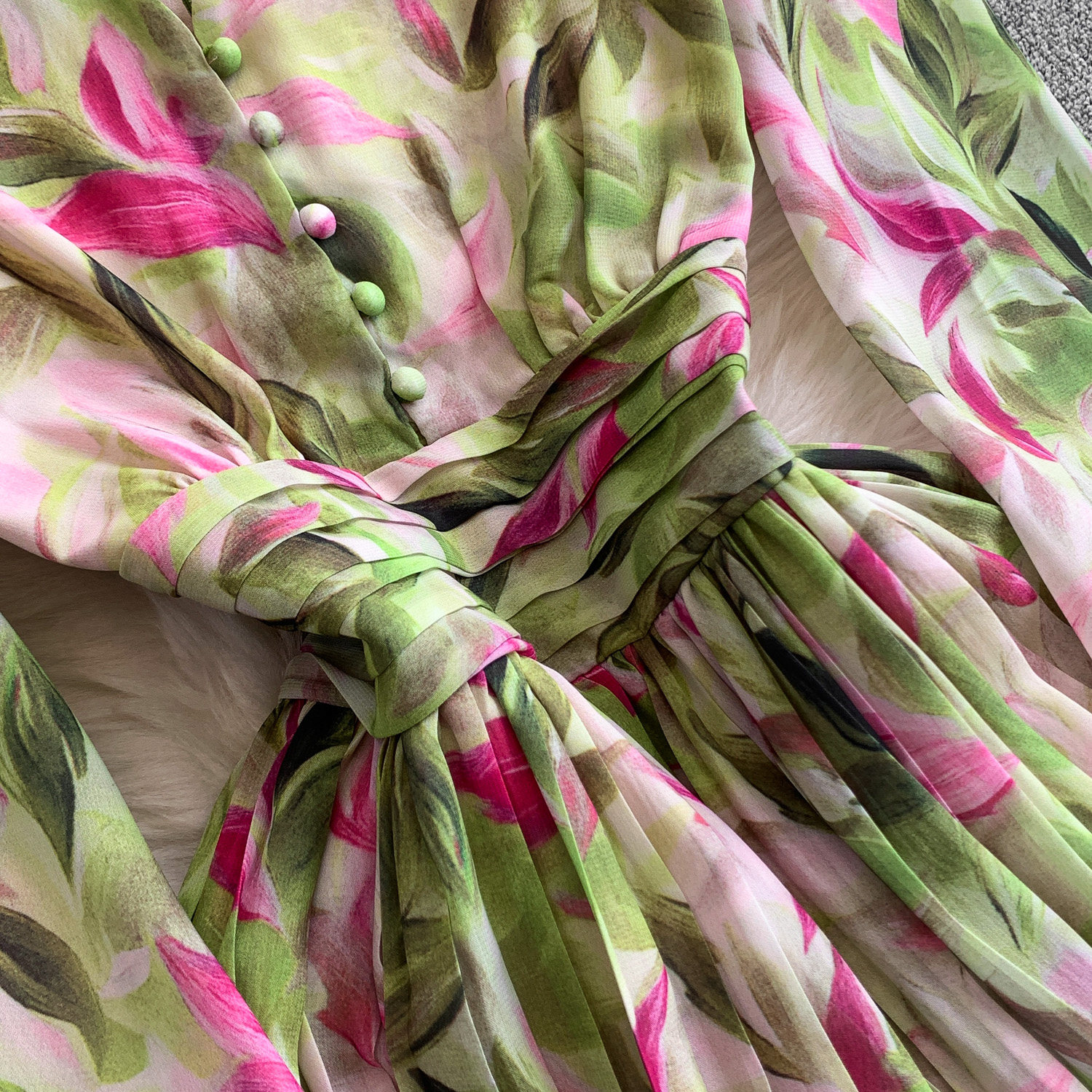 期間限定⭐️60%OFF 🔥月間1,500点突破の人気商品🔥 【ワンピース】レディライク シングルボタン ベルト付き フレア 花柄 長袖 ワンピース【SHシリーズ】