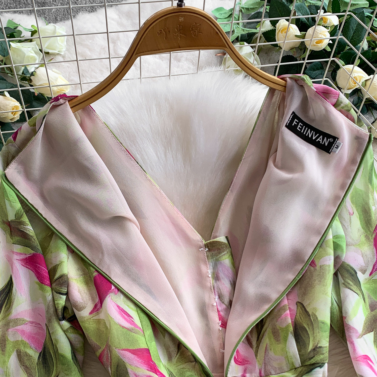 【ワンピース】ヴィンテージ風 フリルカラー 花柄 長袖ワンピース 2026春新作 小柄向け ロング丈【SHシリーズ】