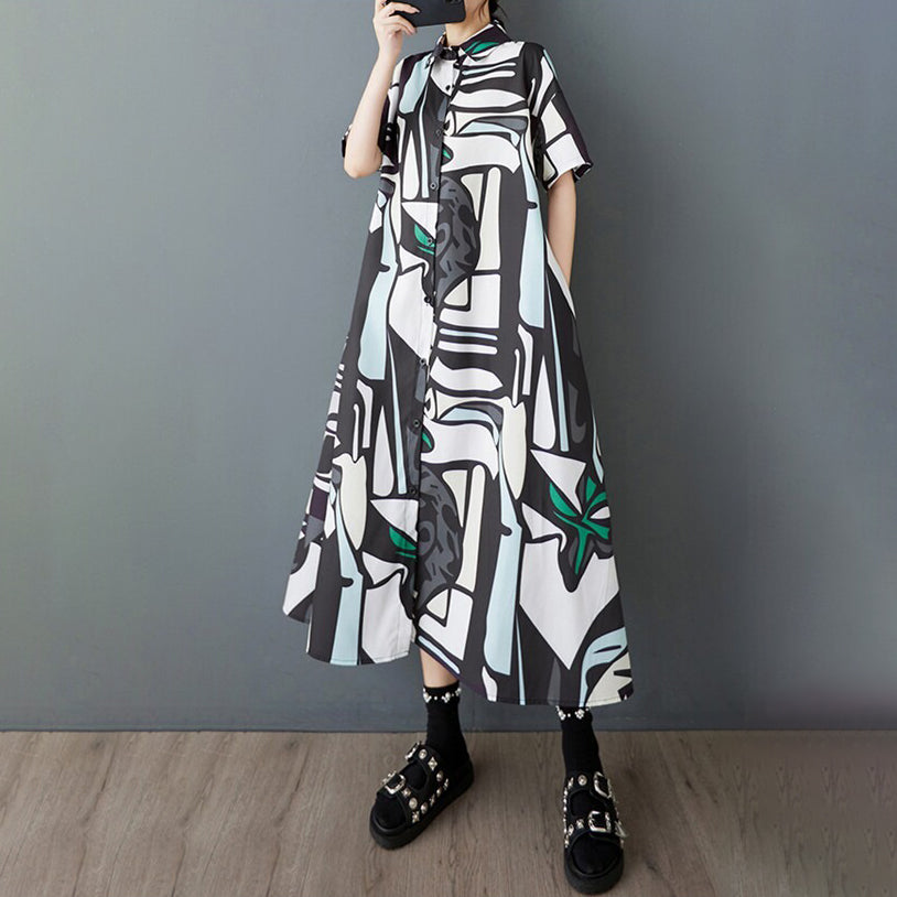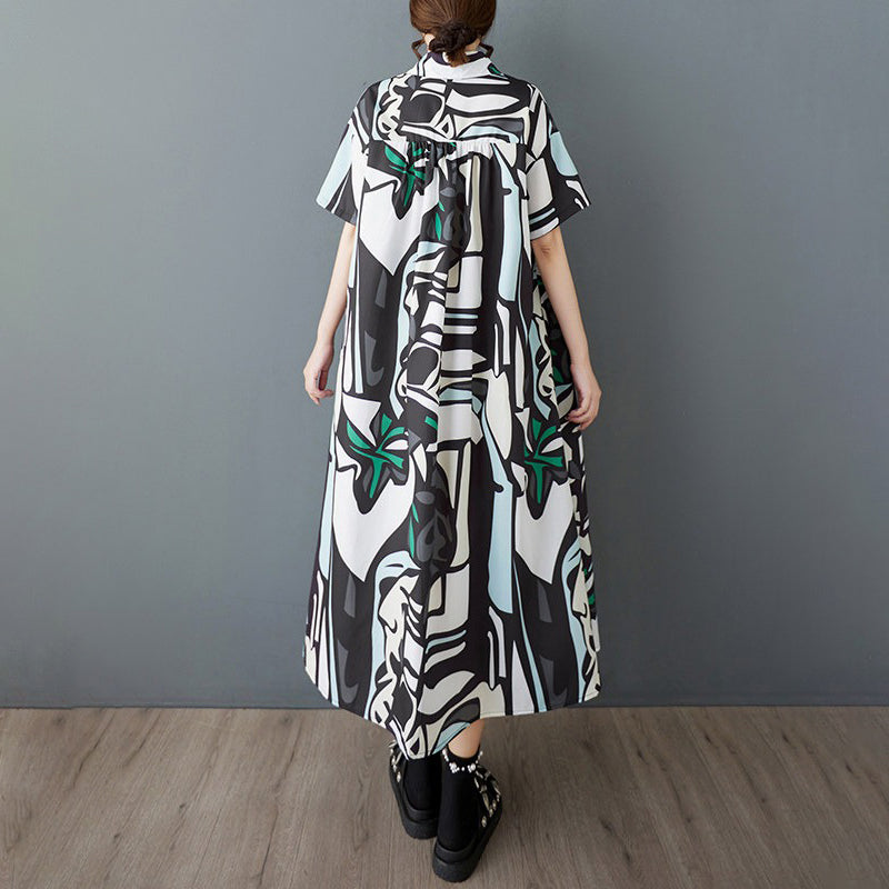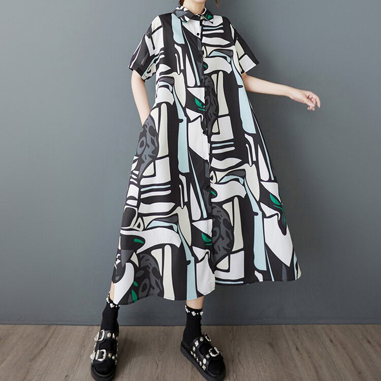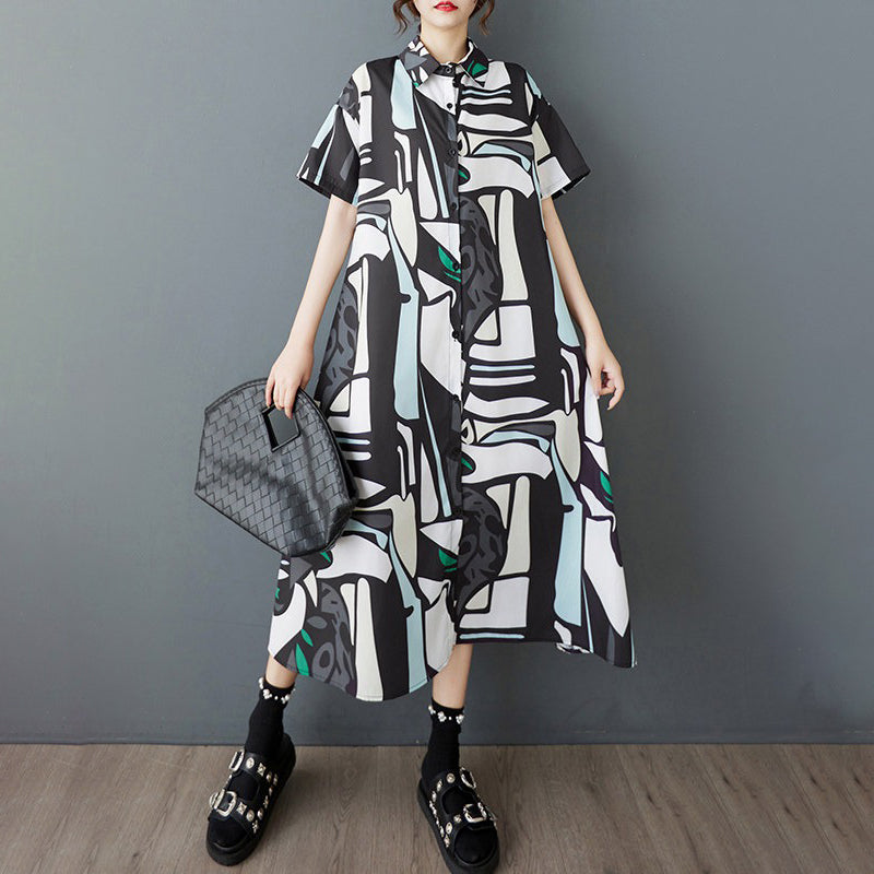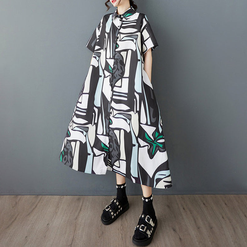 【ワンピース】韓国風 大きいサイズ レディース 夏新作 半袖 花柄 シャツワンピース ゆったりシルエット 着痩せ ミディ丈【SHシリーズ】