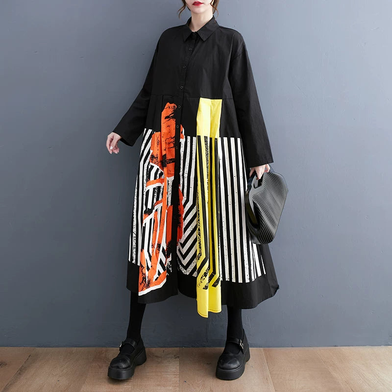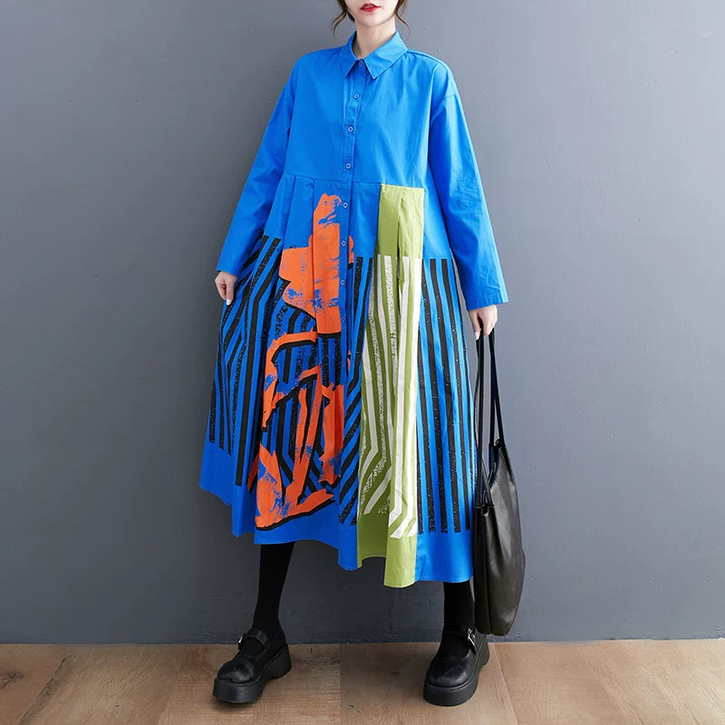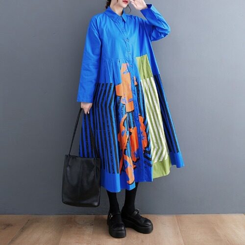 【ワンピース】大きいサイズ レディース 2026春夏新作 ゆったり 花柄切替 カジュアル長袖ワンピース 着痩せ 気質 上品 【SHシリーズ】