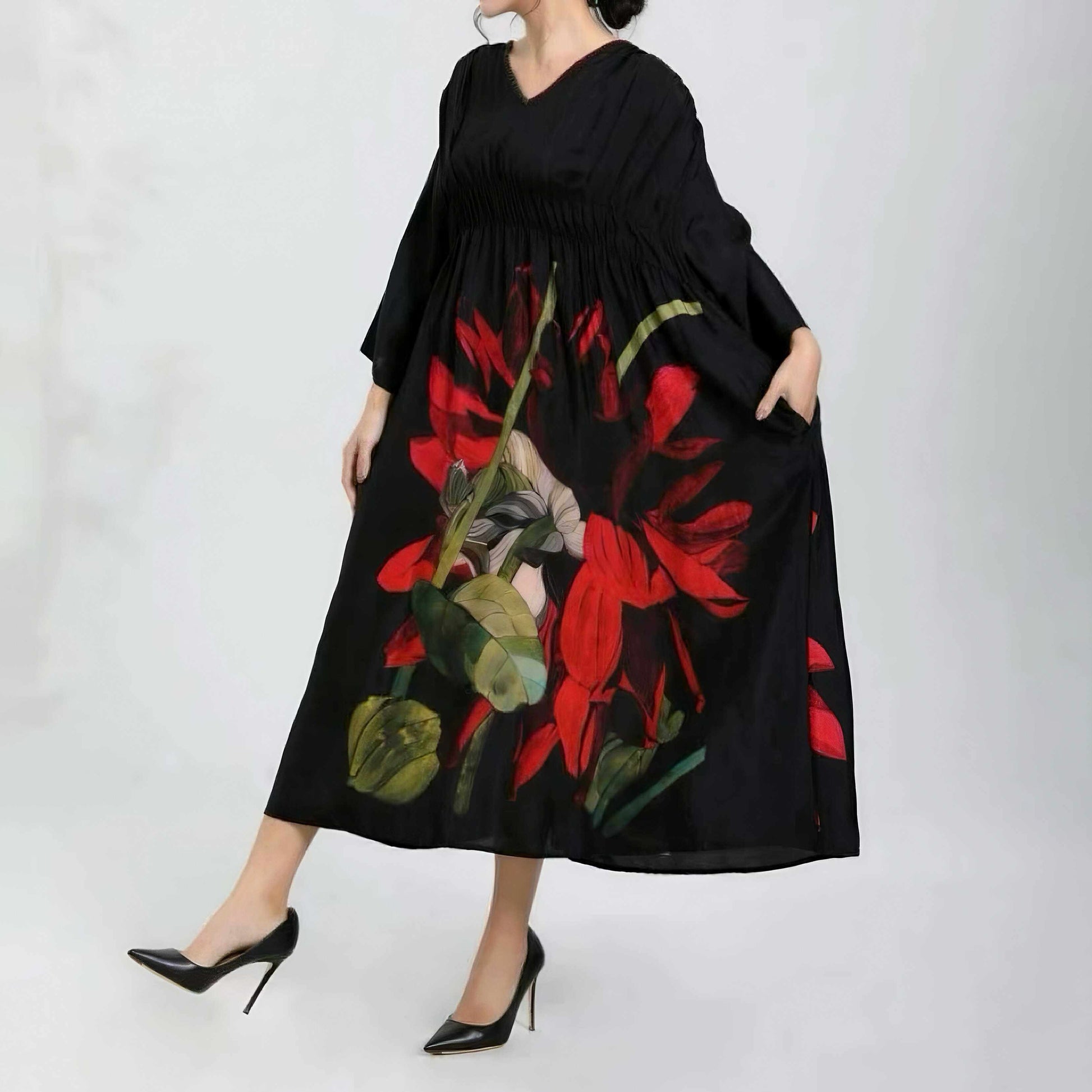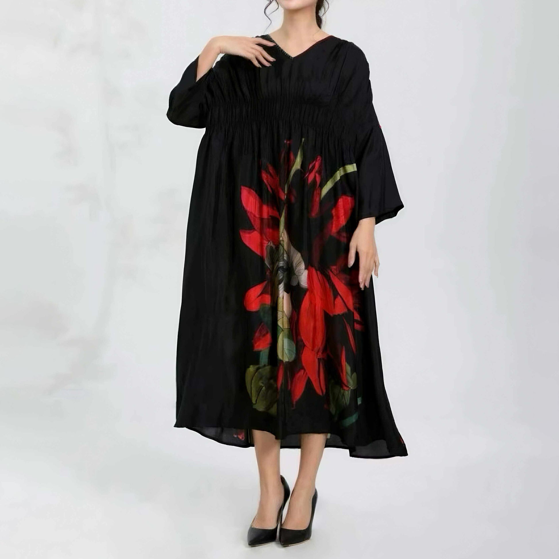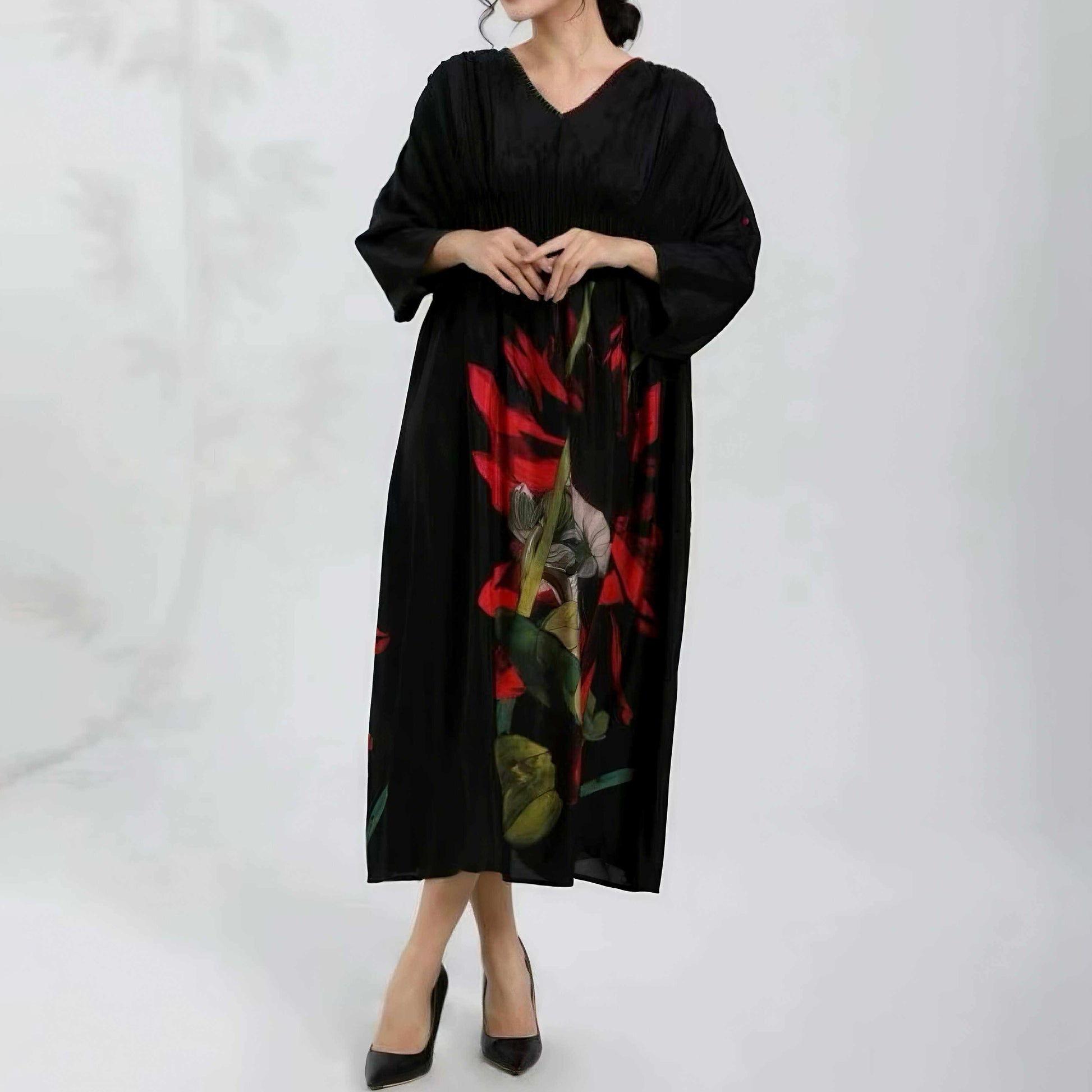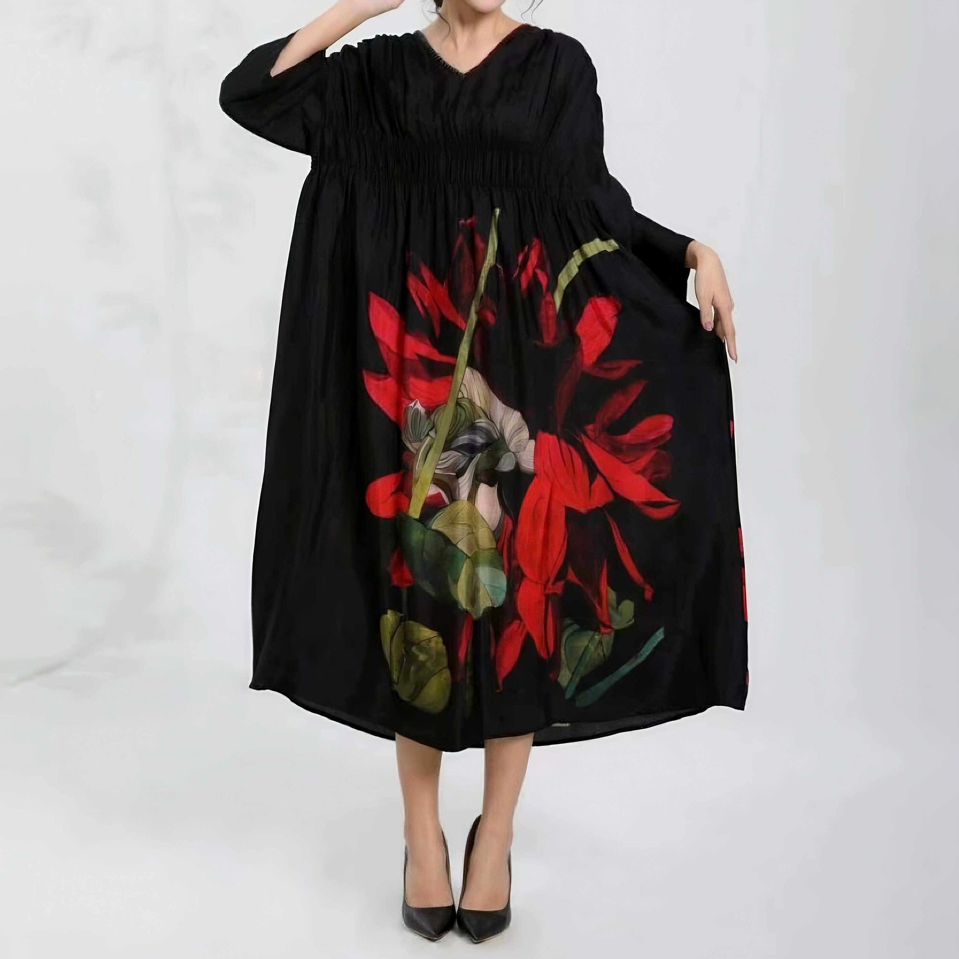 【ワンピース】新作 ファッション 気質 大きいサイズ レディース ゆったりシルエット 着痩せ 長袖ワンピース 【SHシリーズ】