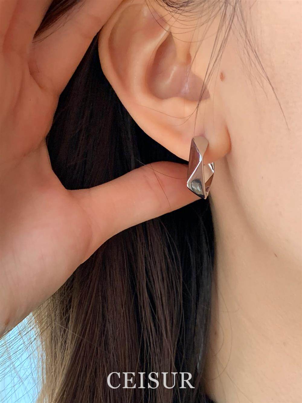 【グッズ】シンプルクール幾何学スクエアイヤーカフ 気品溢れる高級感 ファッション性抜群 レトロピアス